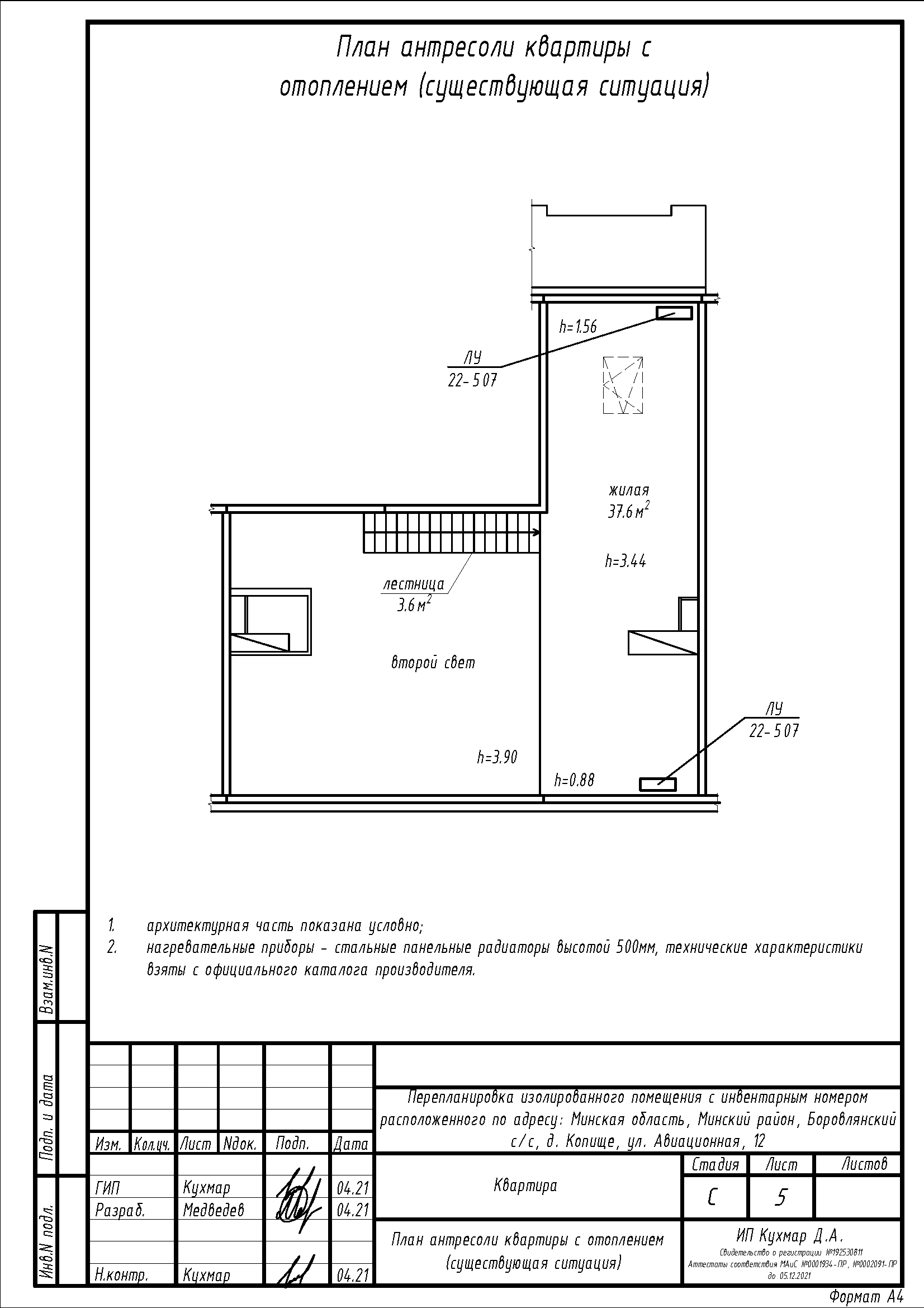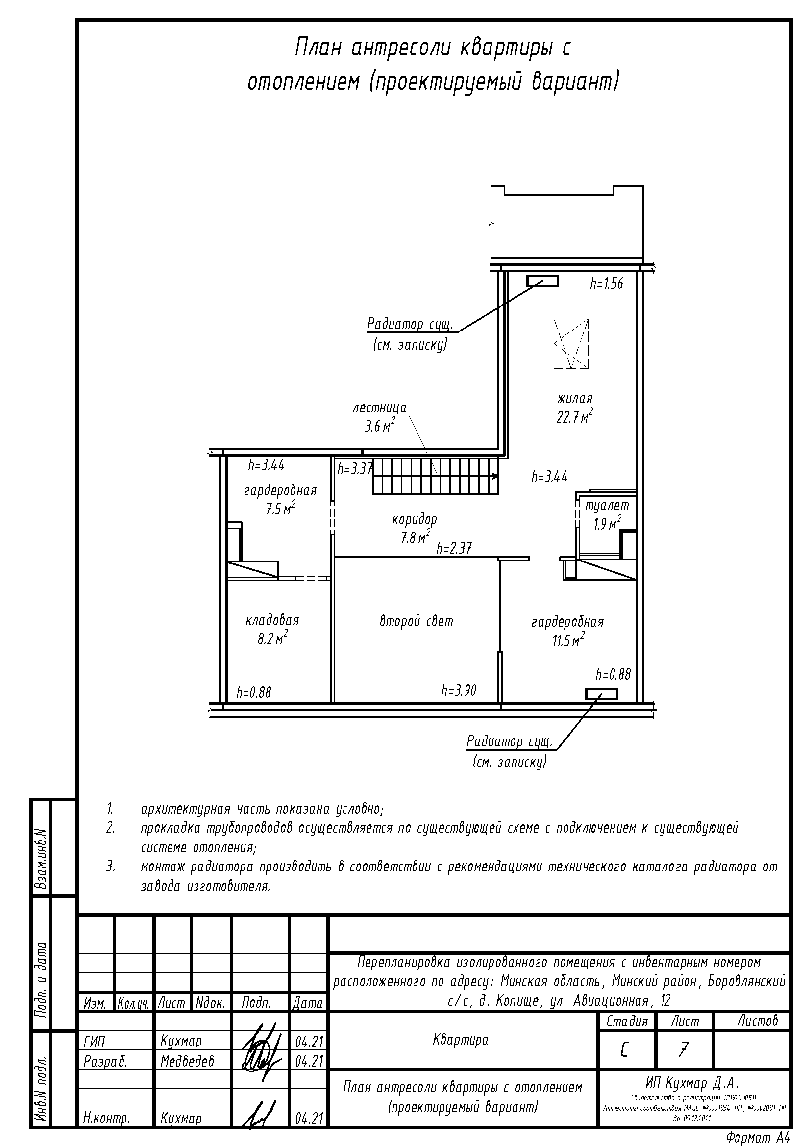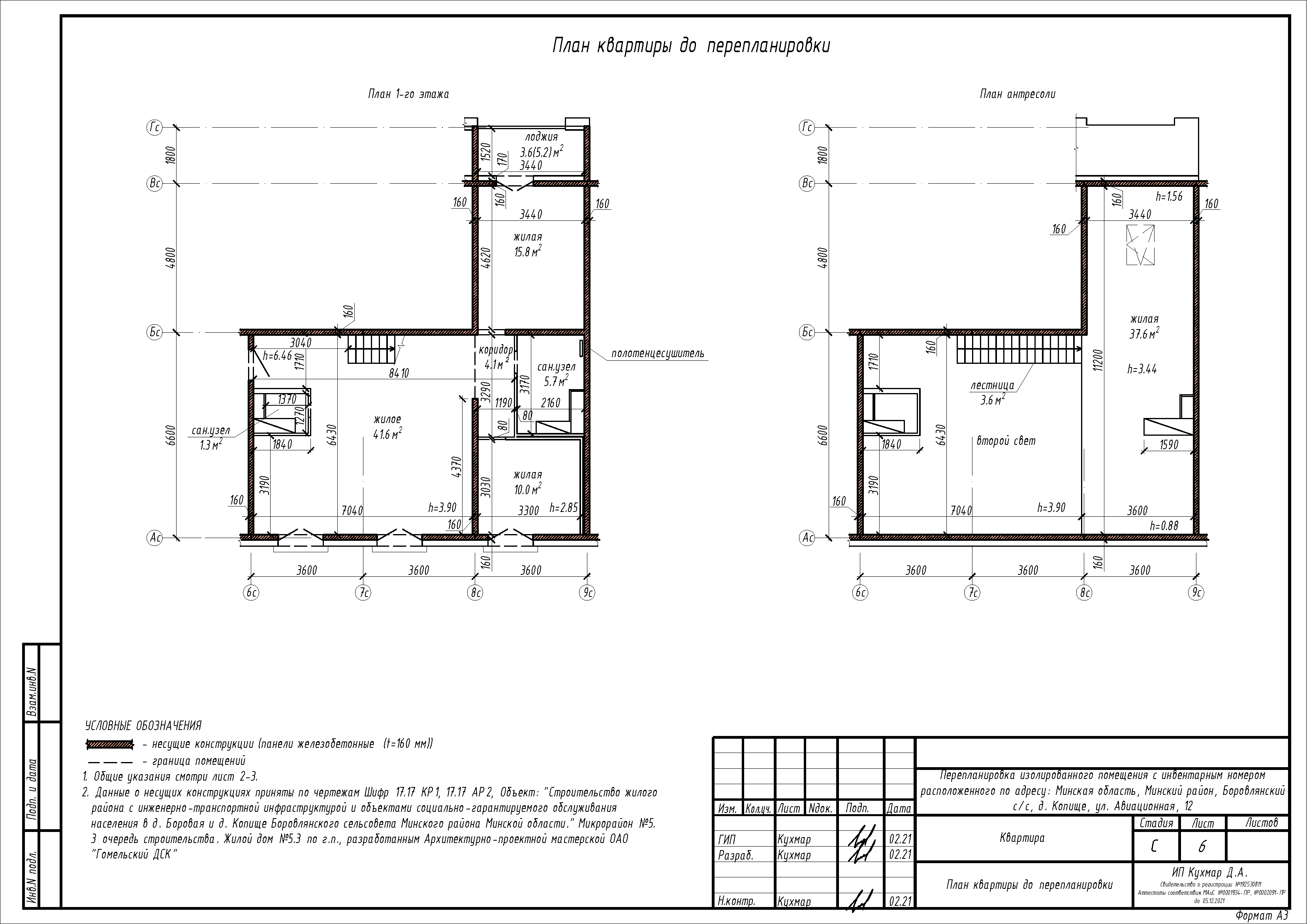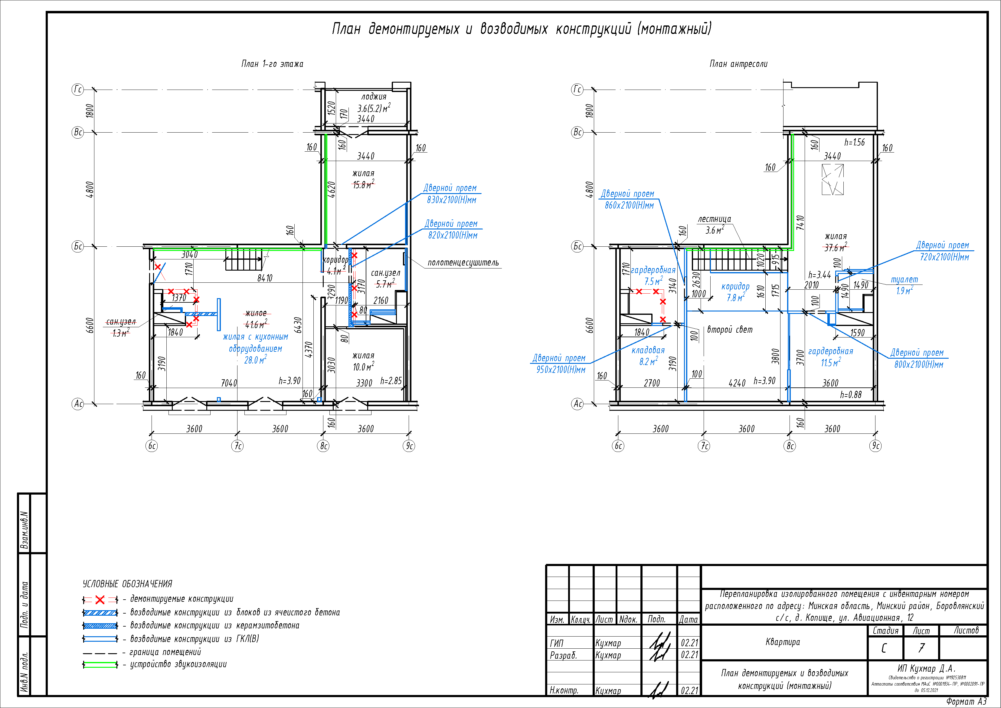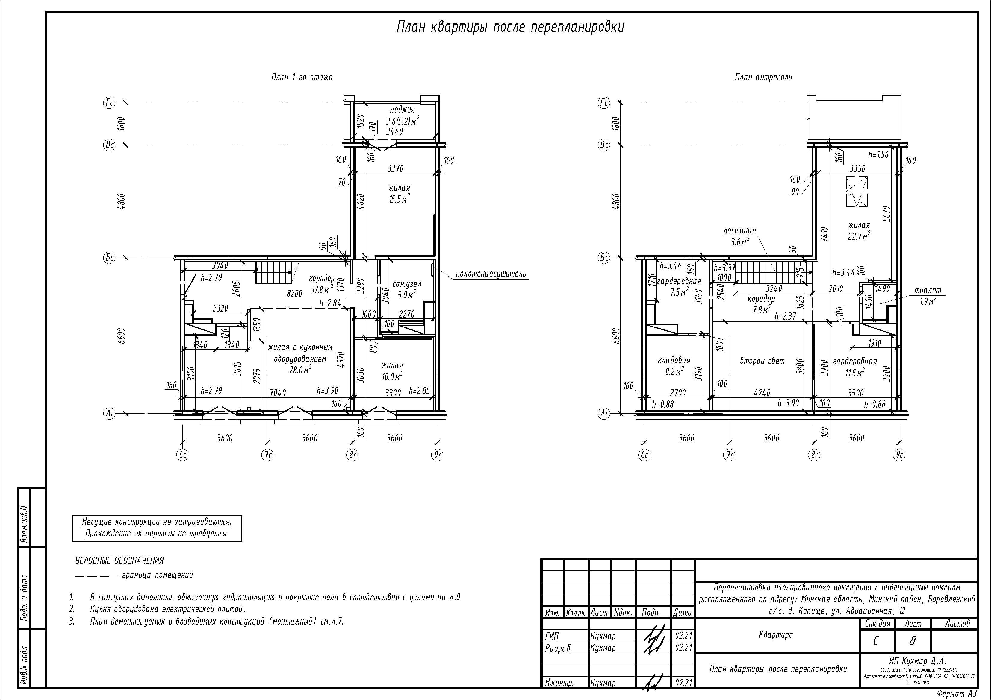 Перепланировка квартиры (антресоль) по ул. Авиационная, 12 в ЖК «Новая Боровая»