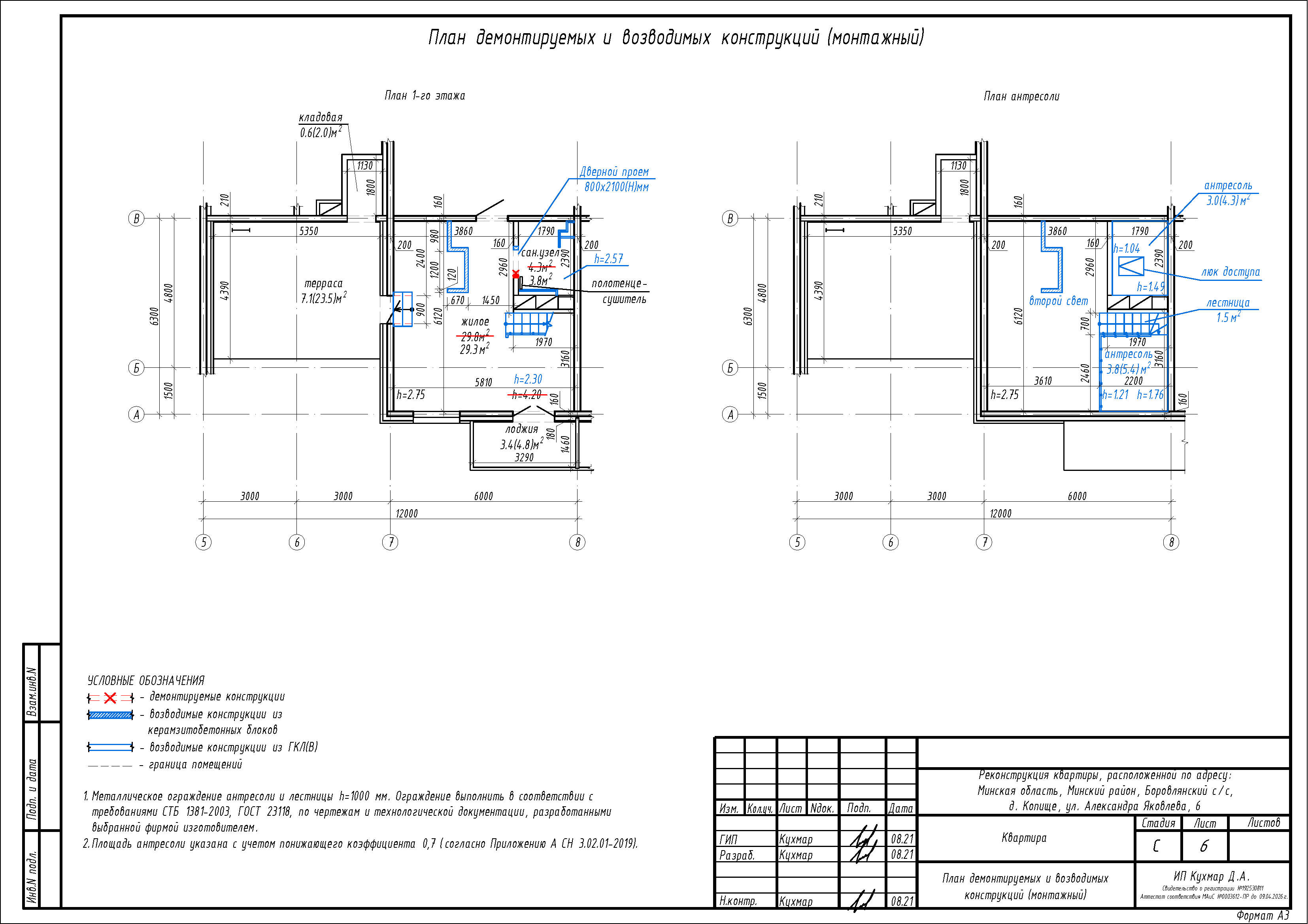 Перепланировка квартиры (антресоль) по ул. Яковлева, 6 в ЖК «Новая Боровая»