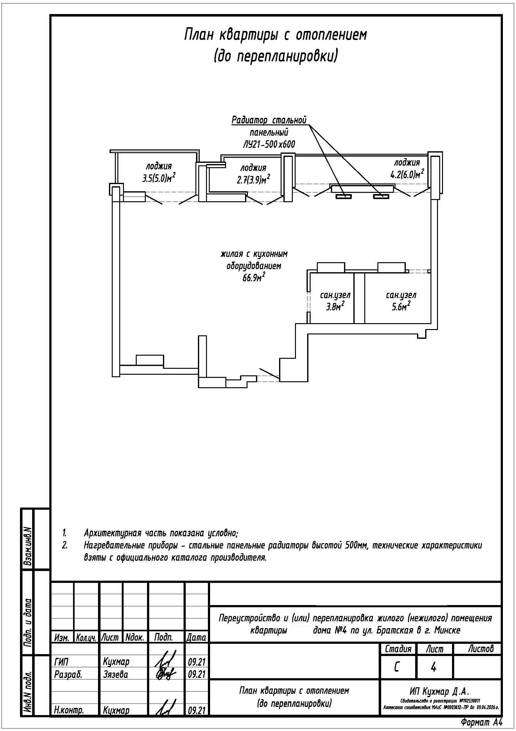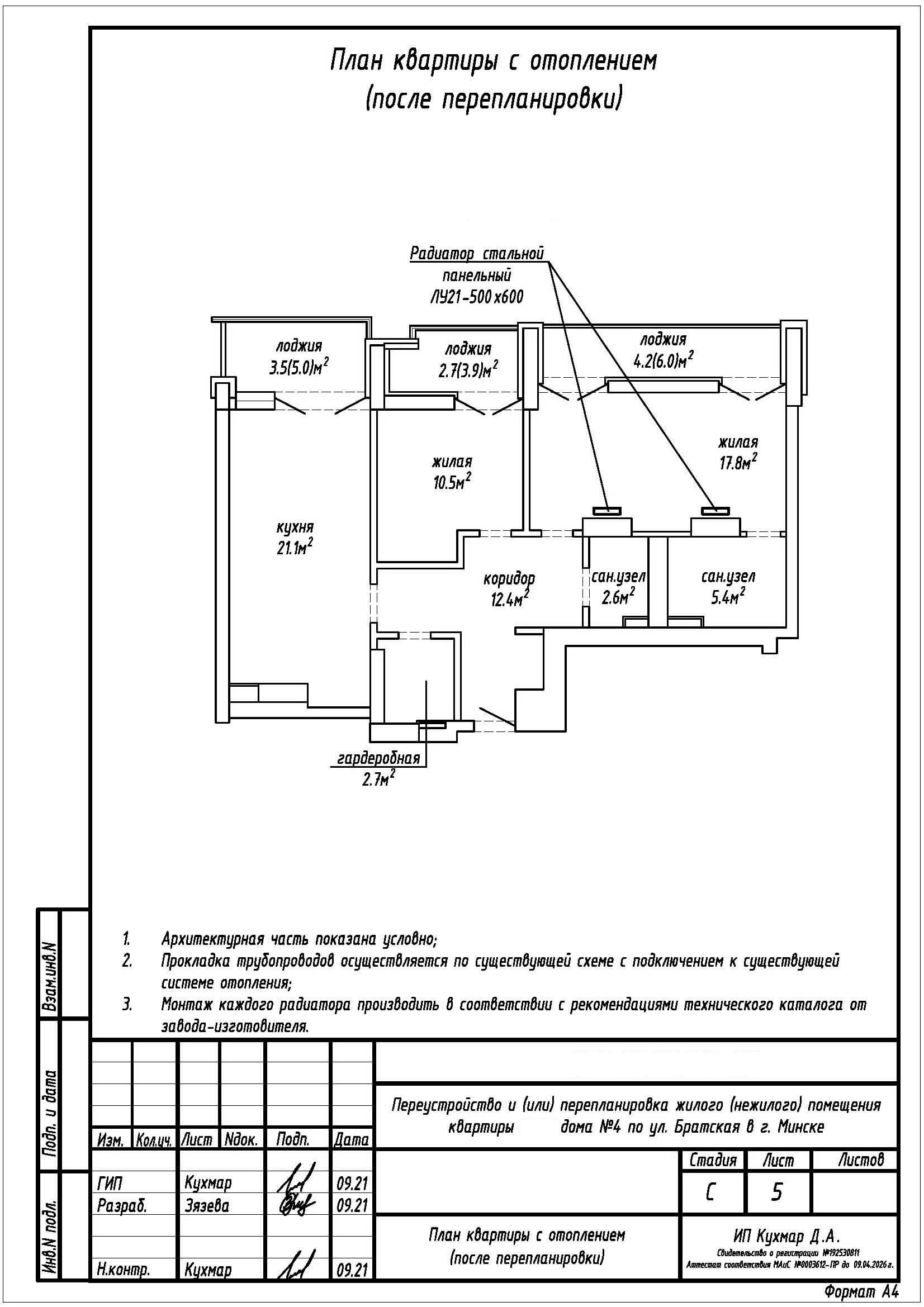 Перепланировка квартиры по ул. Братская, 4 в ЖК «Минск Мир»