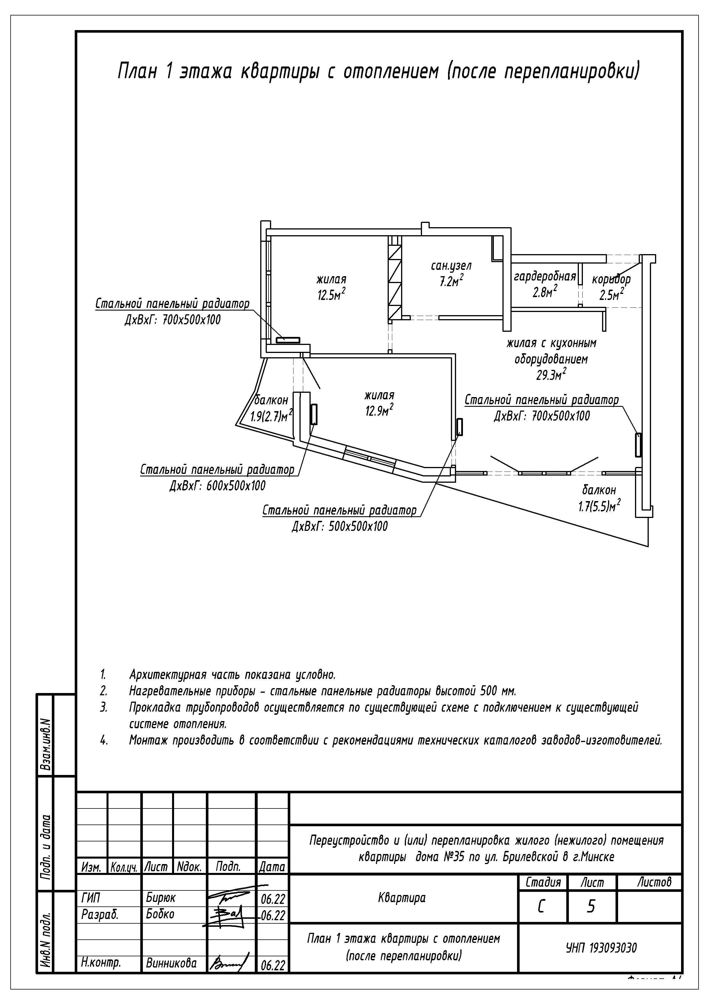 Перепланировка квартиры по ул. Брилевская, 35 в ЖК «Минск Мир»