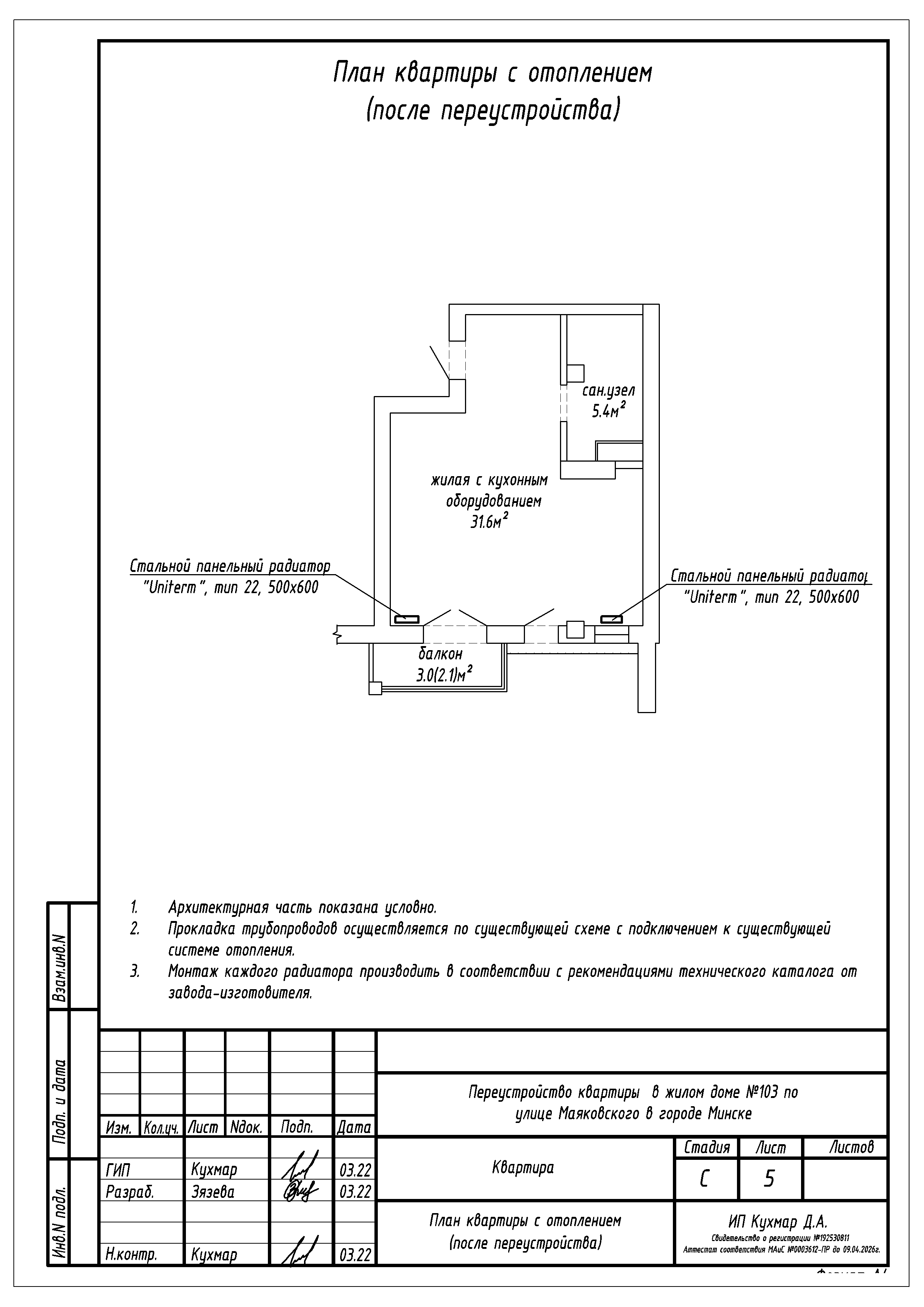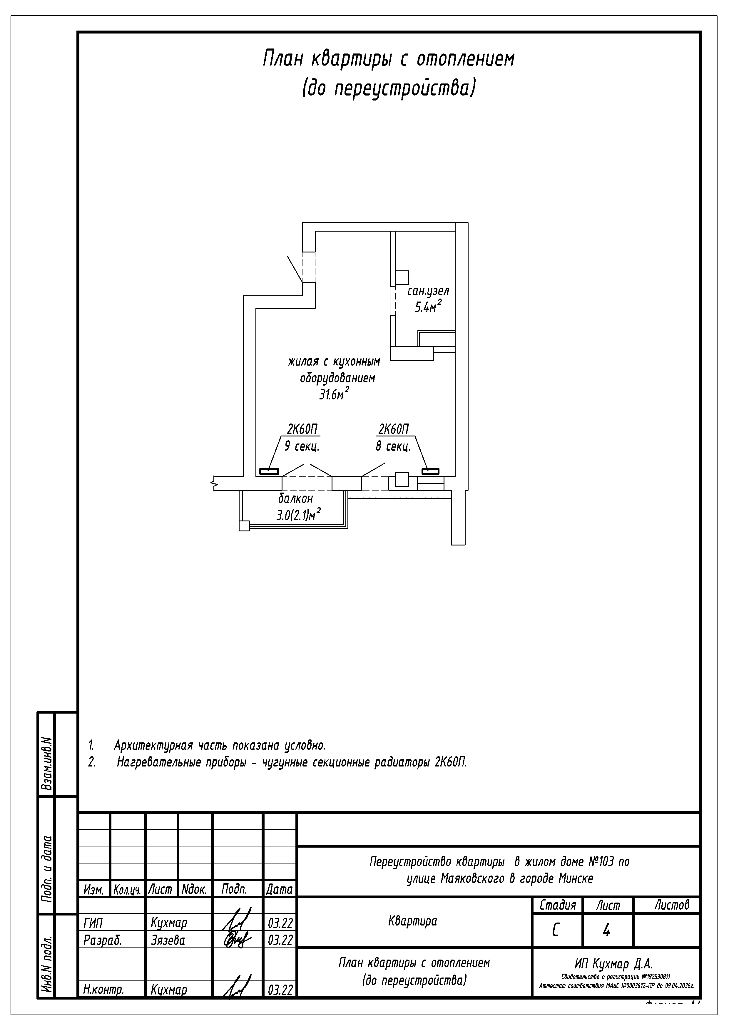 Перепланировка квартиры по ул. Маяковского, 103 в г. Минске