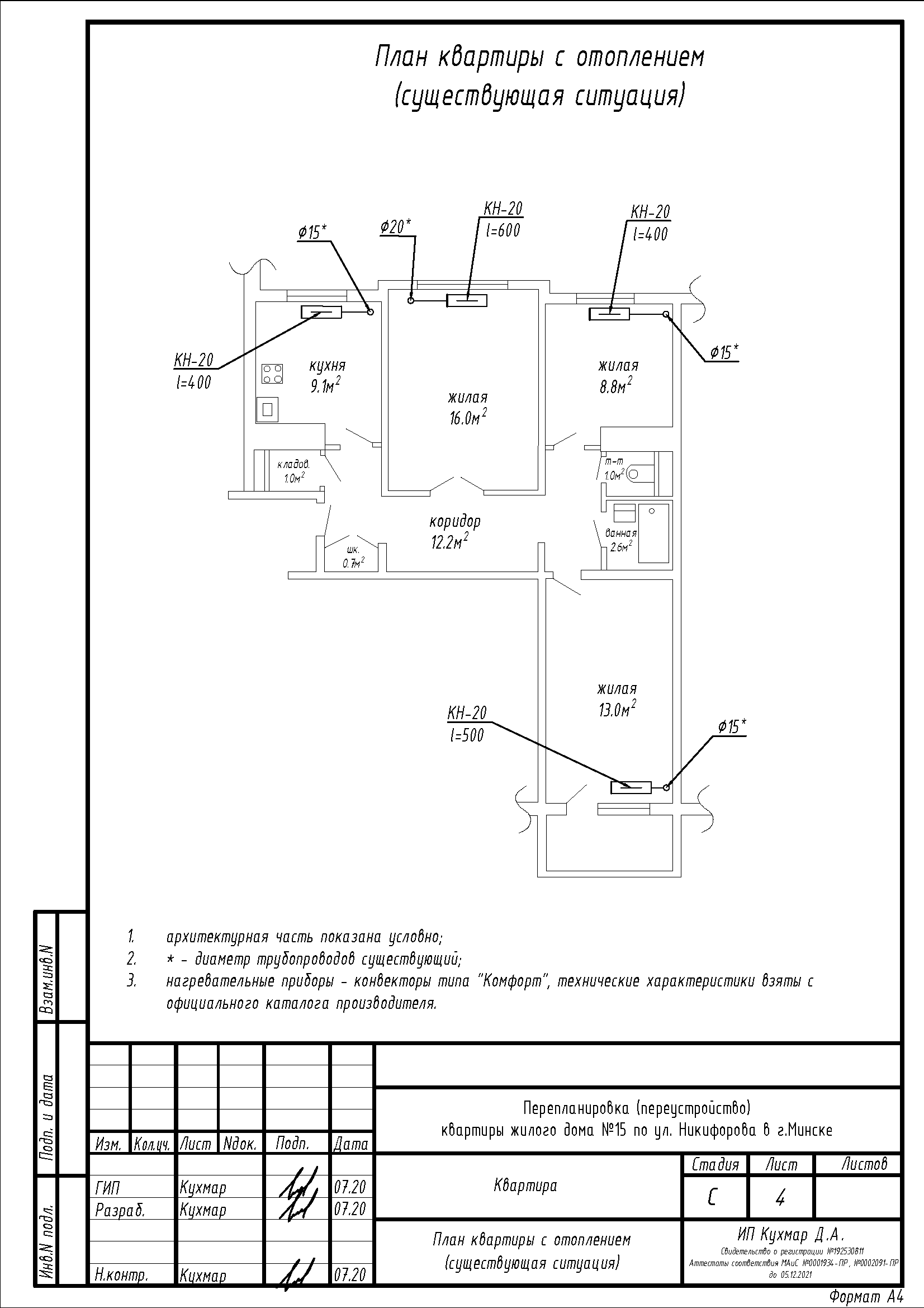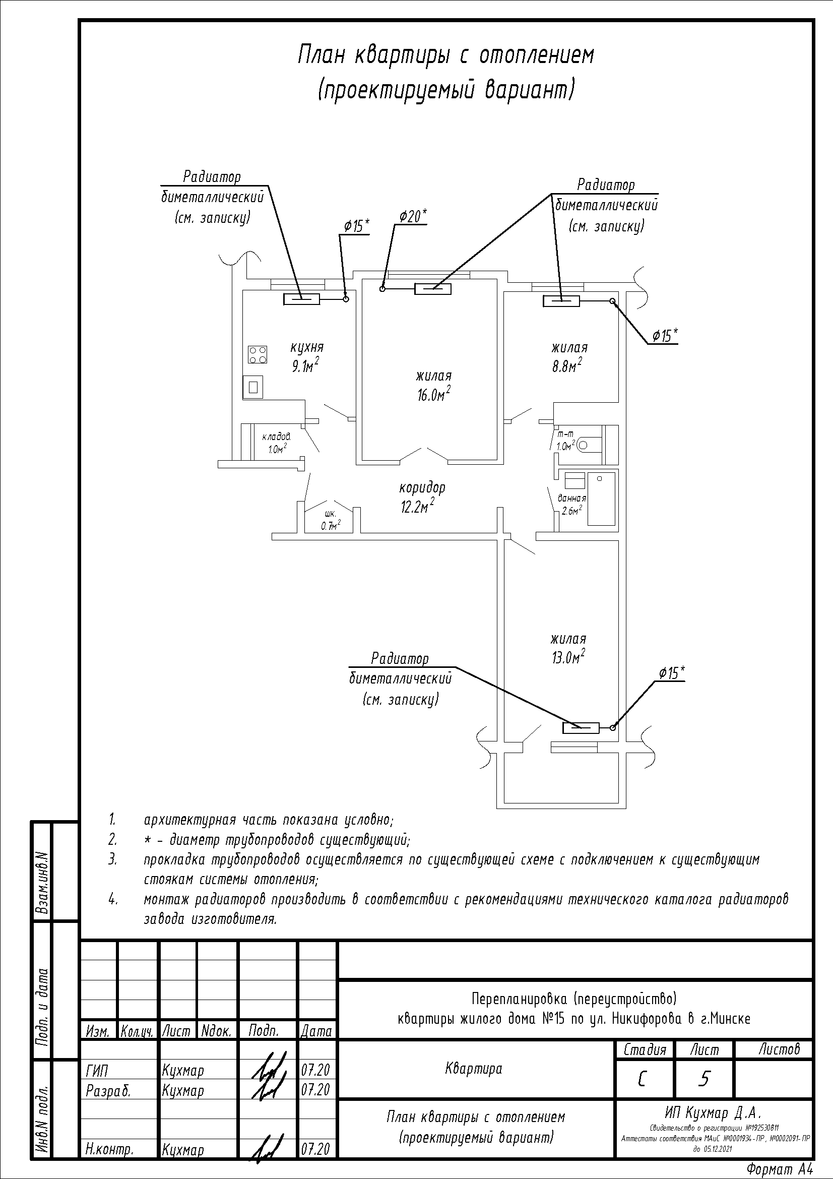 Перепланировка квартиры по ул. Никифорова, 15 в г.Минске