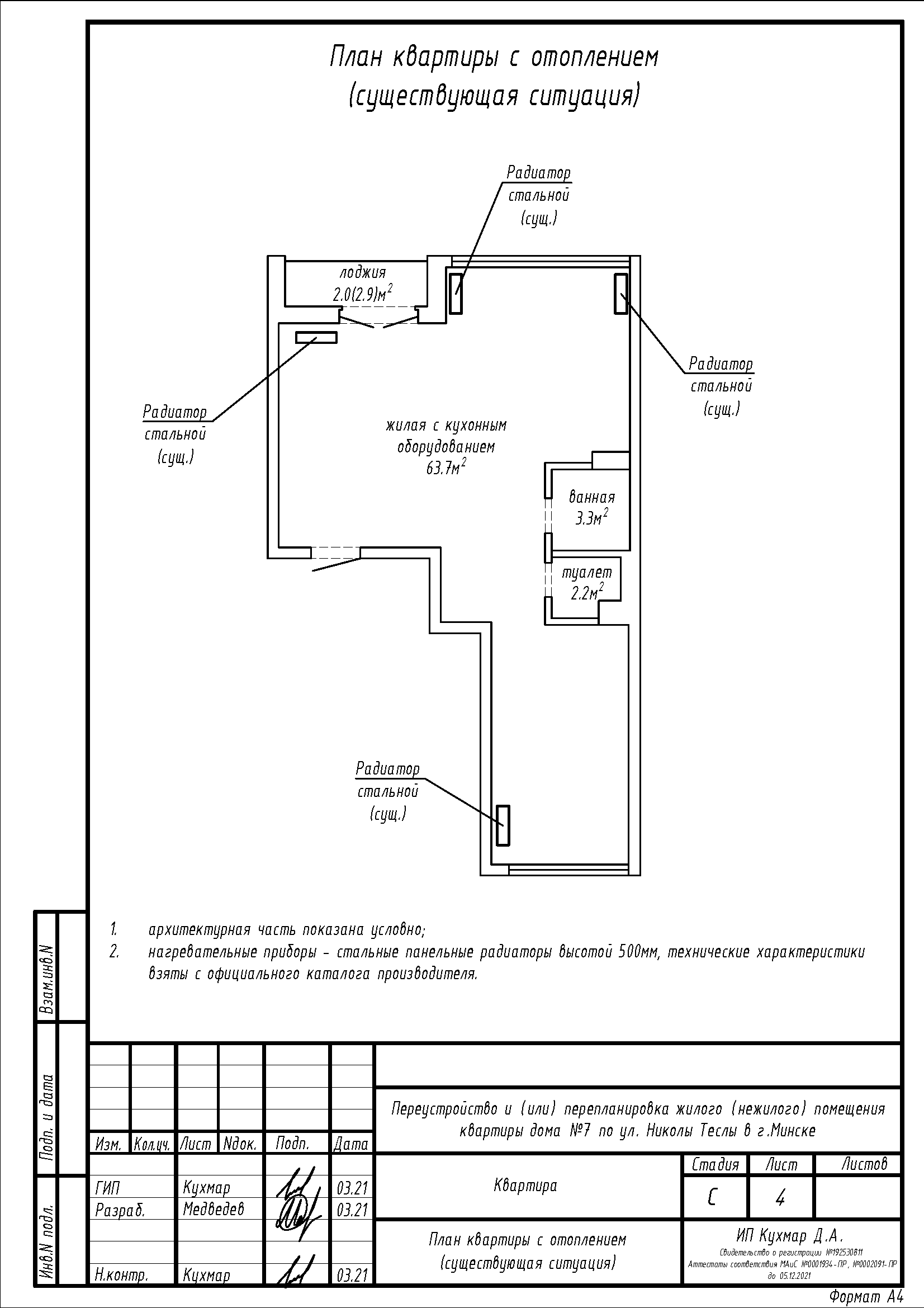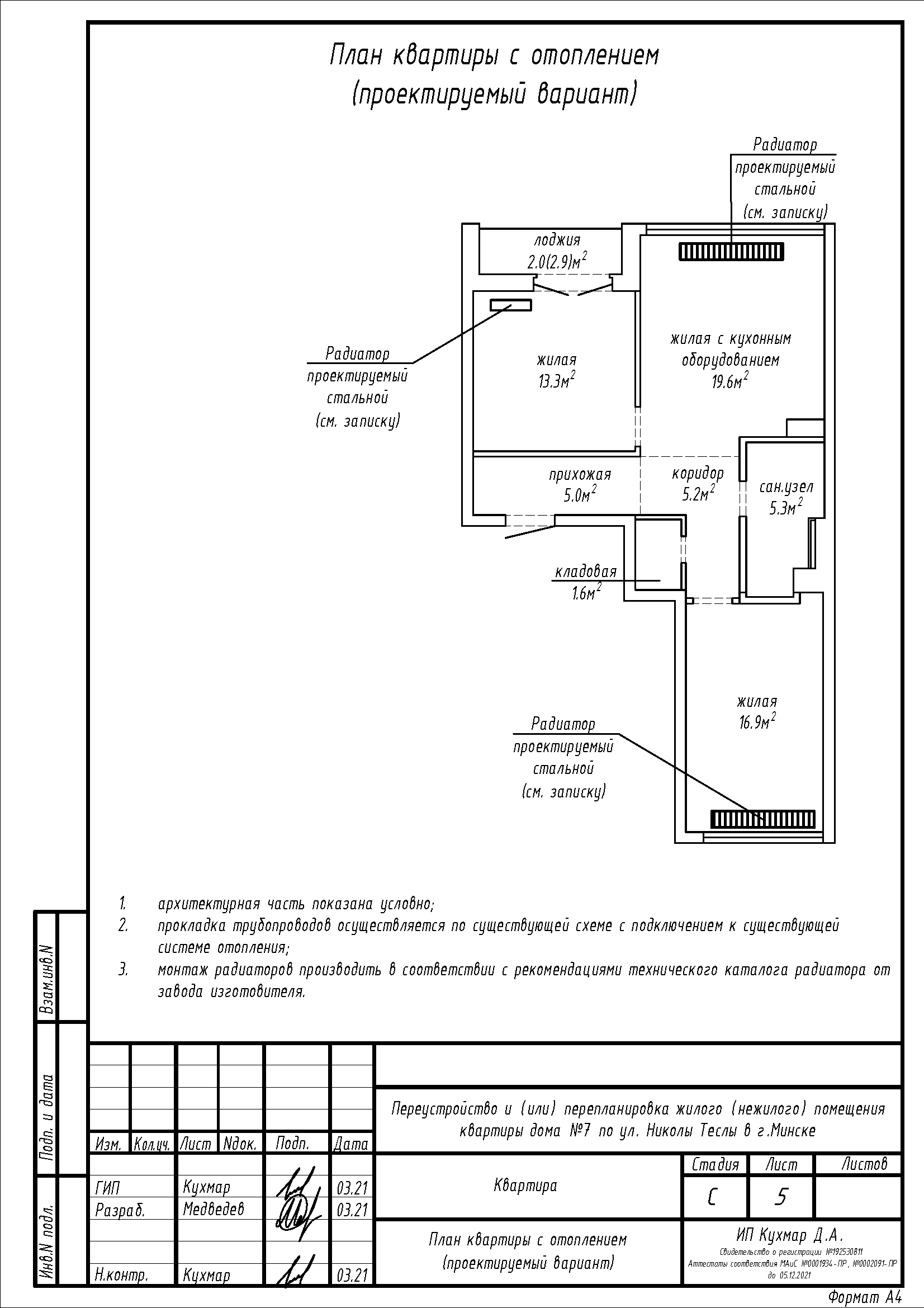 Пожелания заказчика:- Перенос и замена отопительных приборов.