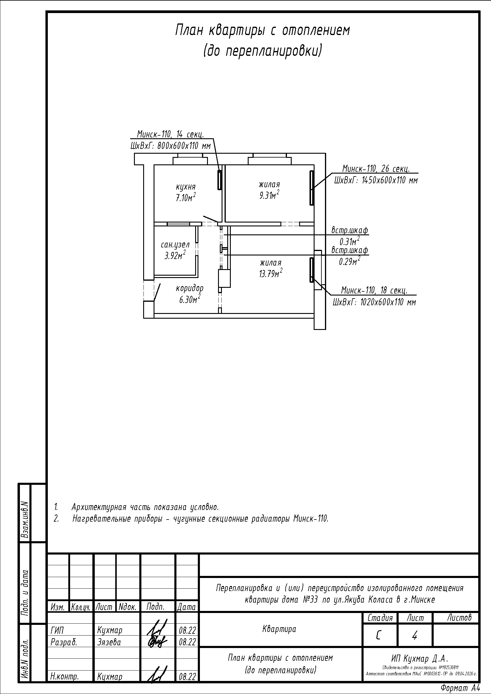 Перепланировка квартиры по ул. Якуба Коласа, 33 в г. Минске