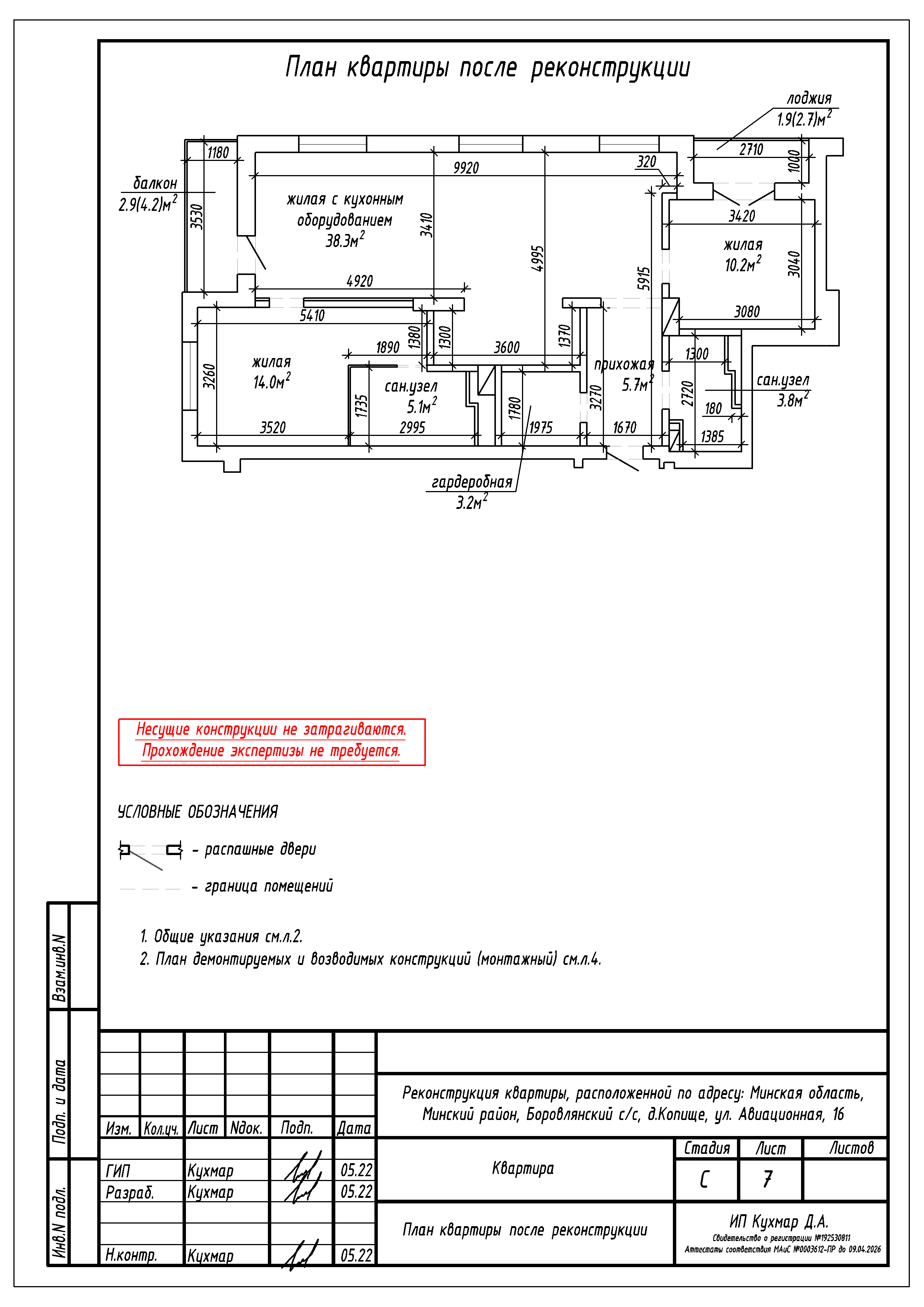 - Демонтаж перегородок между жилыми, в том числе перегородок с дверными проёмами с целью устройства жилой с кухонным оборудованием;