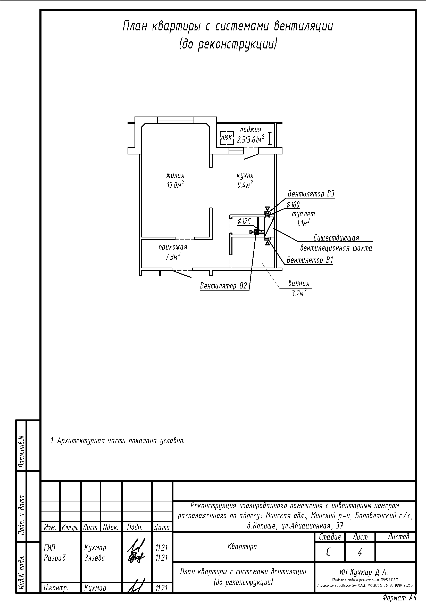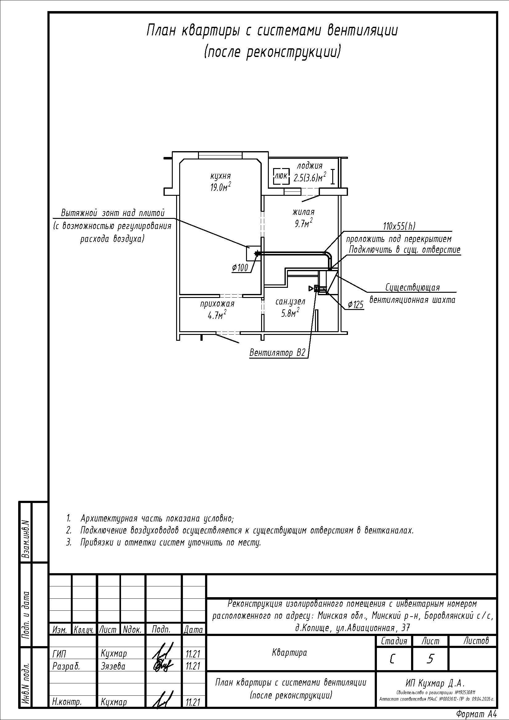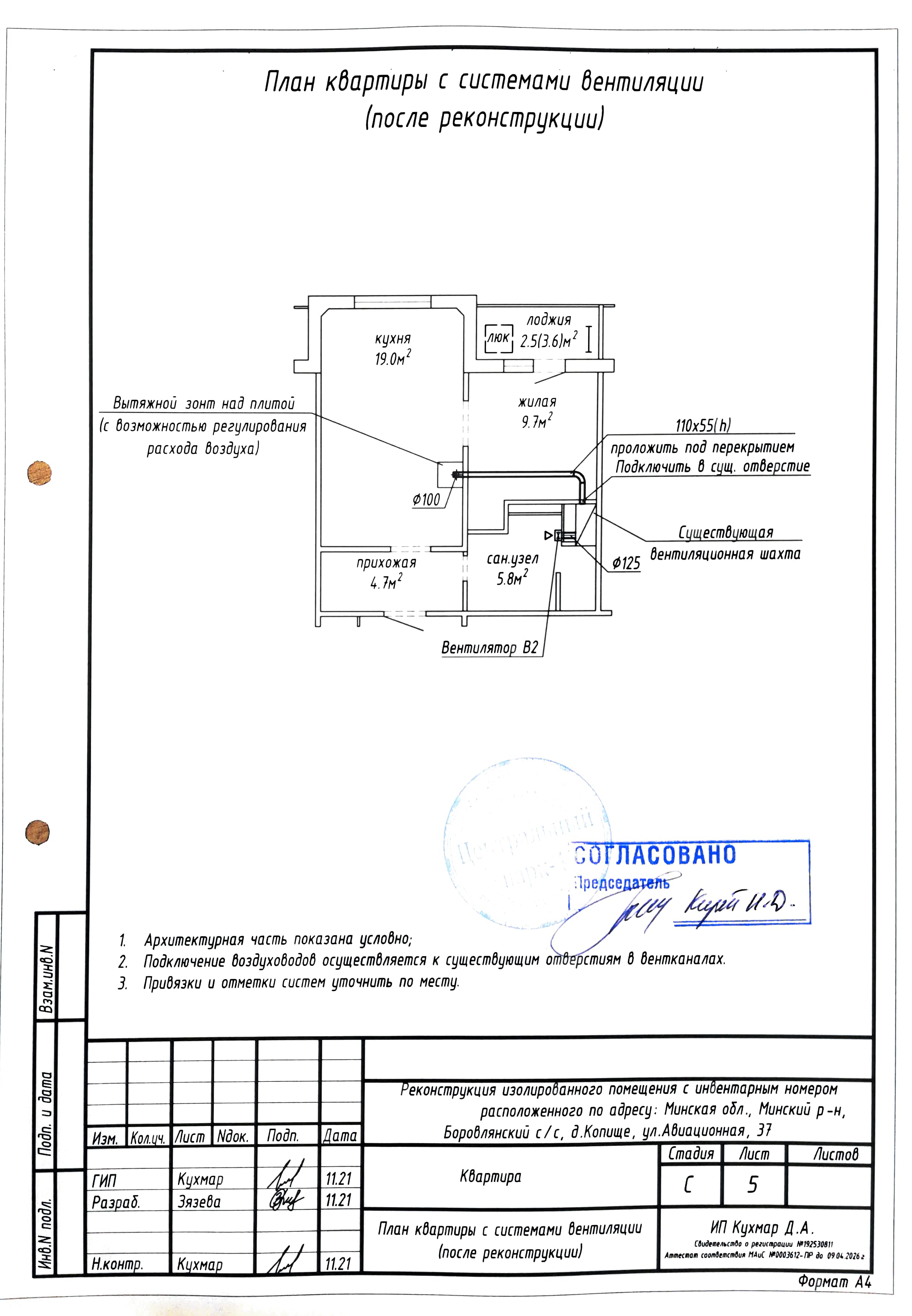 - Изменение трассы систем вентиляции в связи с изменением назначения помещений.