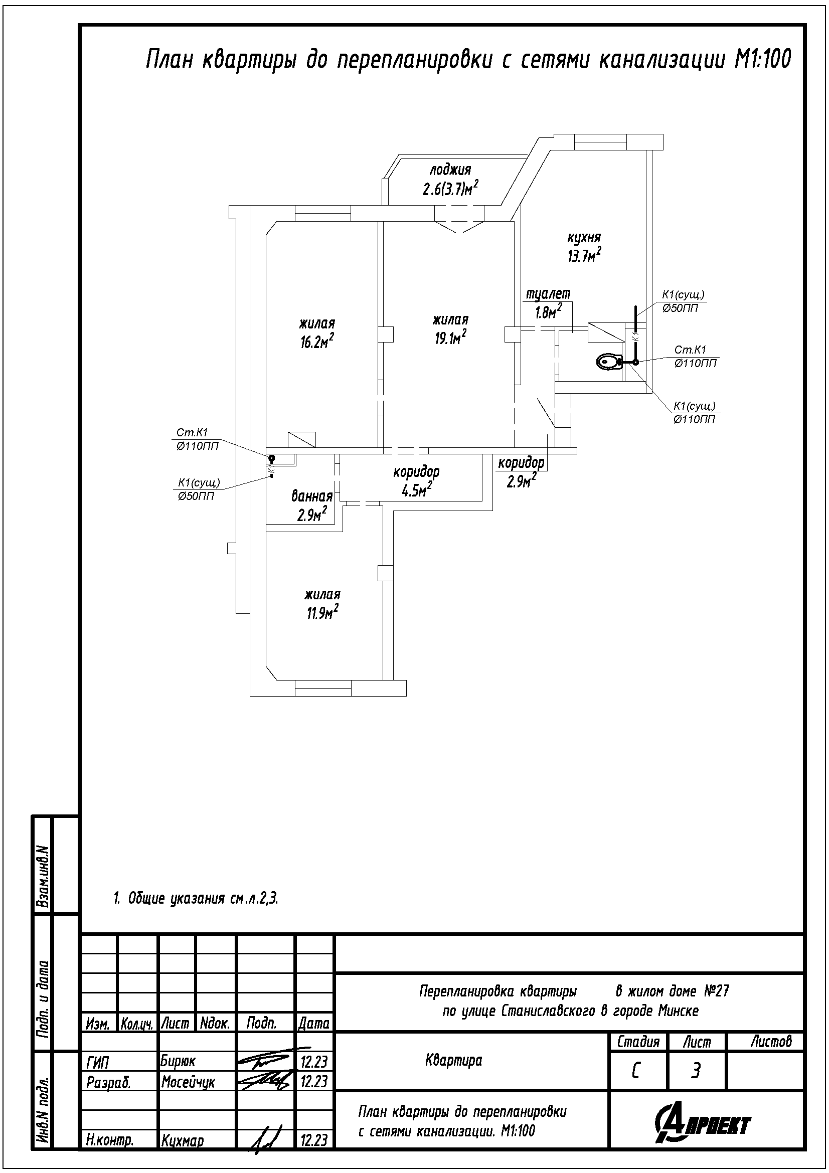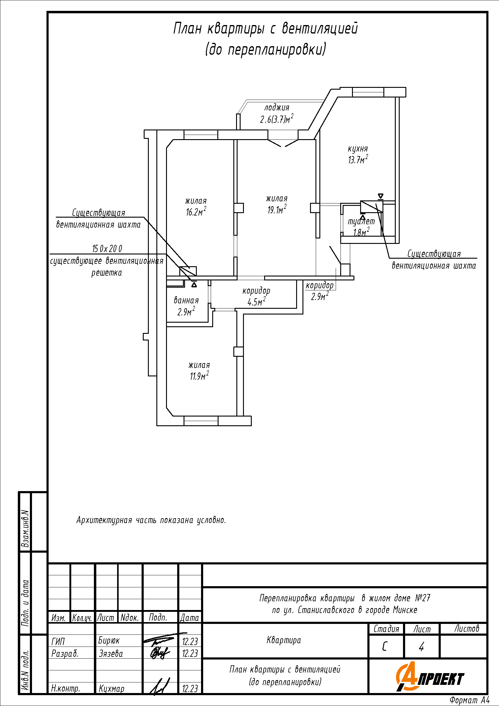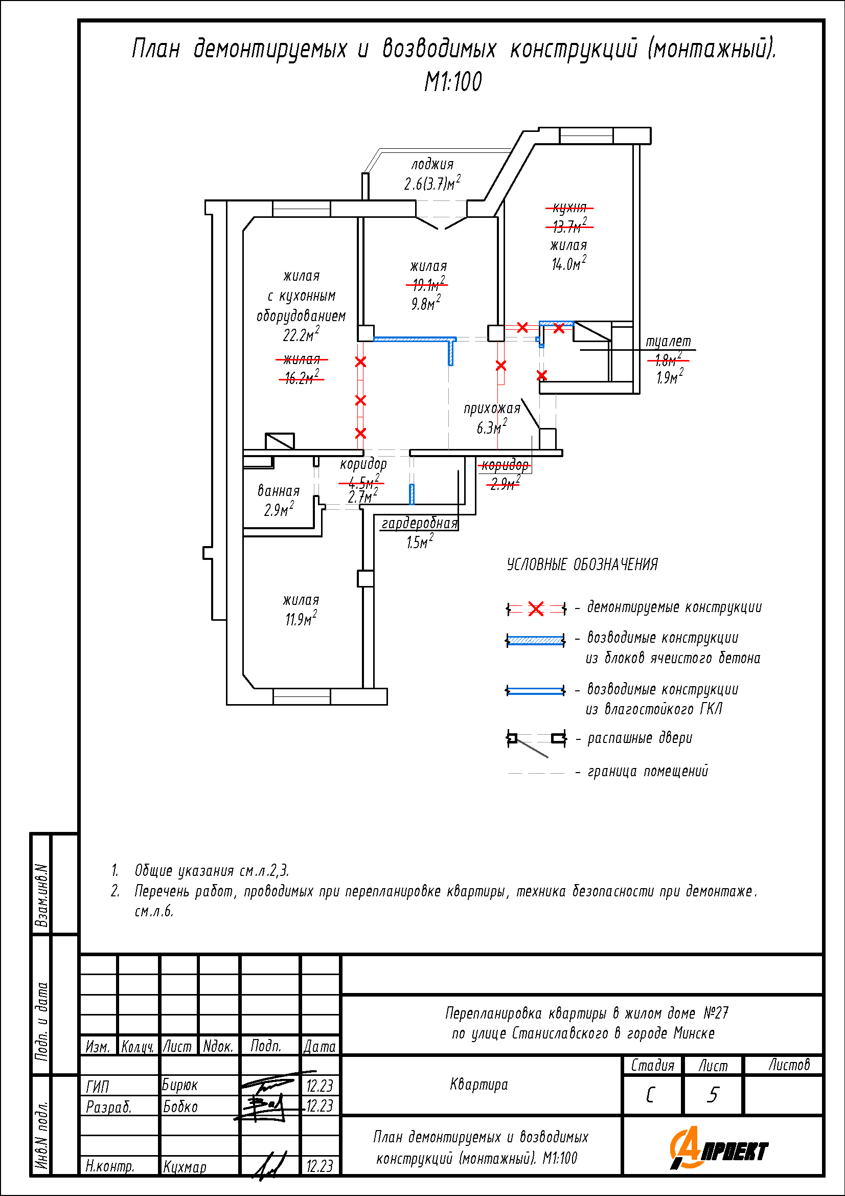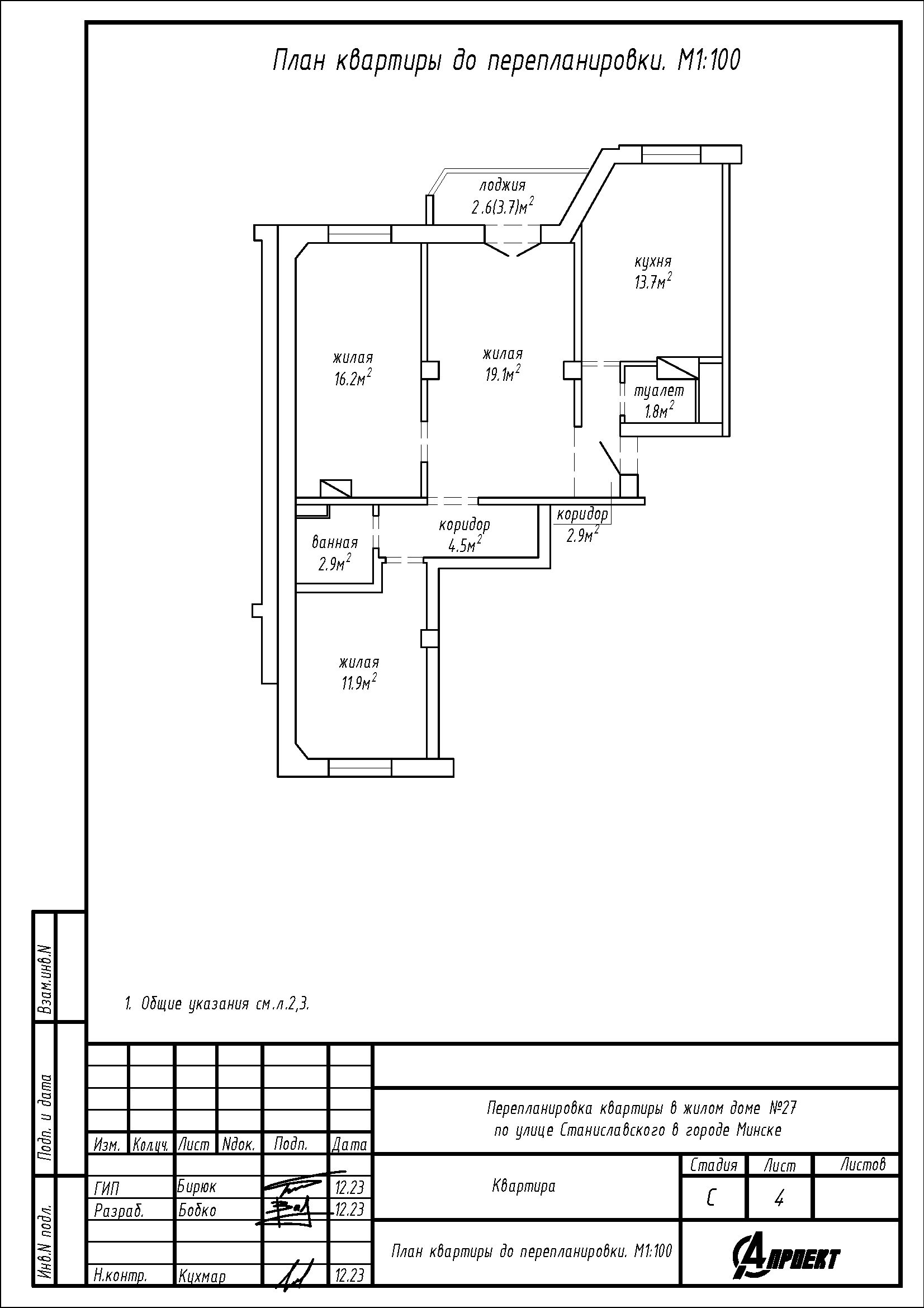 Перепланировка квартиры по ул. Станиславского, 27 в ЖК «Антоновский квартал» в г. Минске