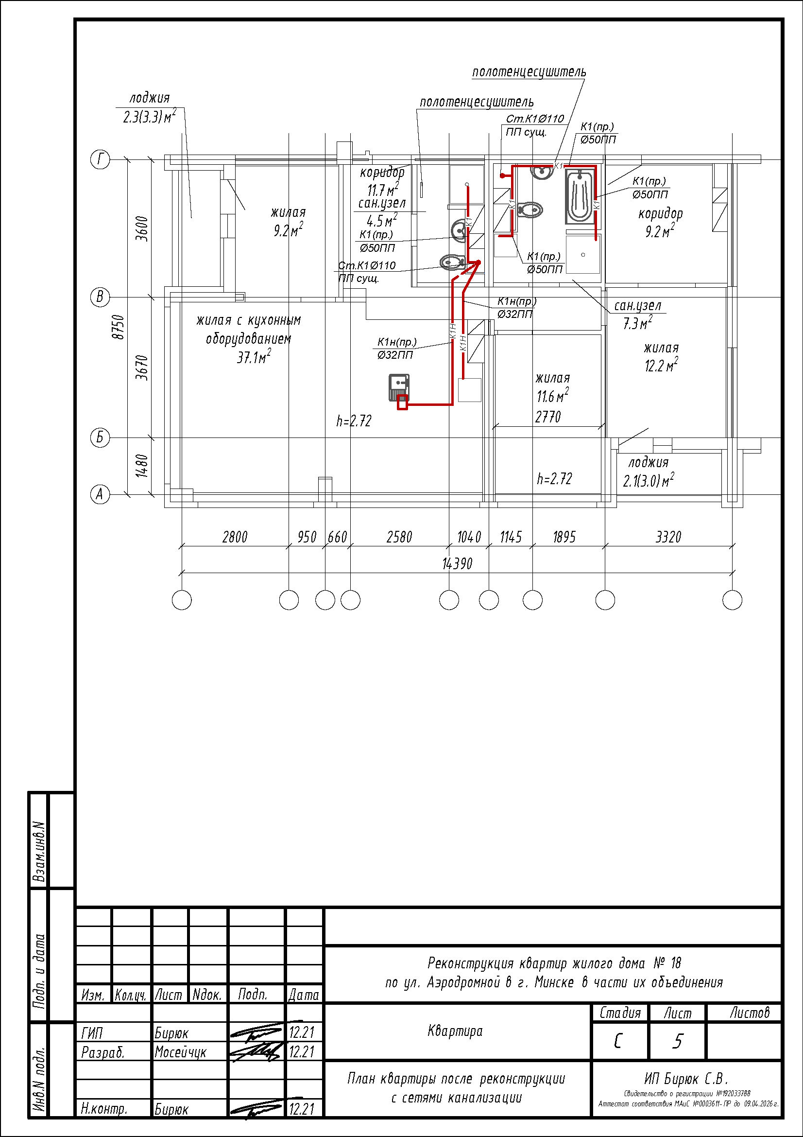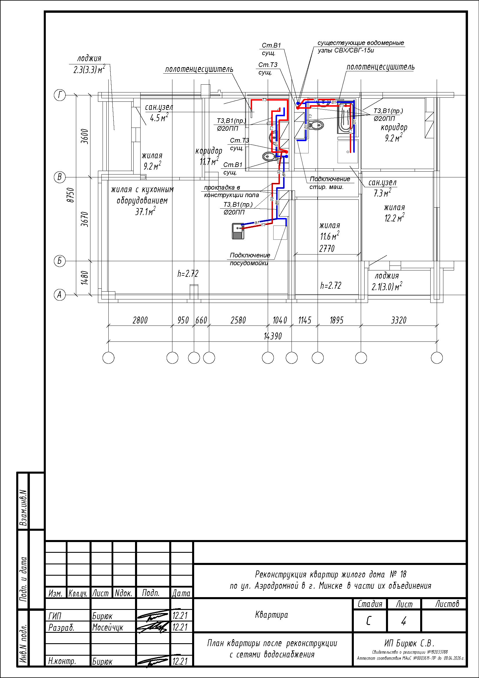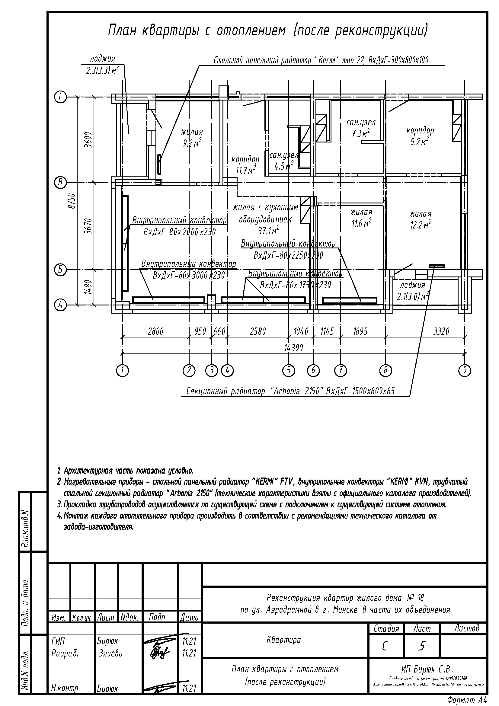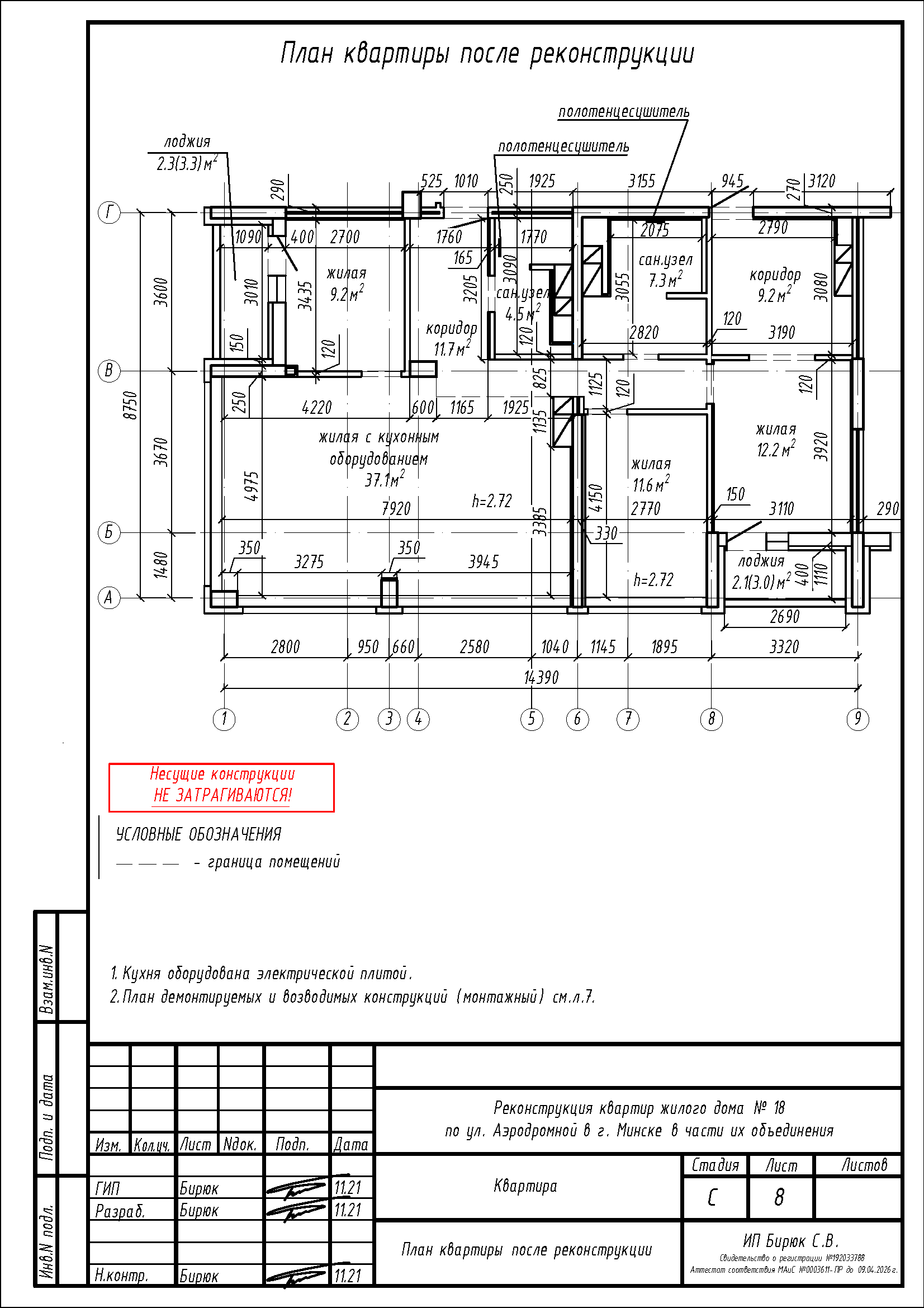 Реконструкция (объединение) квартир по Аэродромной, 18 в ЖК «Минск Мир»