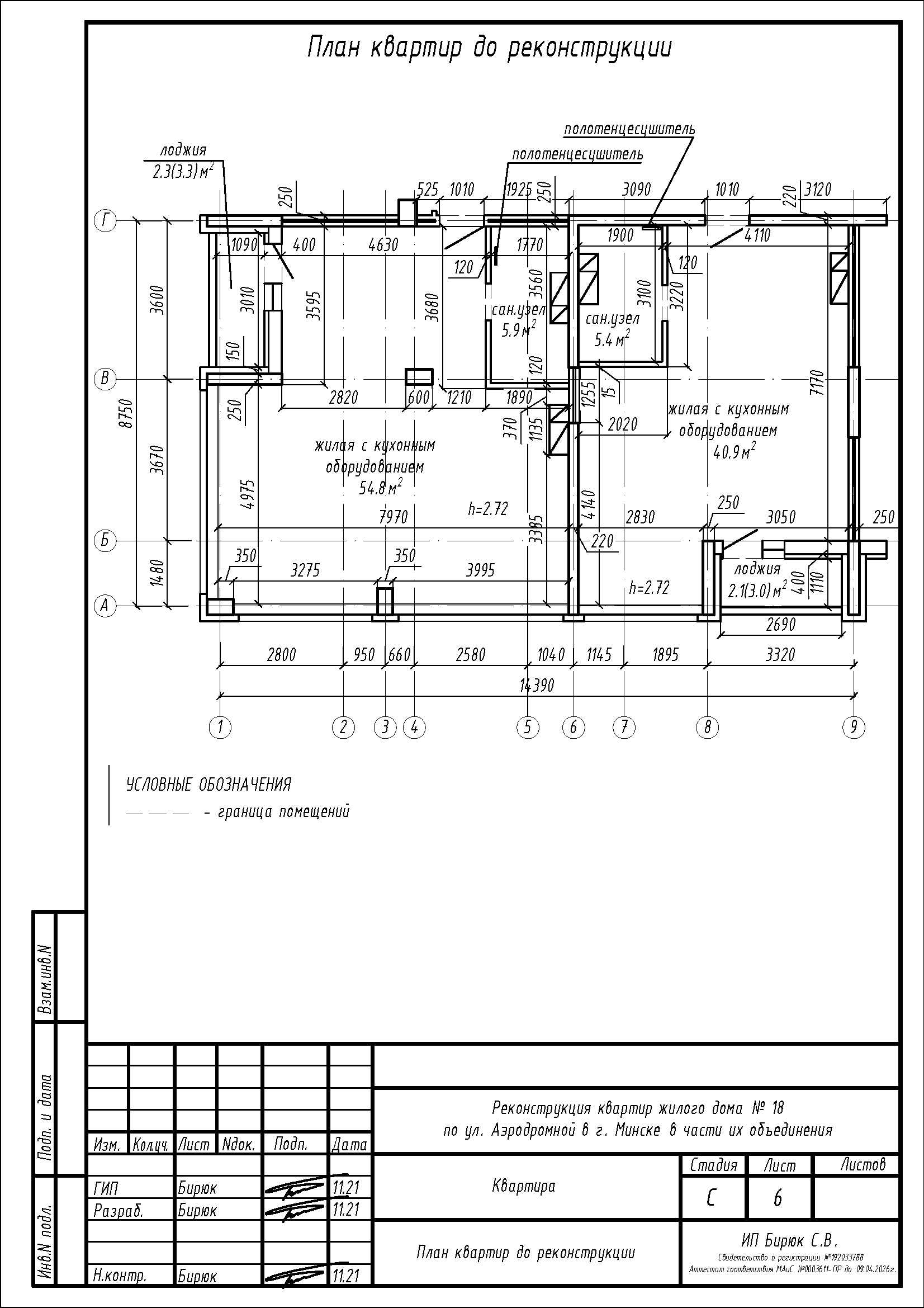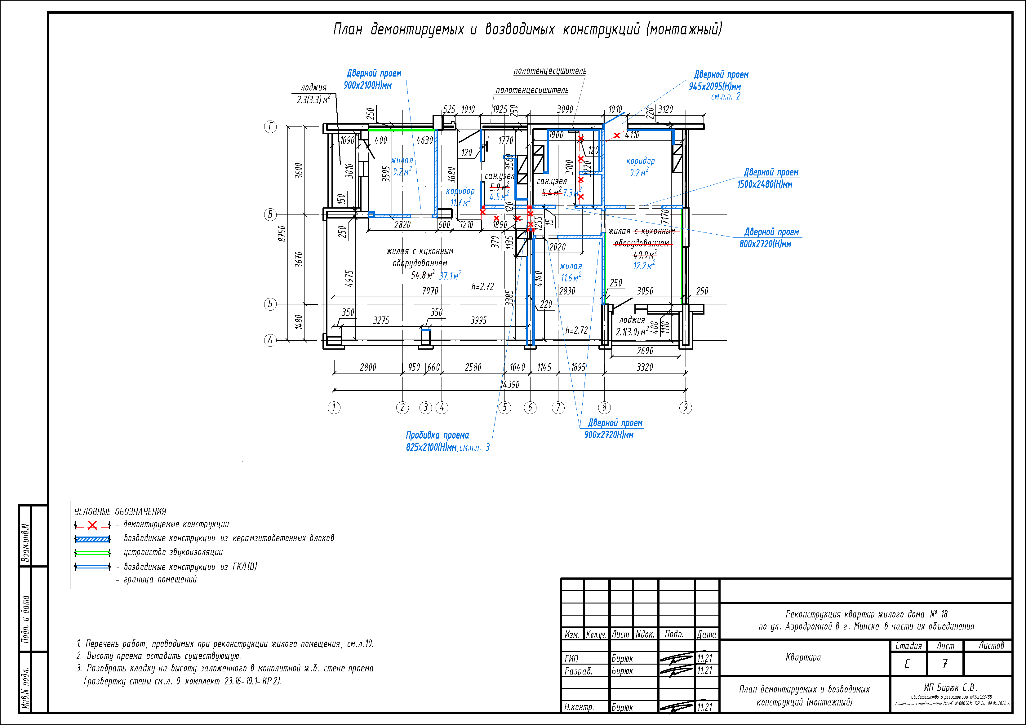 Пожелания заказчика:- Объединение квартир посредством демонтажа перегородки между одной квартирой и второй;