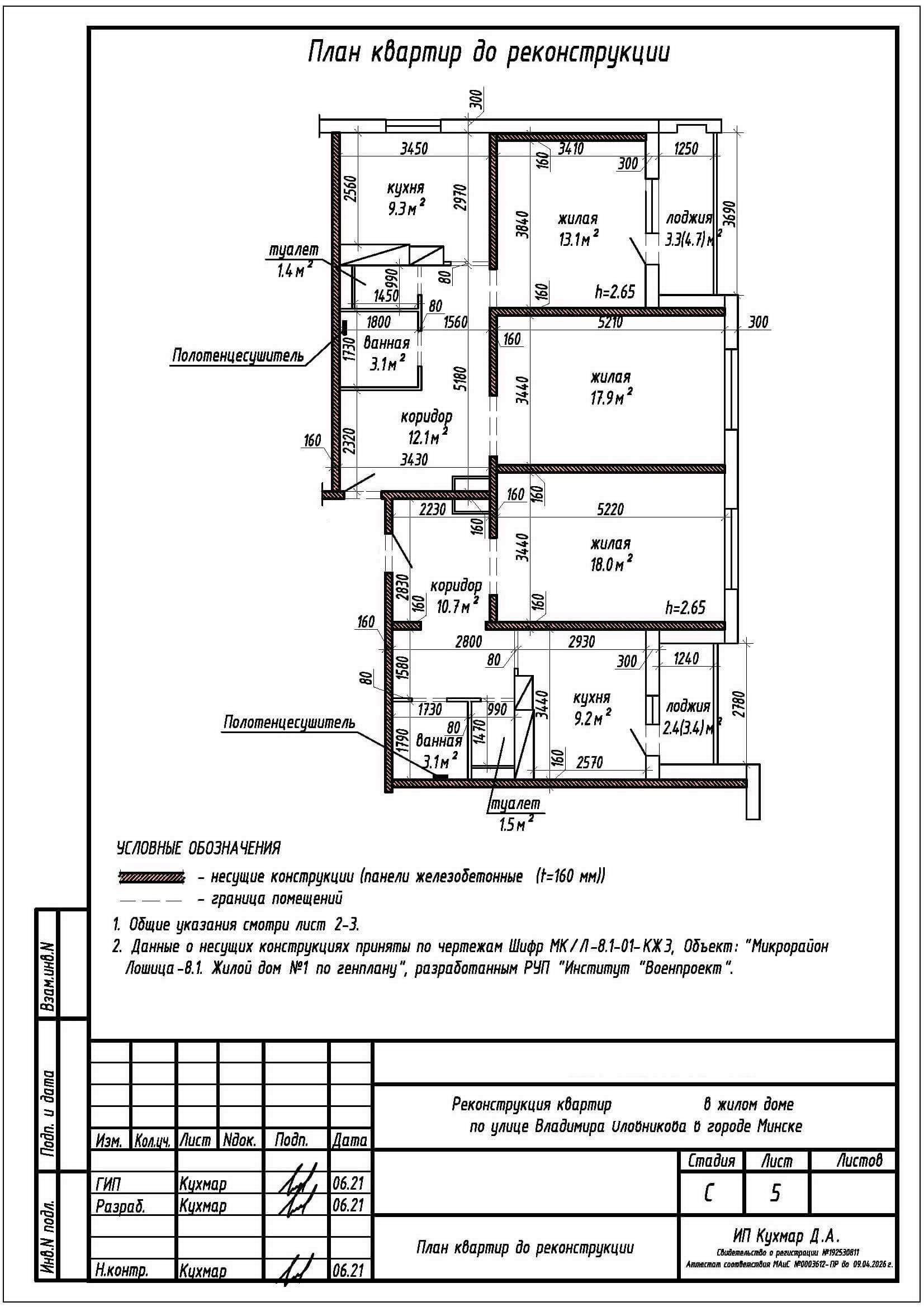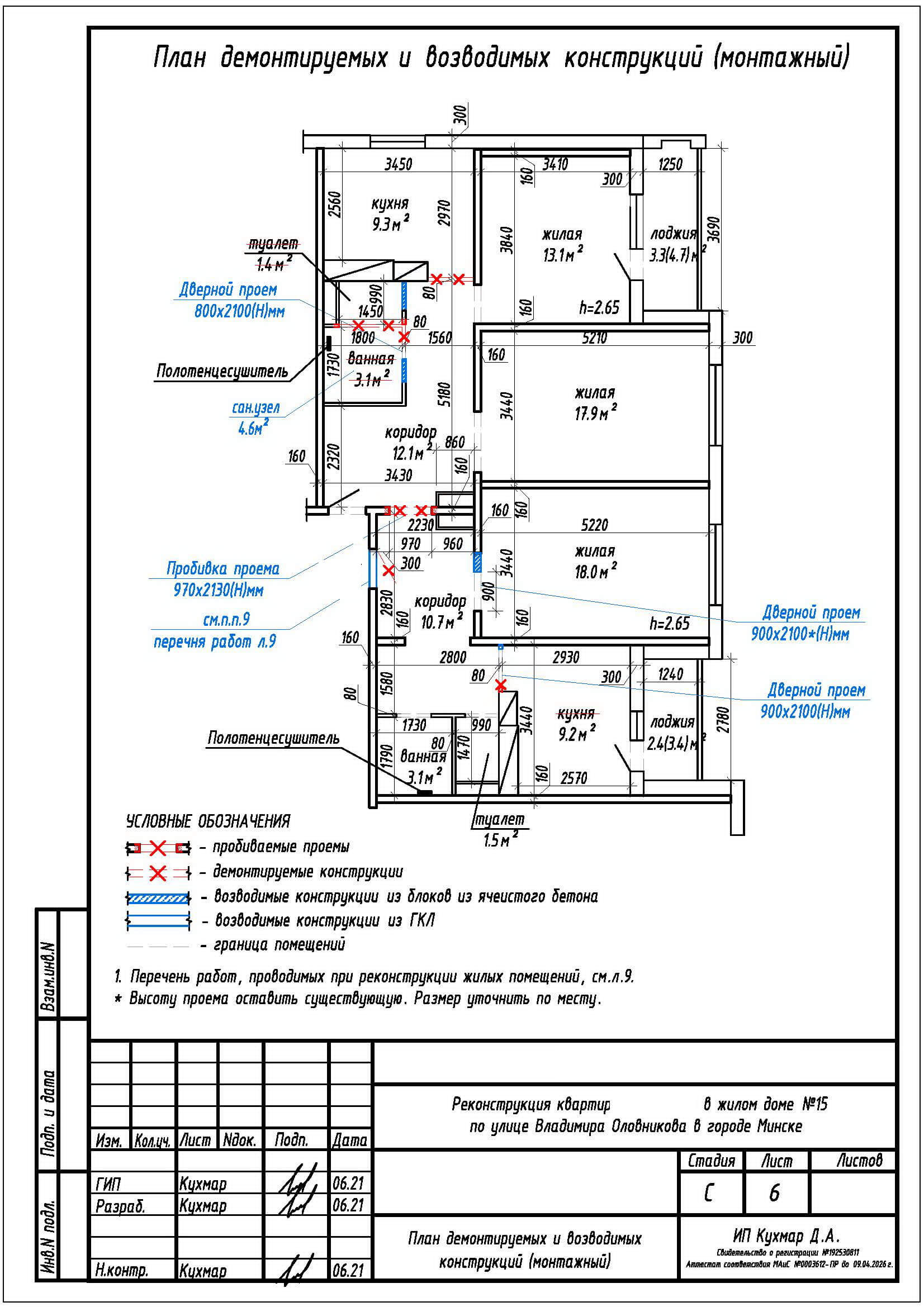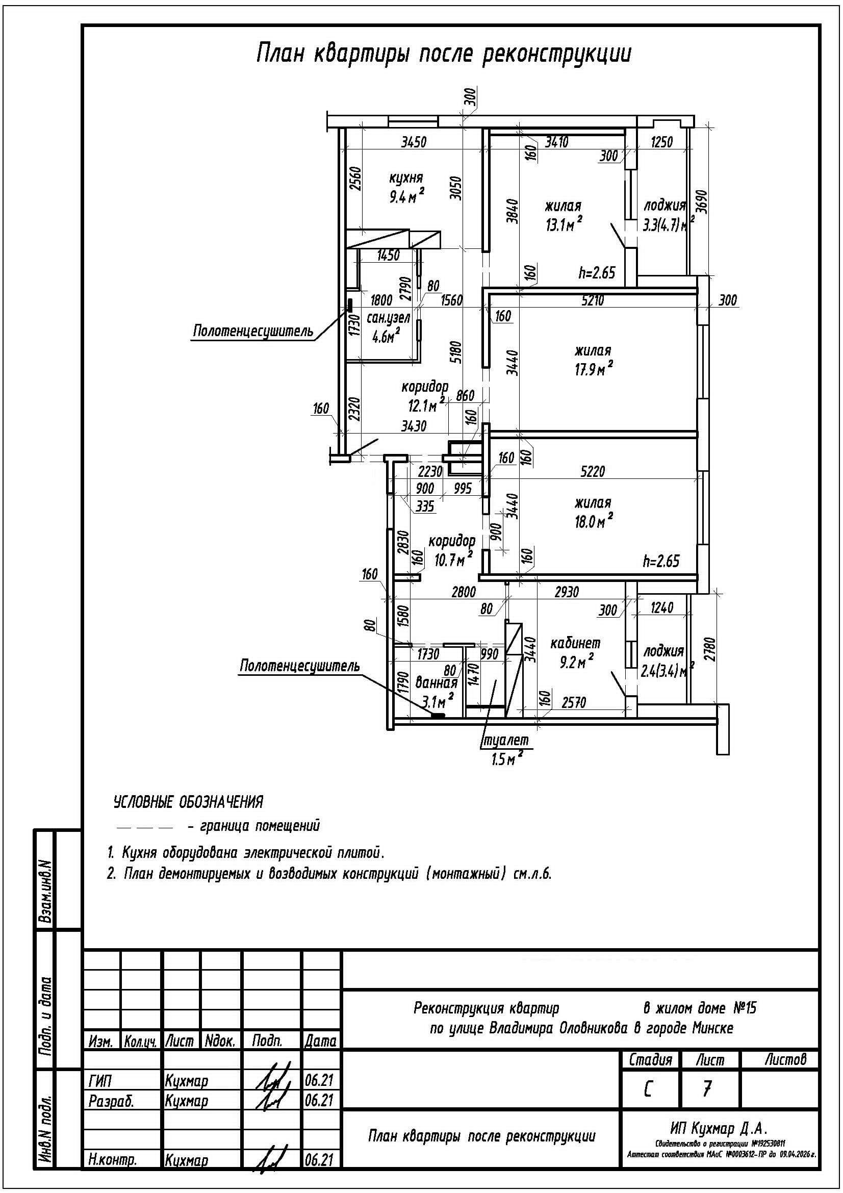 Реконструкция (объединение) квартир по ул. Оловникова, 15 в г. Минске