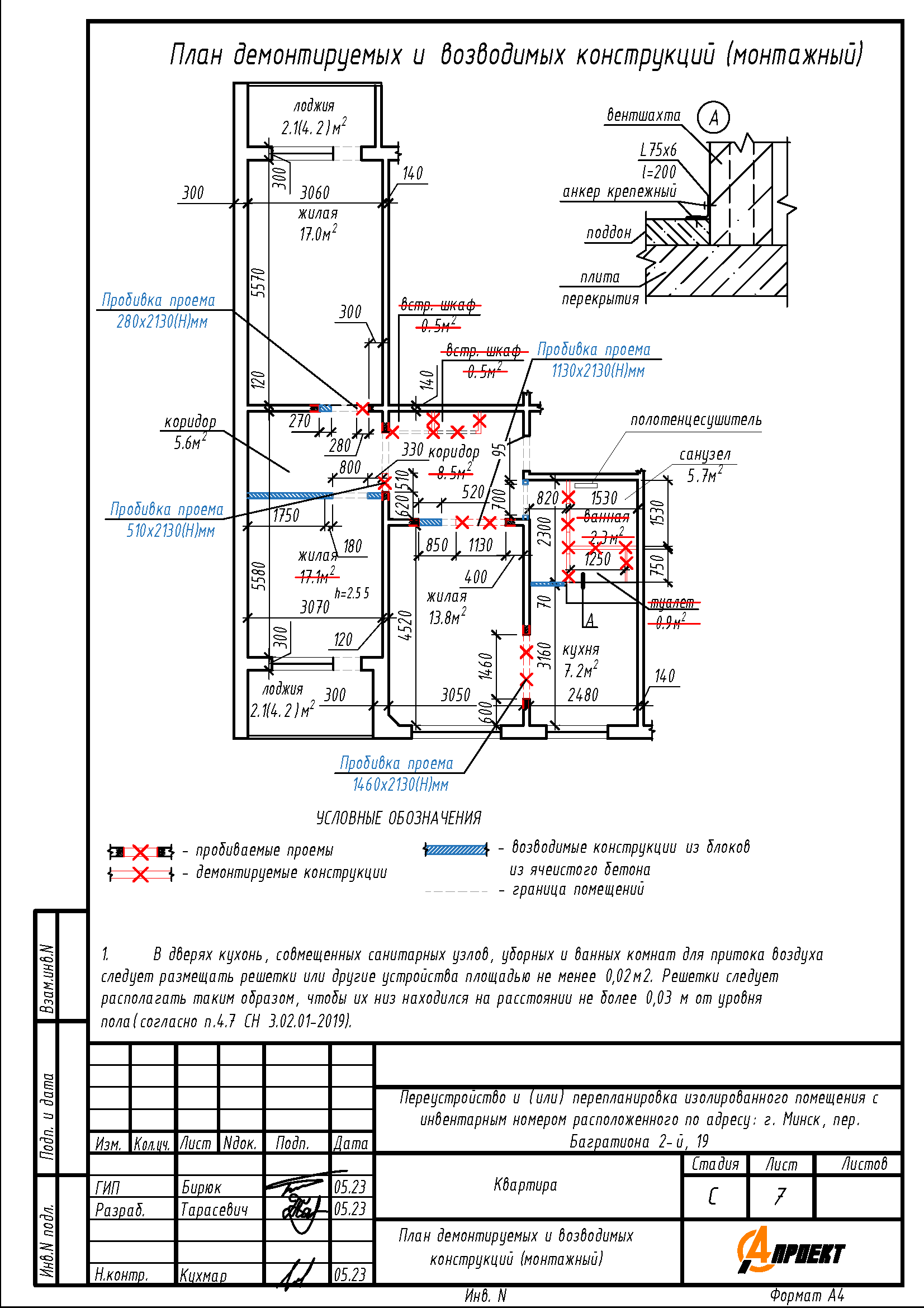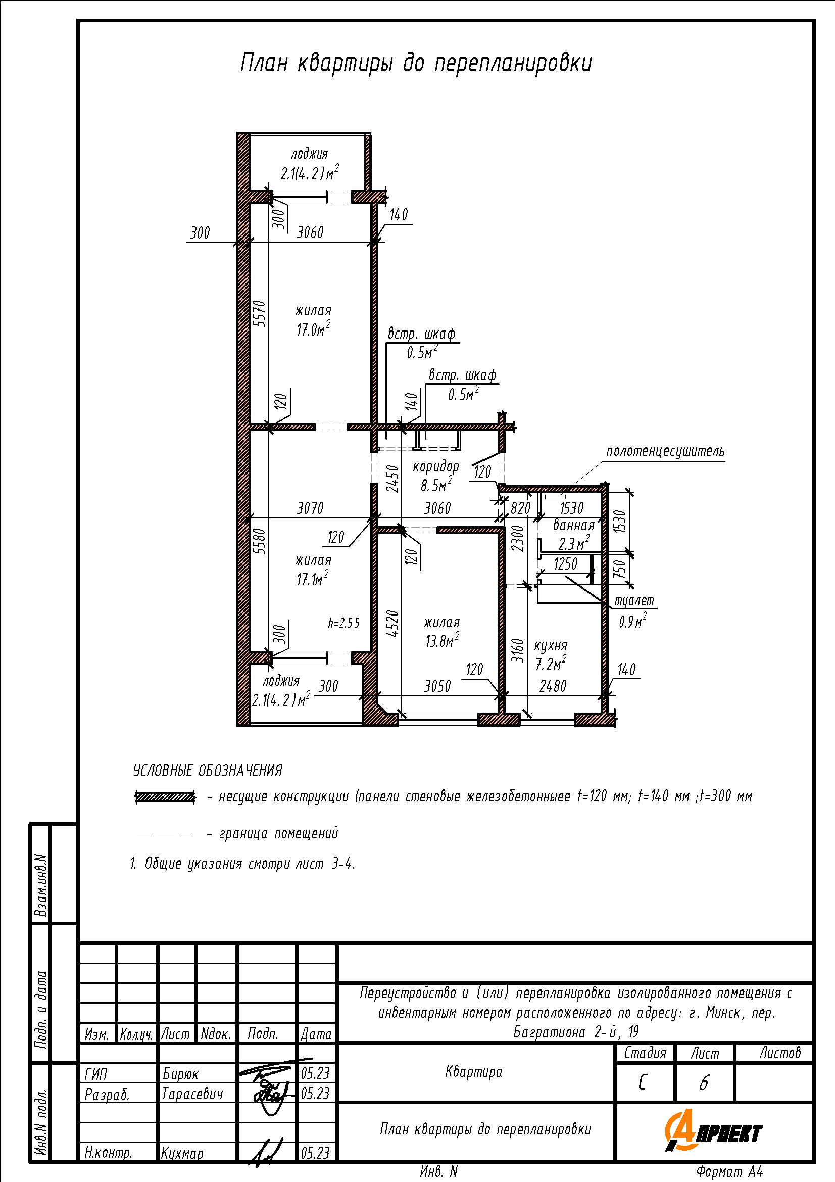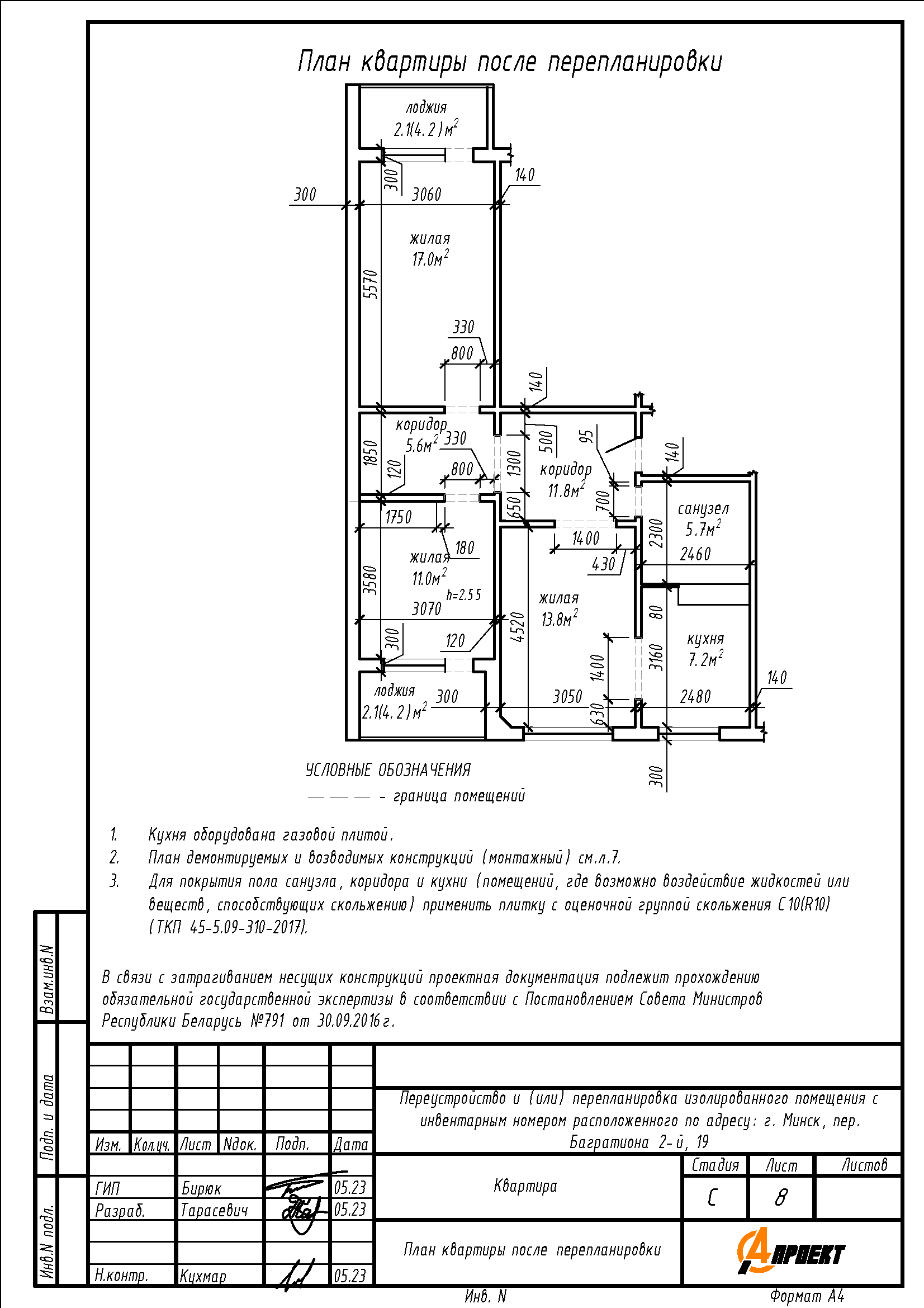 Перепланировка квартиры по пер. 2-му Багратиона, 19 в г. Минске