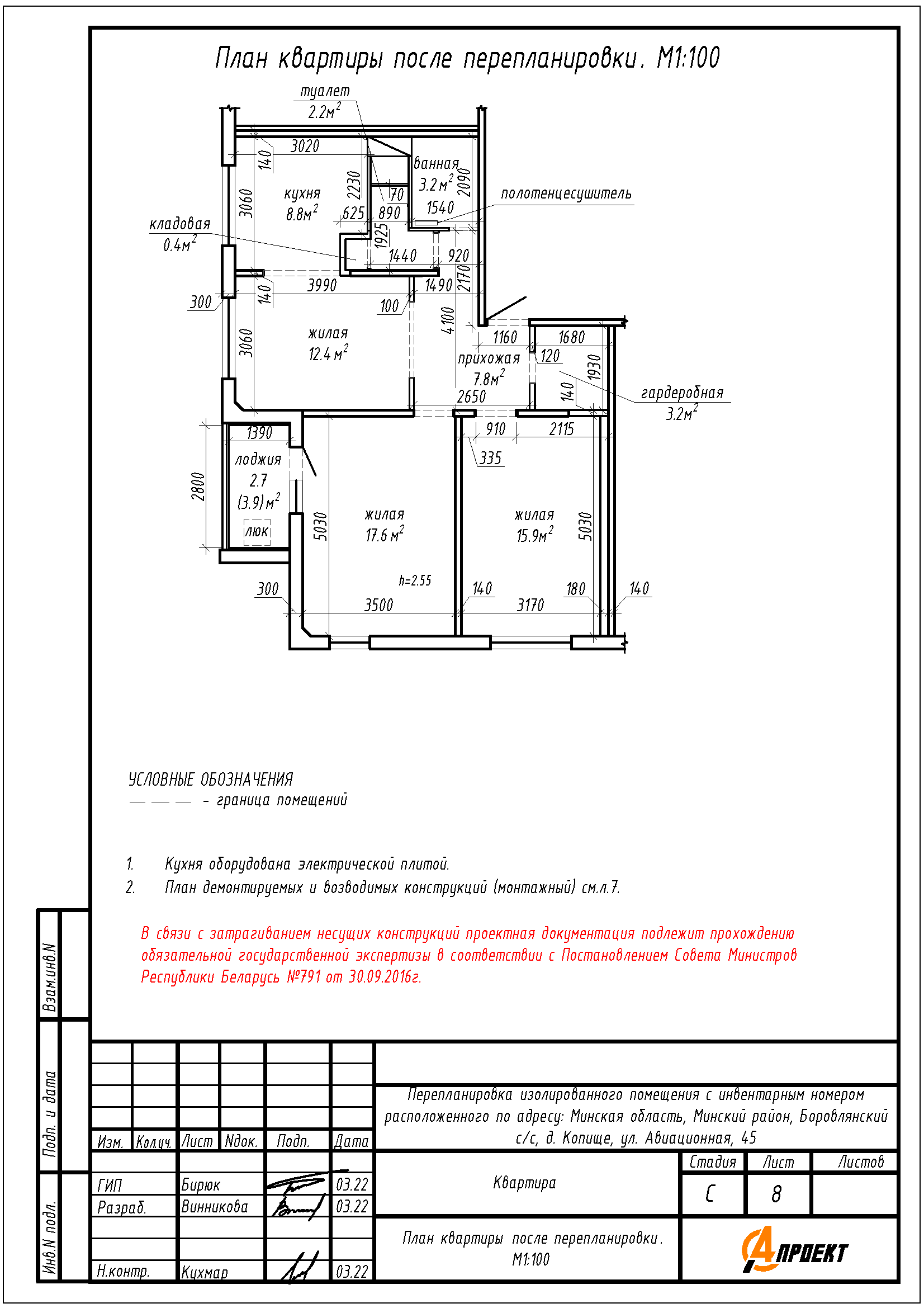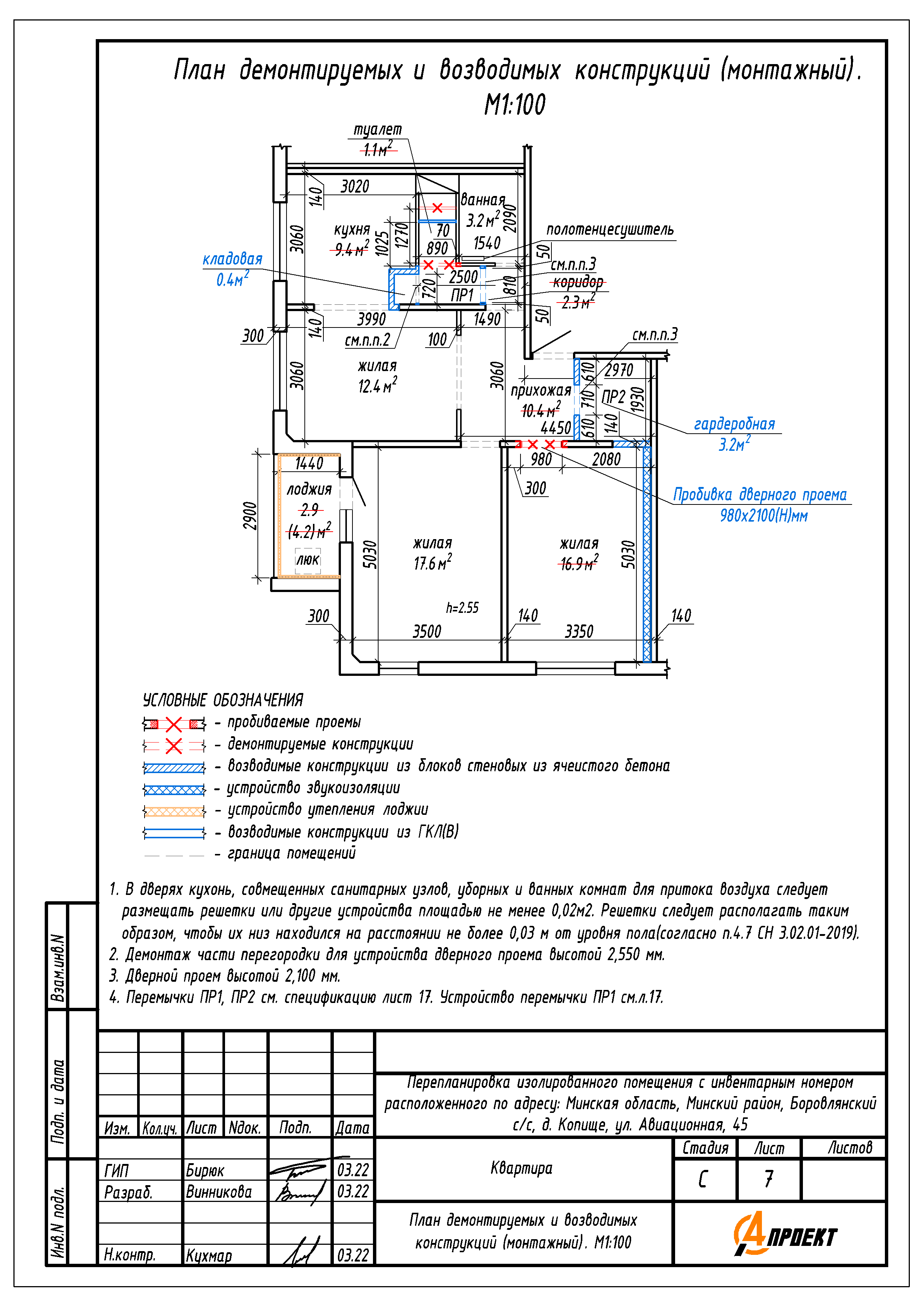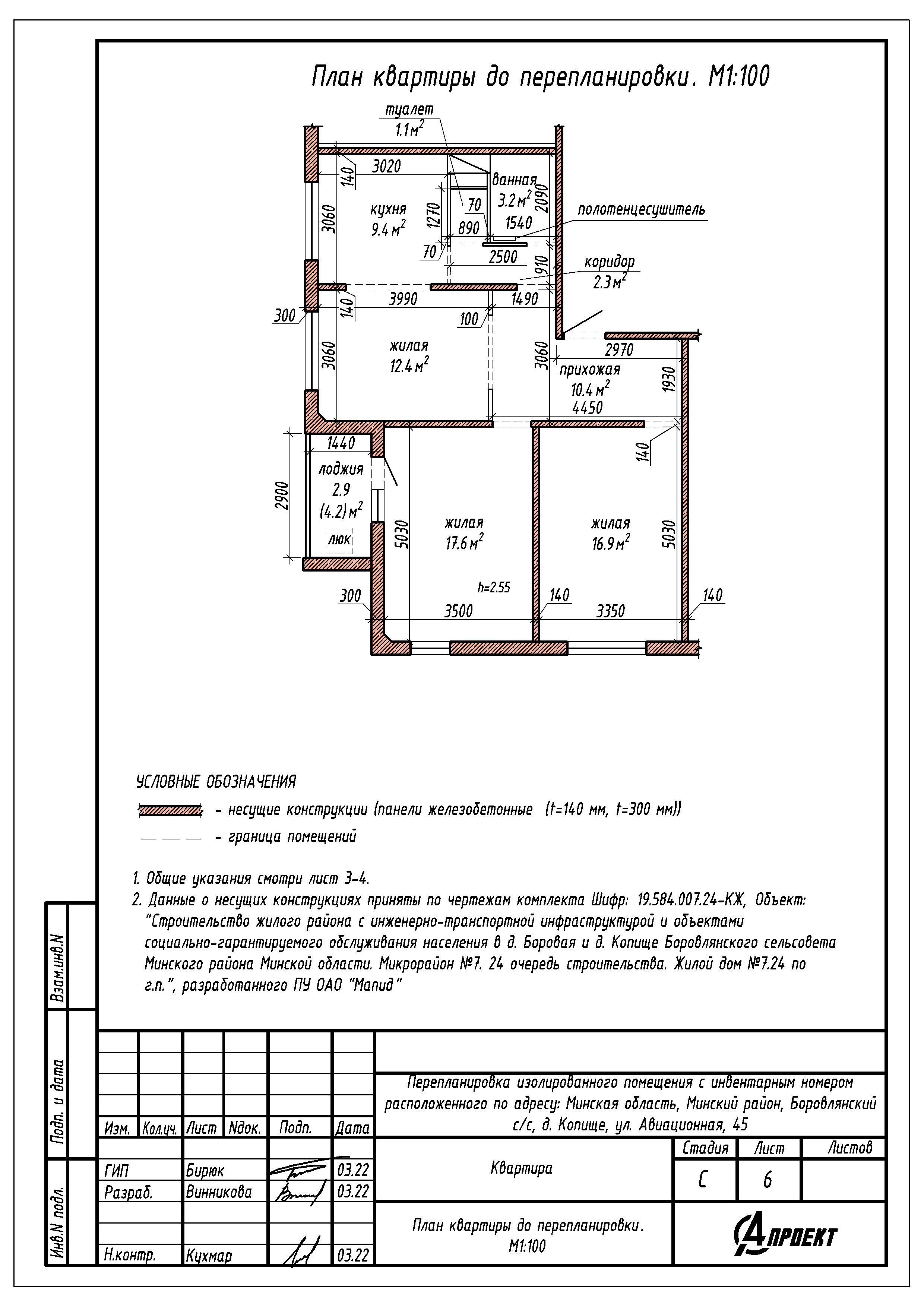 Перепланировка квартиры по ул. Авиационная, 45 в ЖК «Новая Боровая»