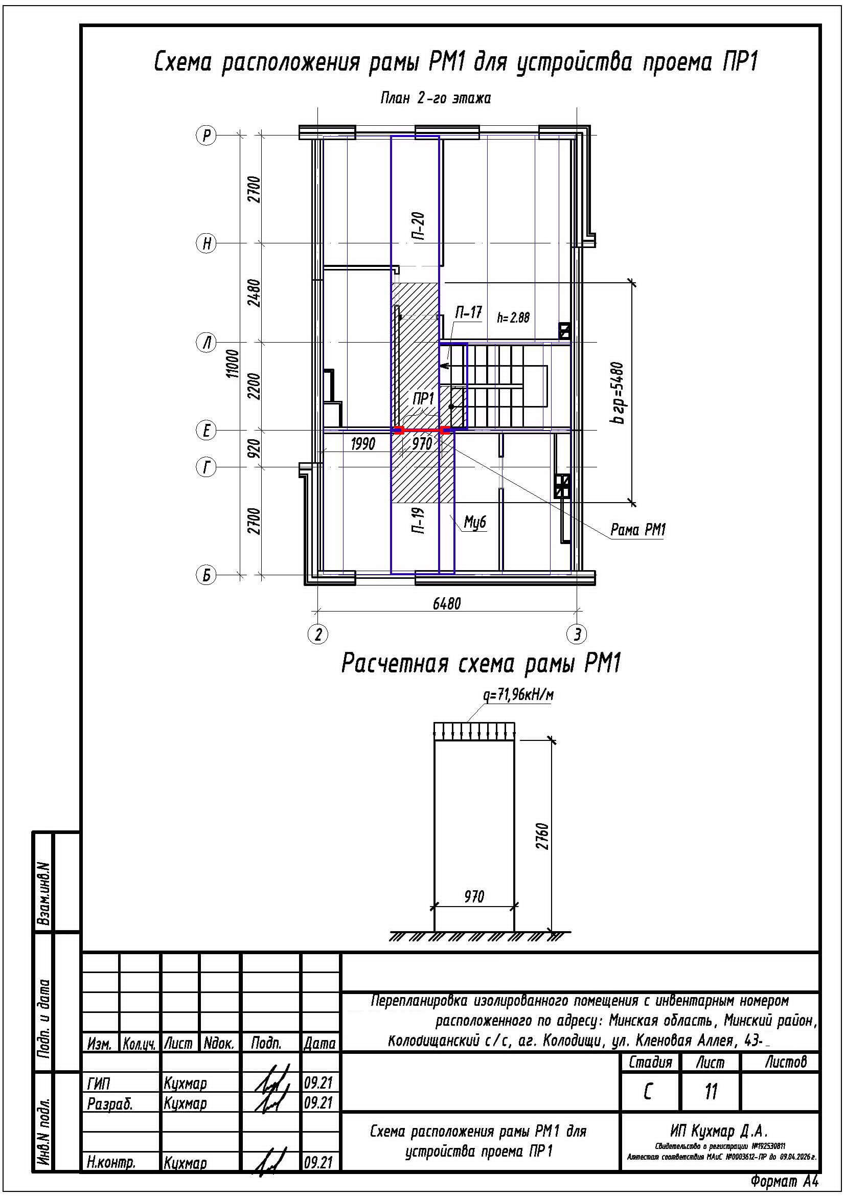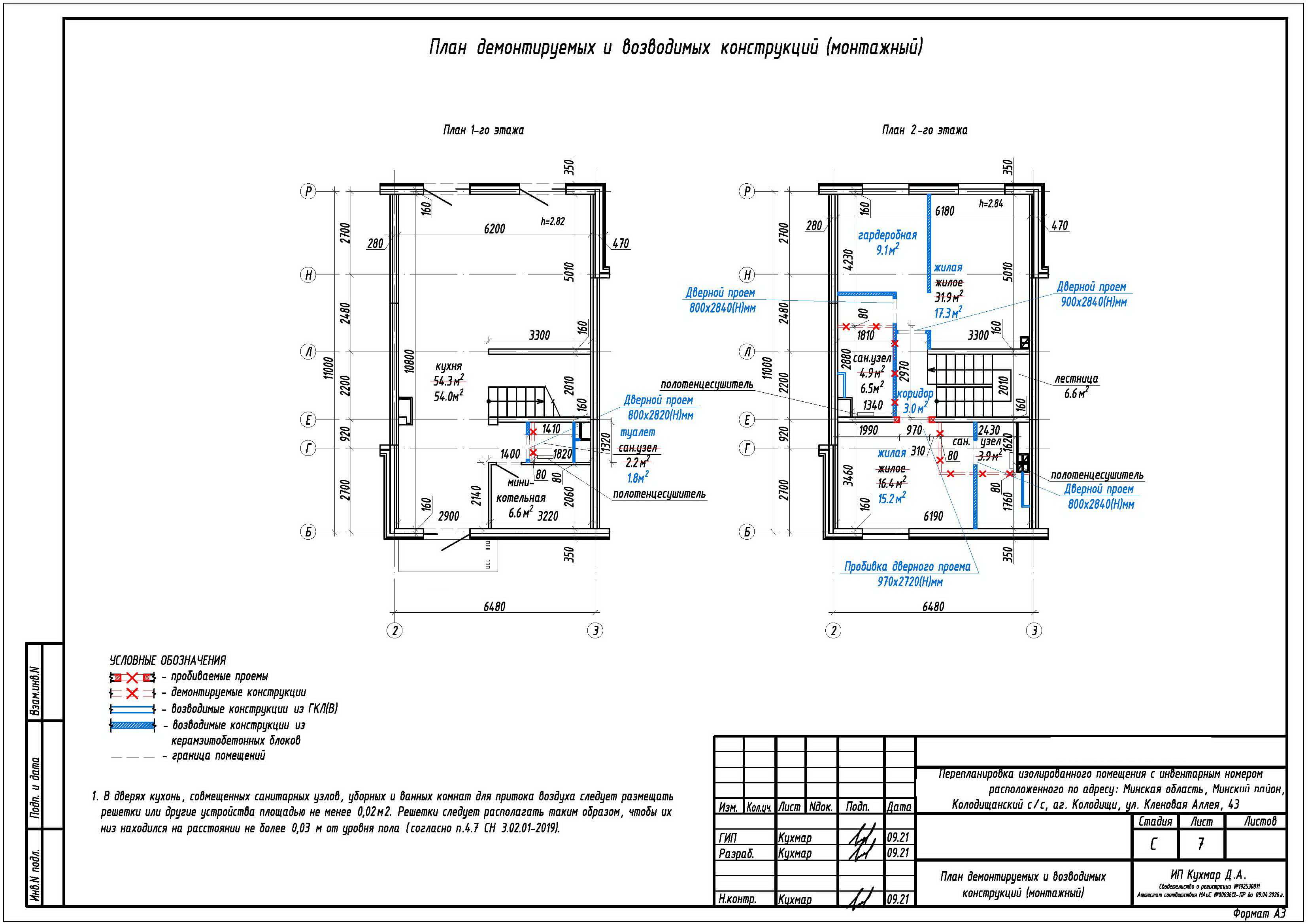 - Расширение дверного проема в несущей стене между жилой и коридором на втором этаже;