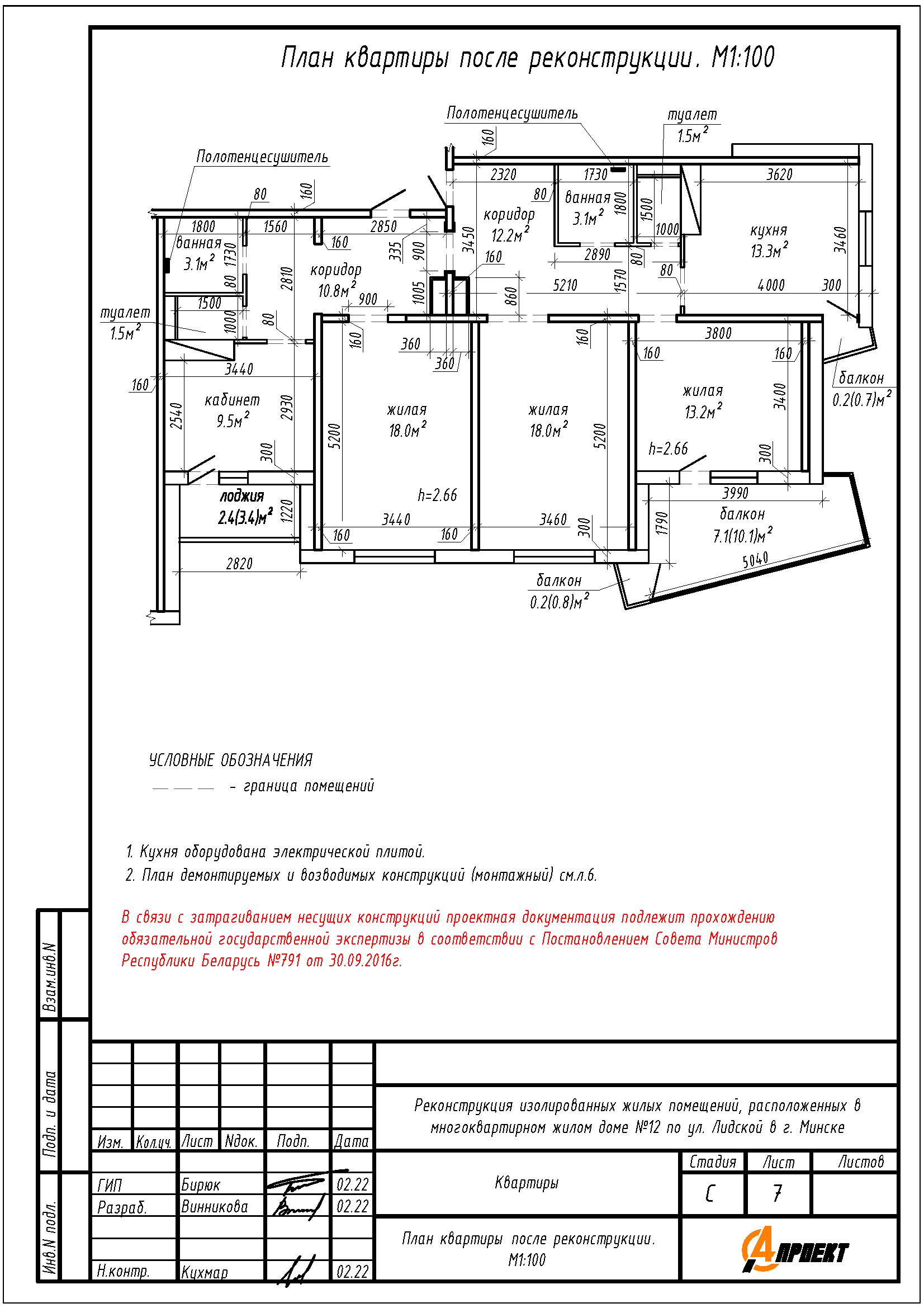 Реконструкция квартир (объединение) по ул. Лидская, 12 в г. Минске