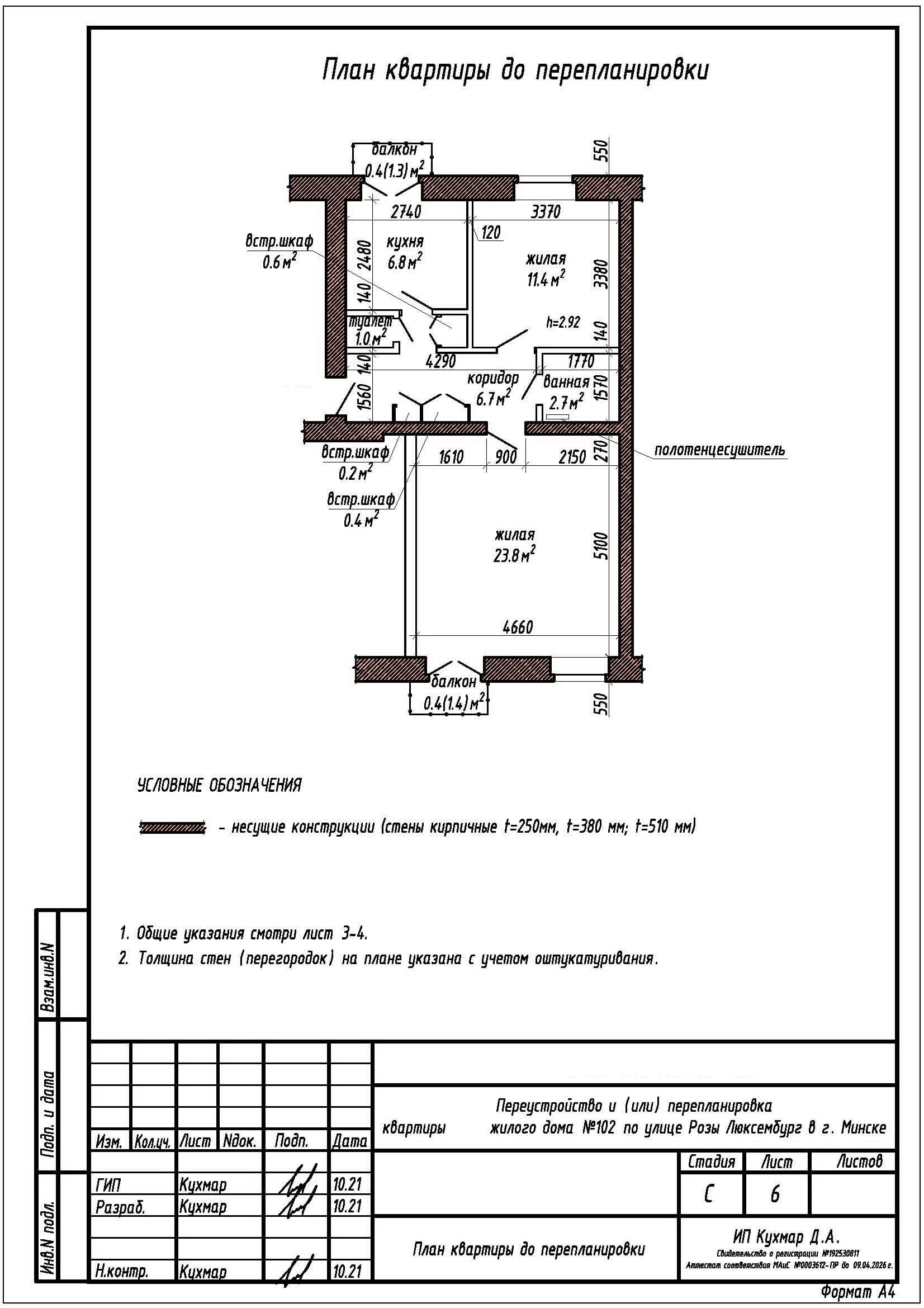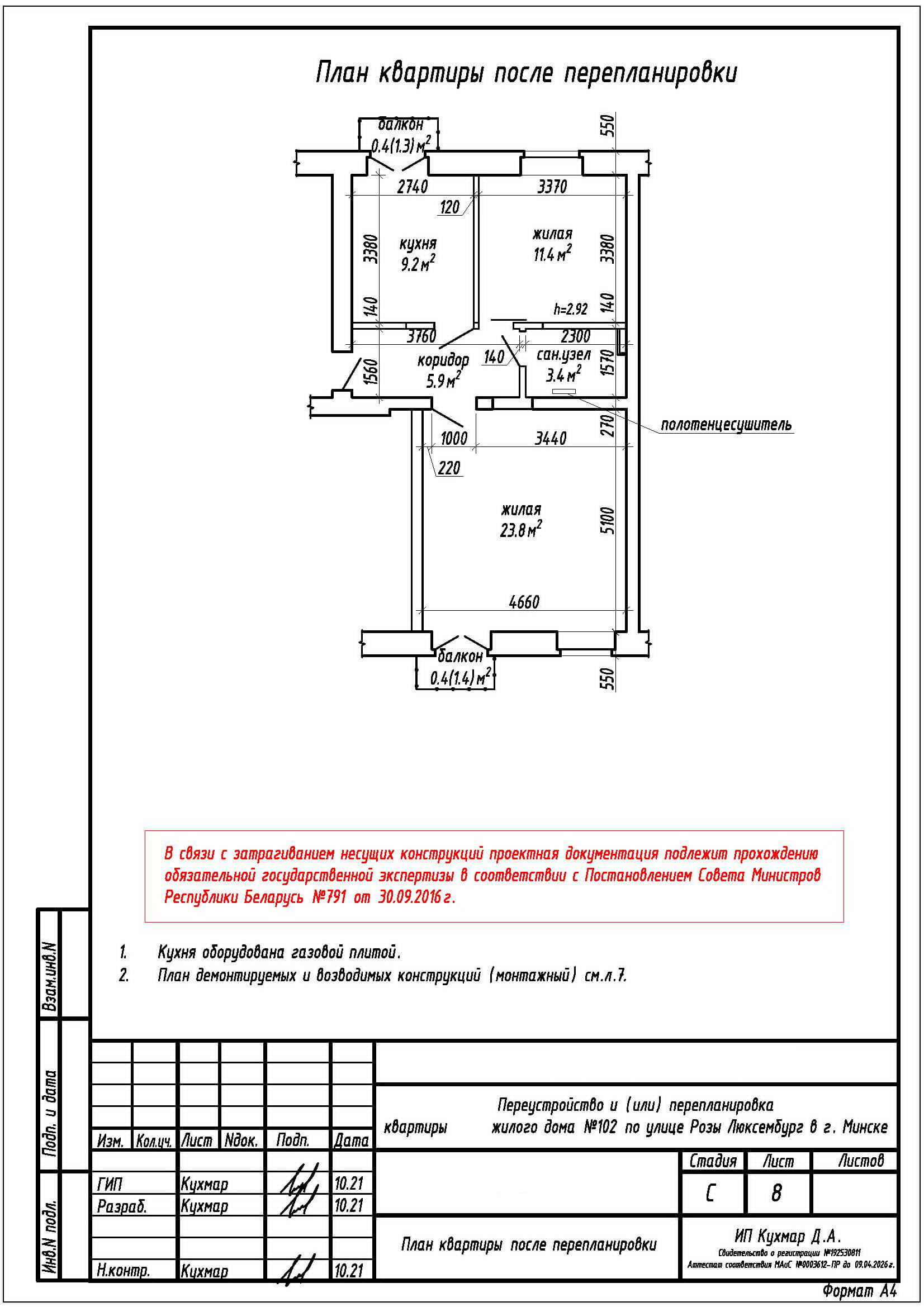 Перепланировка квартиры по ул. Розы Люксембург, 102 в г.Минске