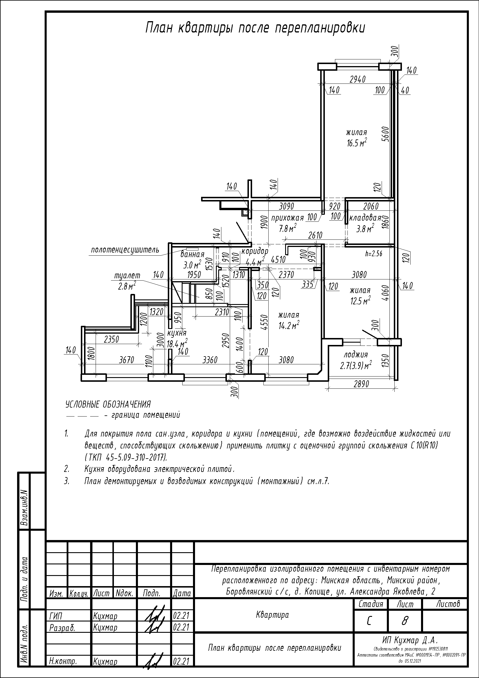 Перепланировка квартиры по ул. Александра Яковлева, 2 в ЖК «Новая Боровая»
