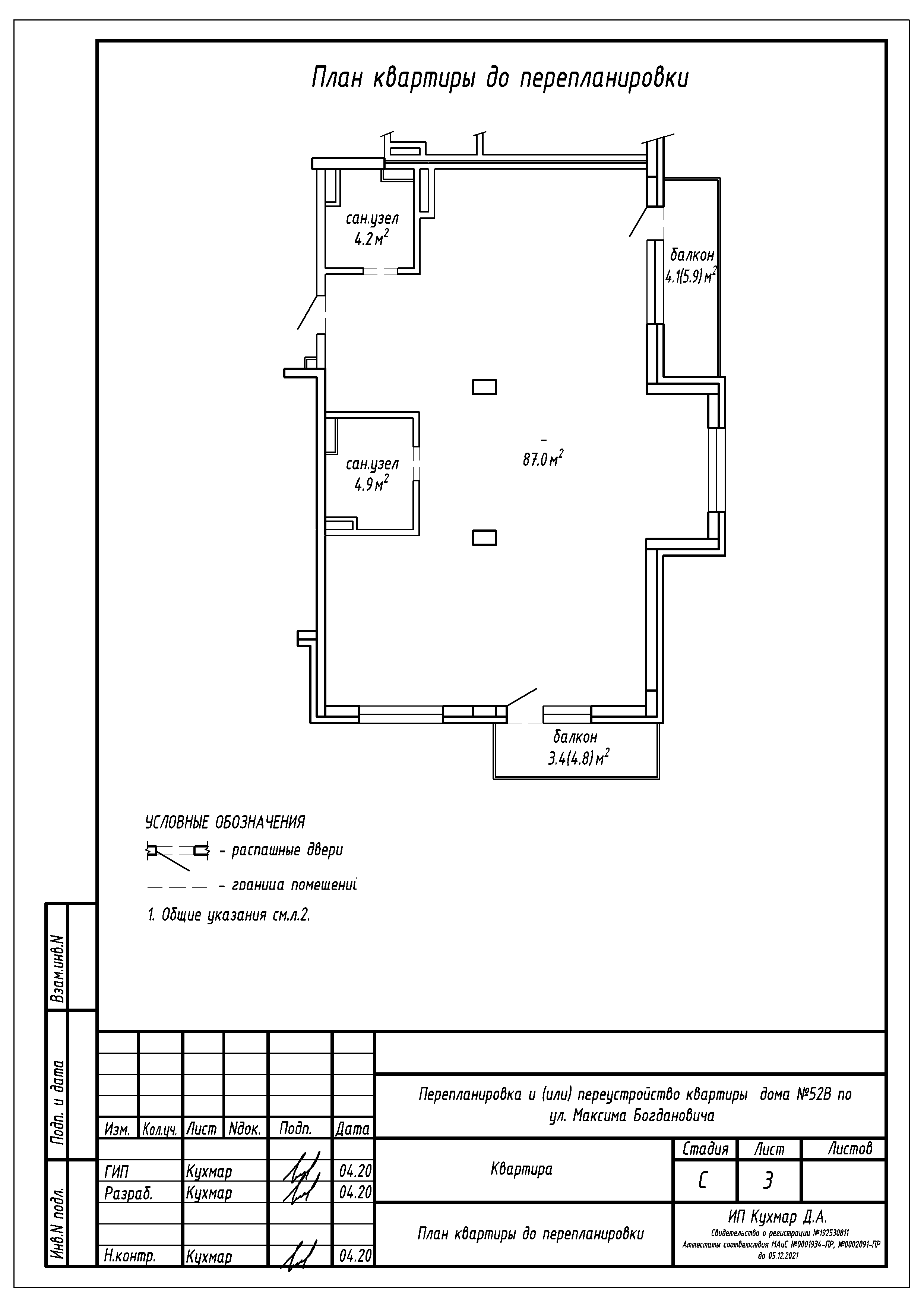 - План квартиры до перепланировки;