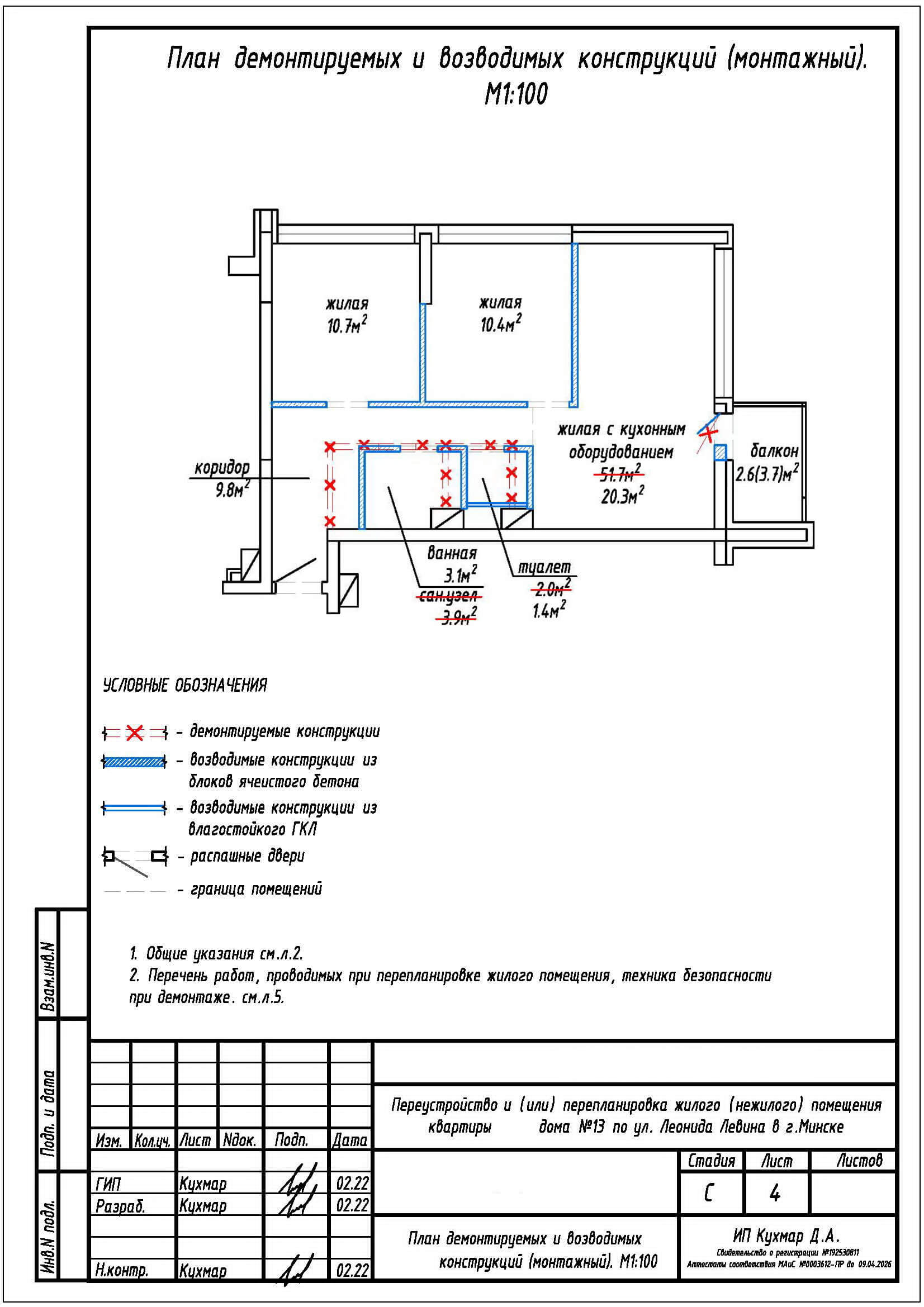 - План демонтируемых и возводимых конструкций (монтажный);
