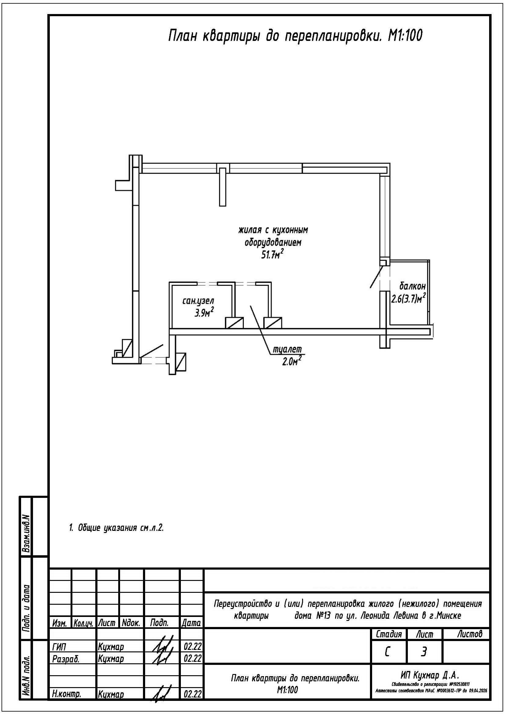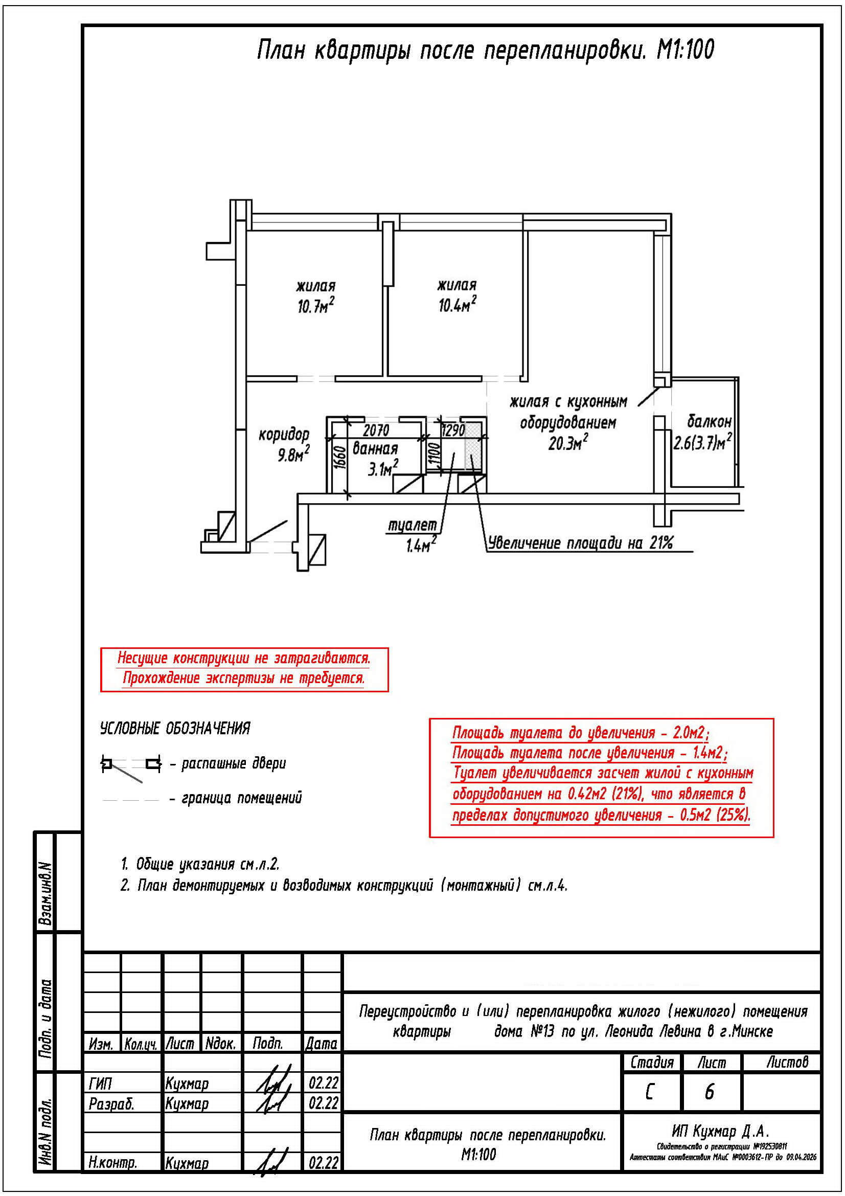Перепланировка квартиры по ул. Леонида Левина, дом 13 в ЖК Минск Мир
