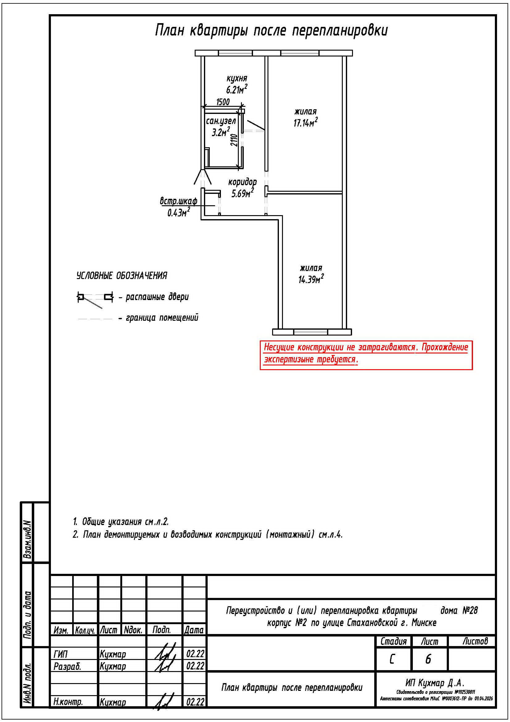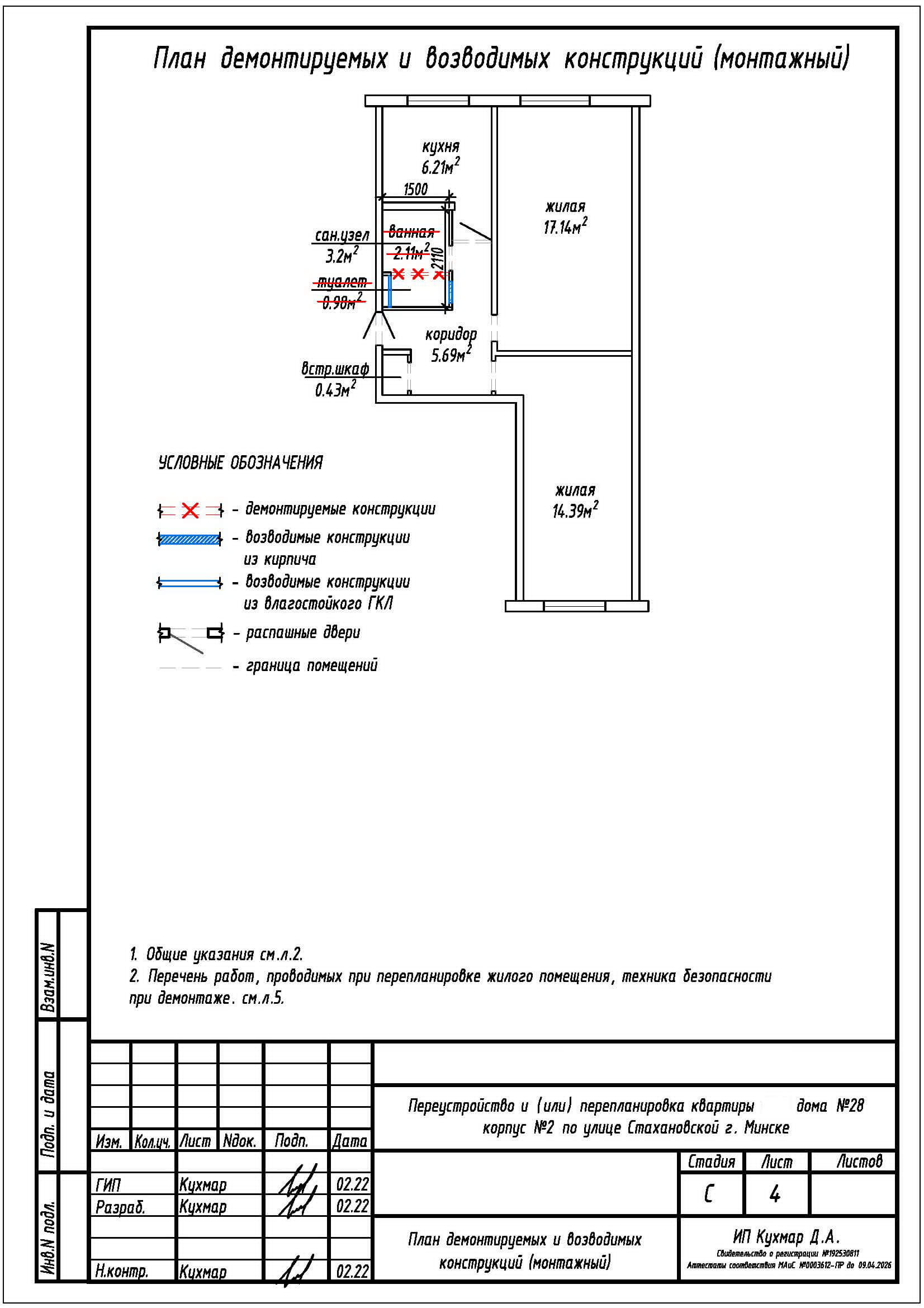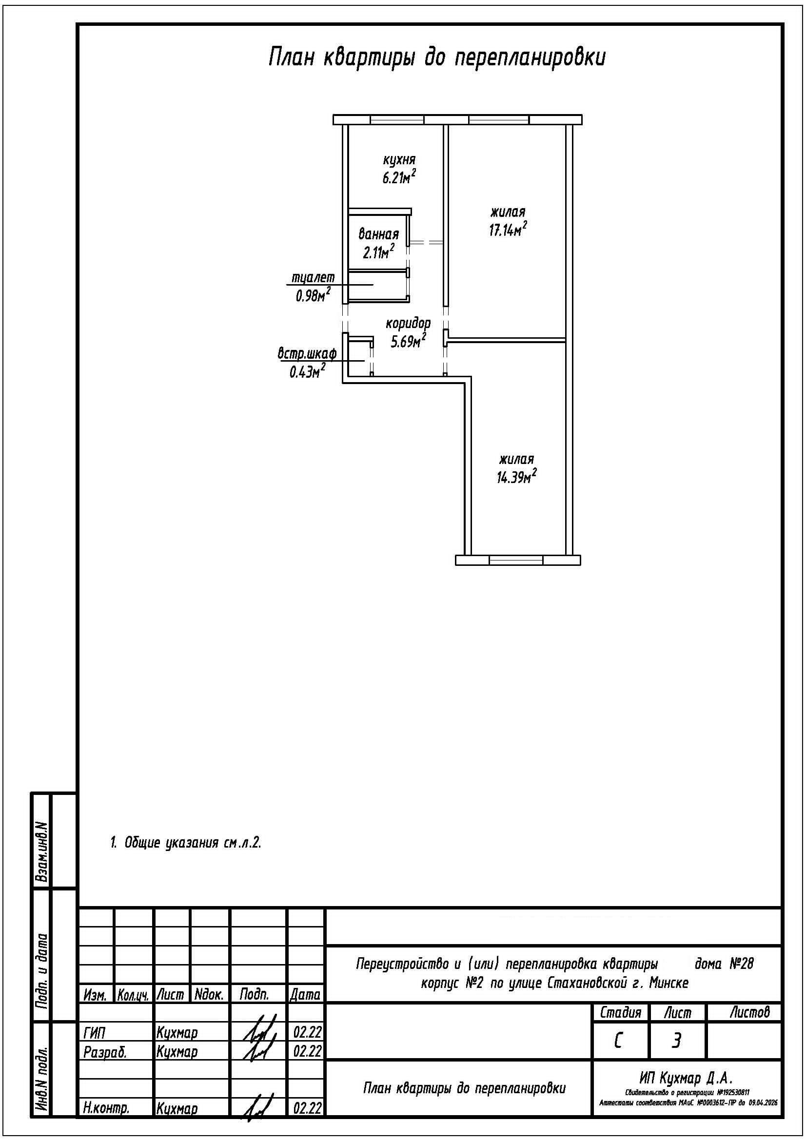 Перепланировка квартиры по ул. Стахановская, 28 корпус 2 в Минске