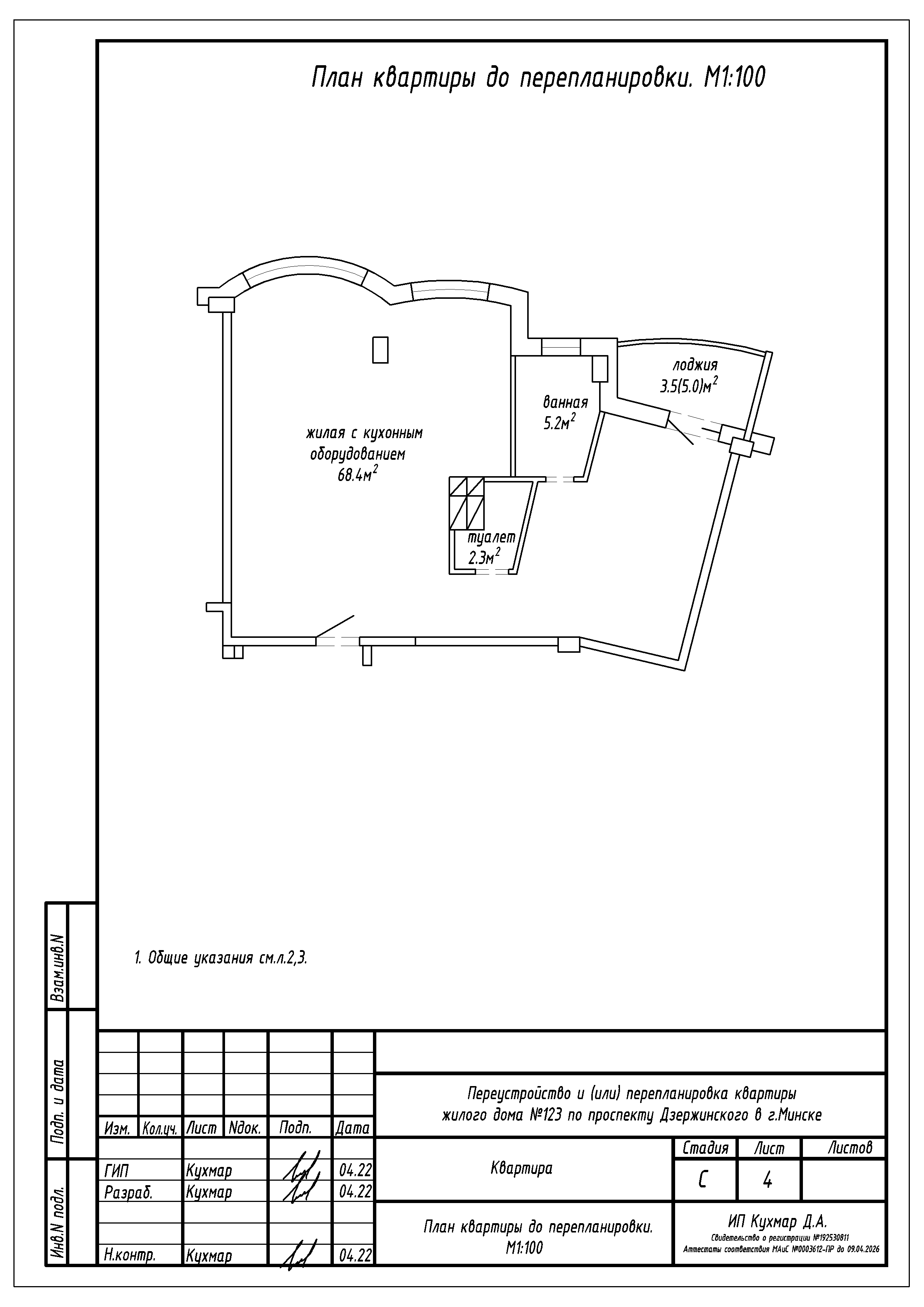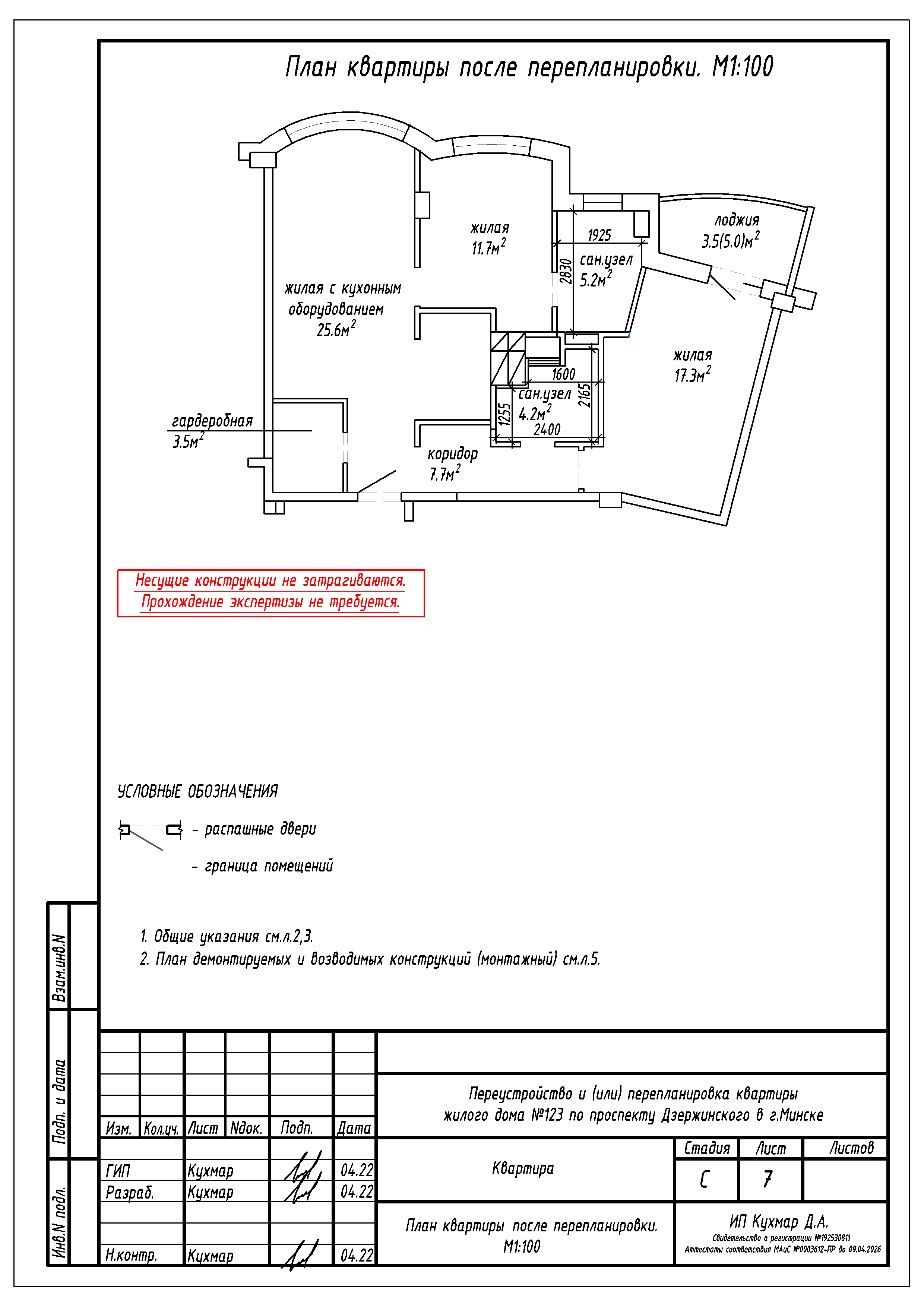 - Устройство перегородок в туалете, жилой с кухонным оборудованием, дверного проема в перегородке между ванной и жилой с кухонным оборудованием с целью устройства сан.узла на площади ванной, части площади туалета, части площади жилой с кухонным оборудованием;