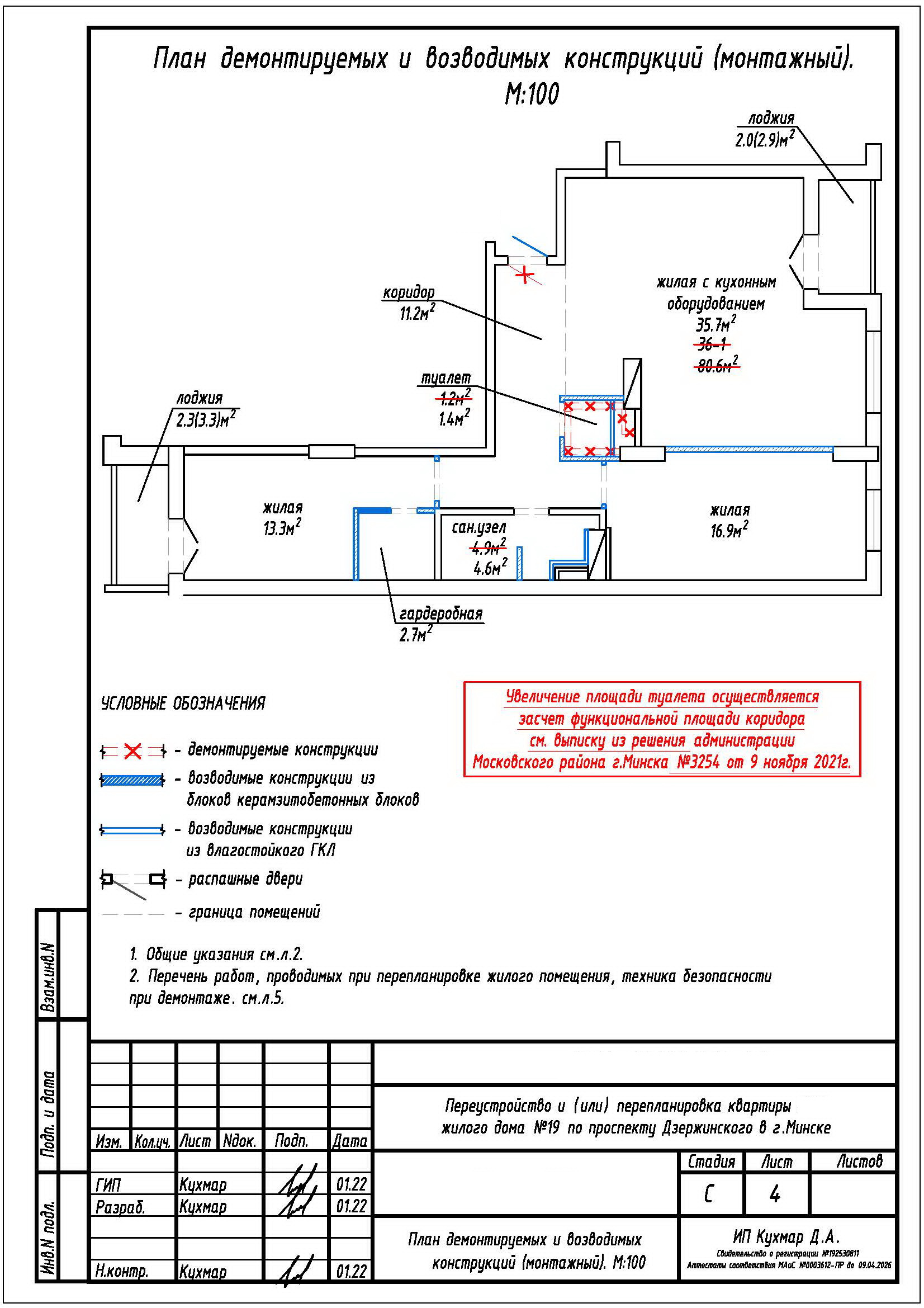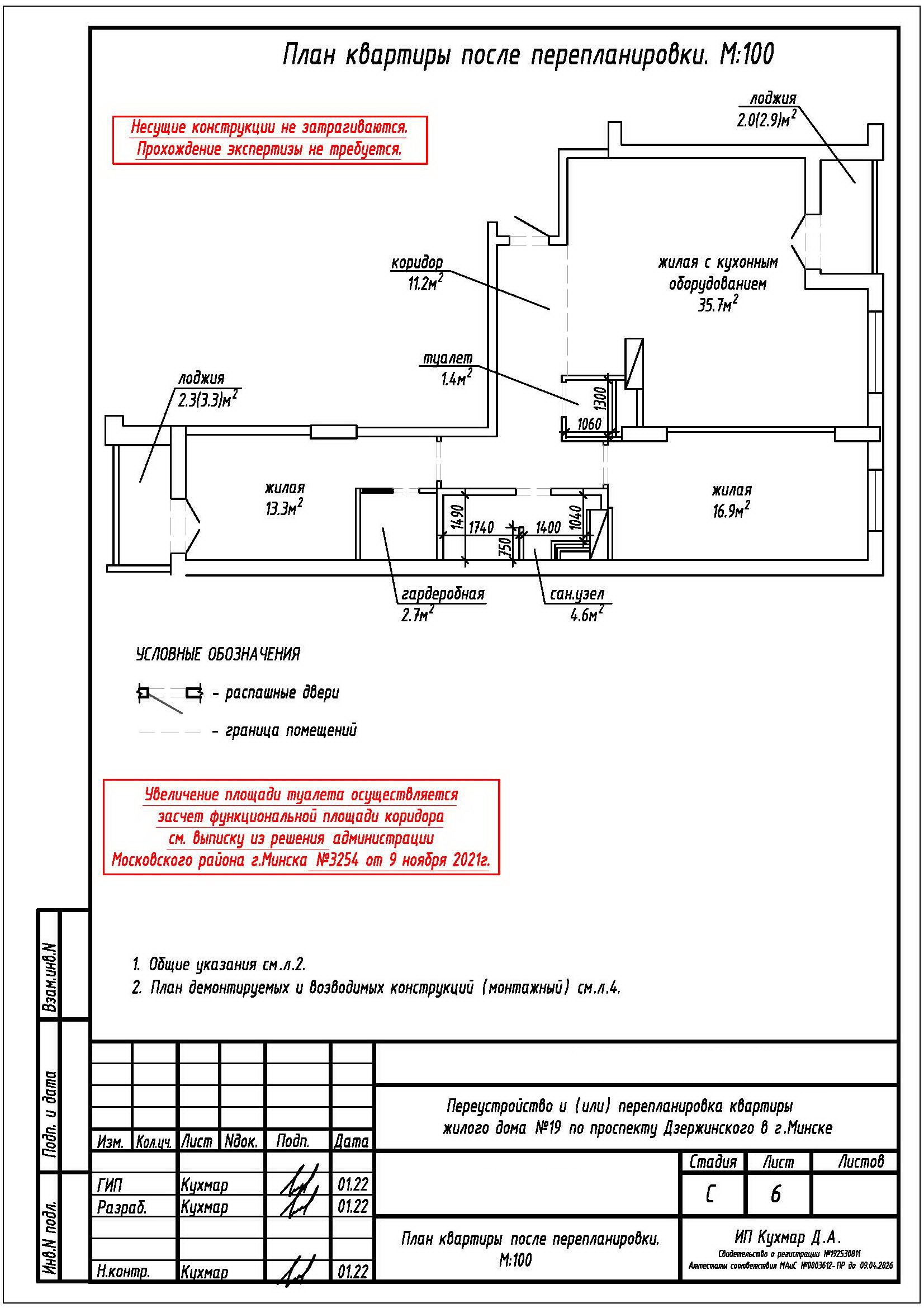Перепланировка квартиры по пр-ту Дзержинского, 19 в ЖК «Гранд Хаус»