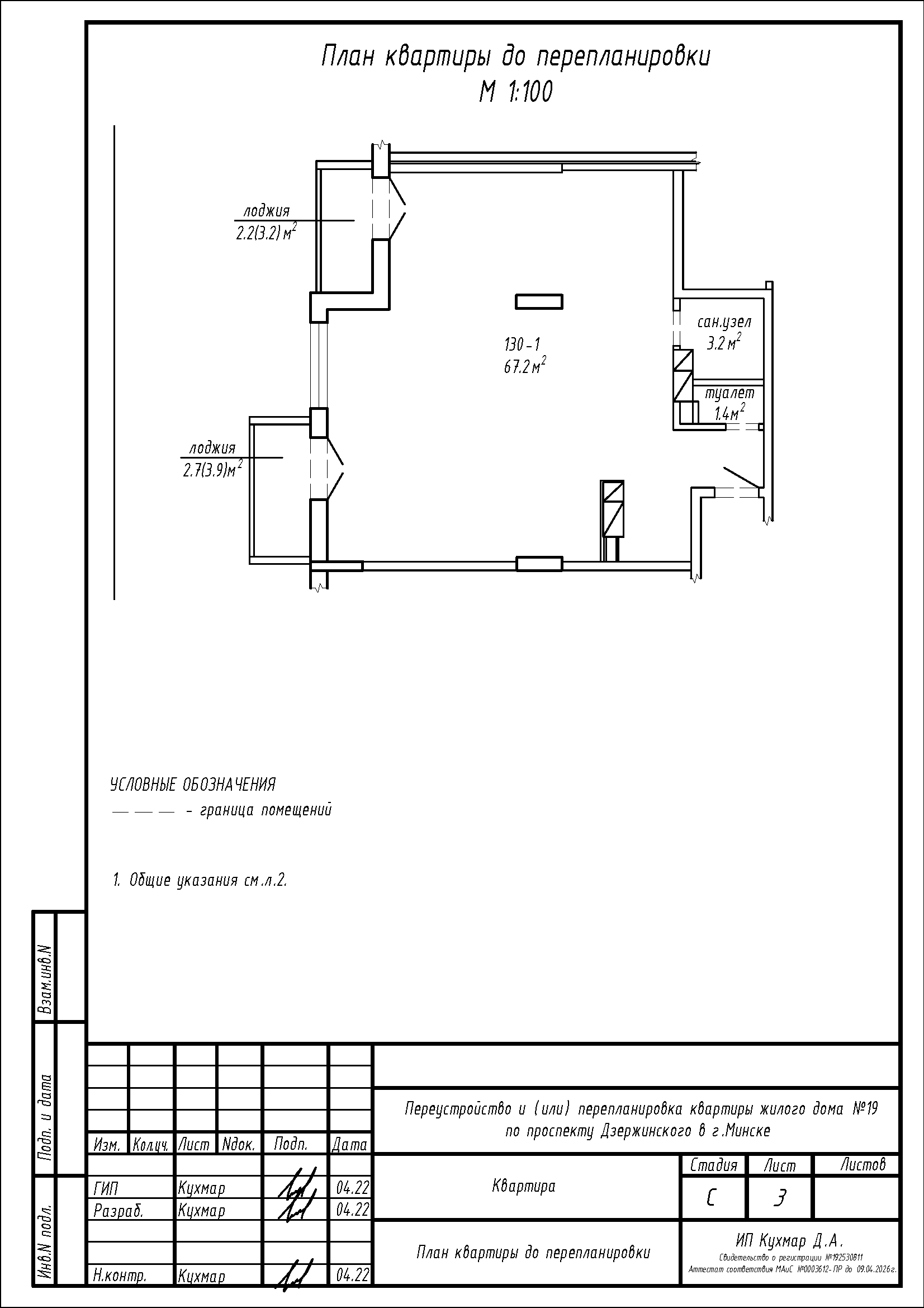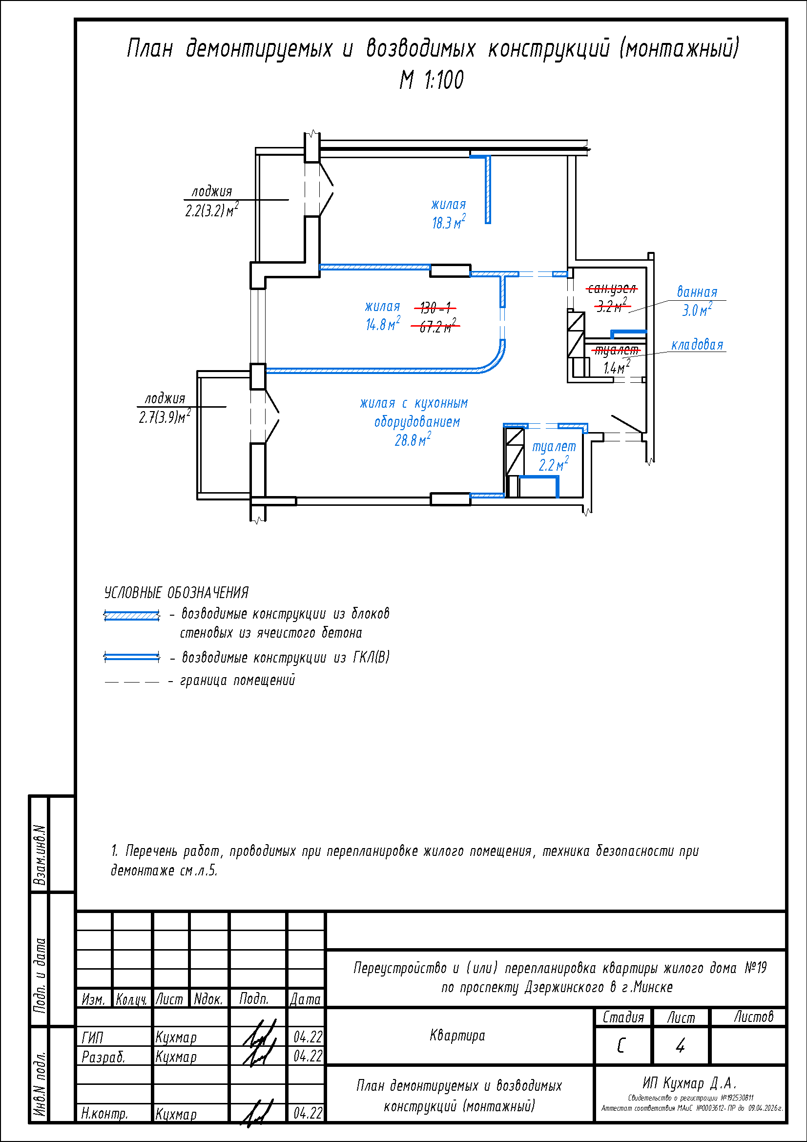 - Разделение общего помещения жилой с кухонным оборудованием на две жилые и жилую с кухонным оборудованием, коридор;