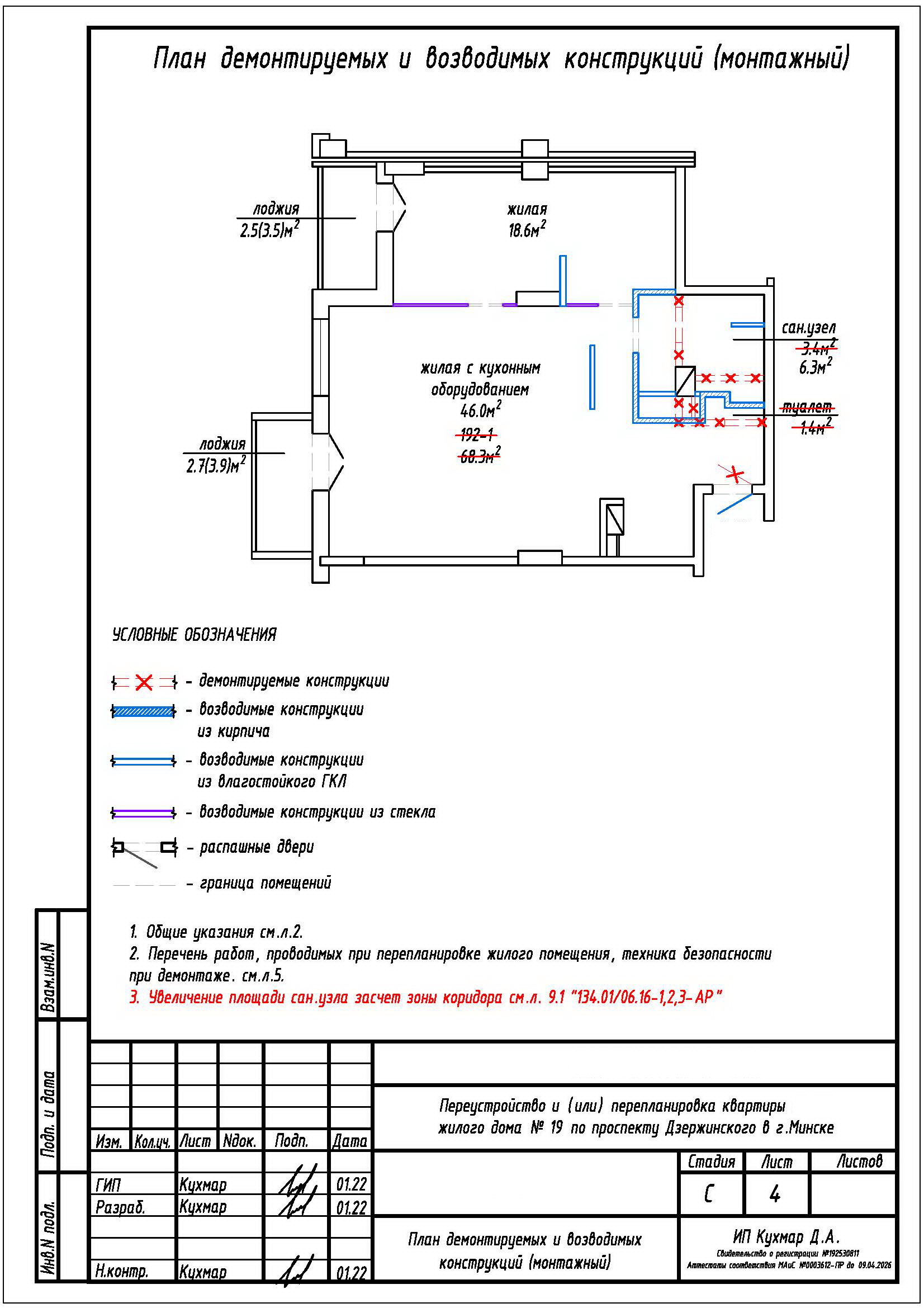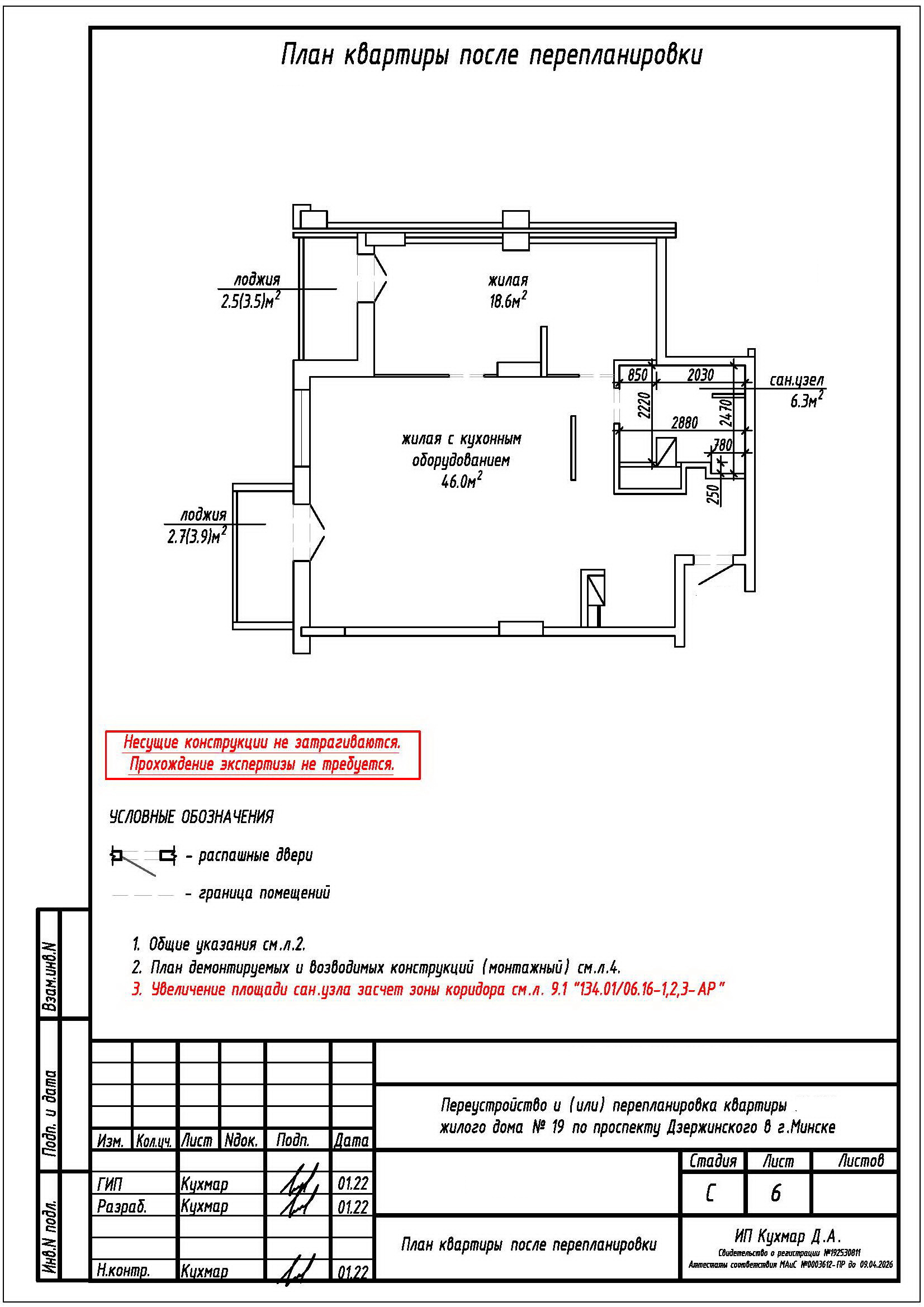 Перепланировка квартиры по пр-ту Дзержинского, 19 в ЖК «Гранд Хаус»