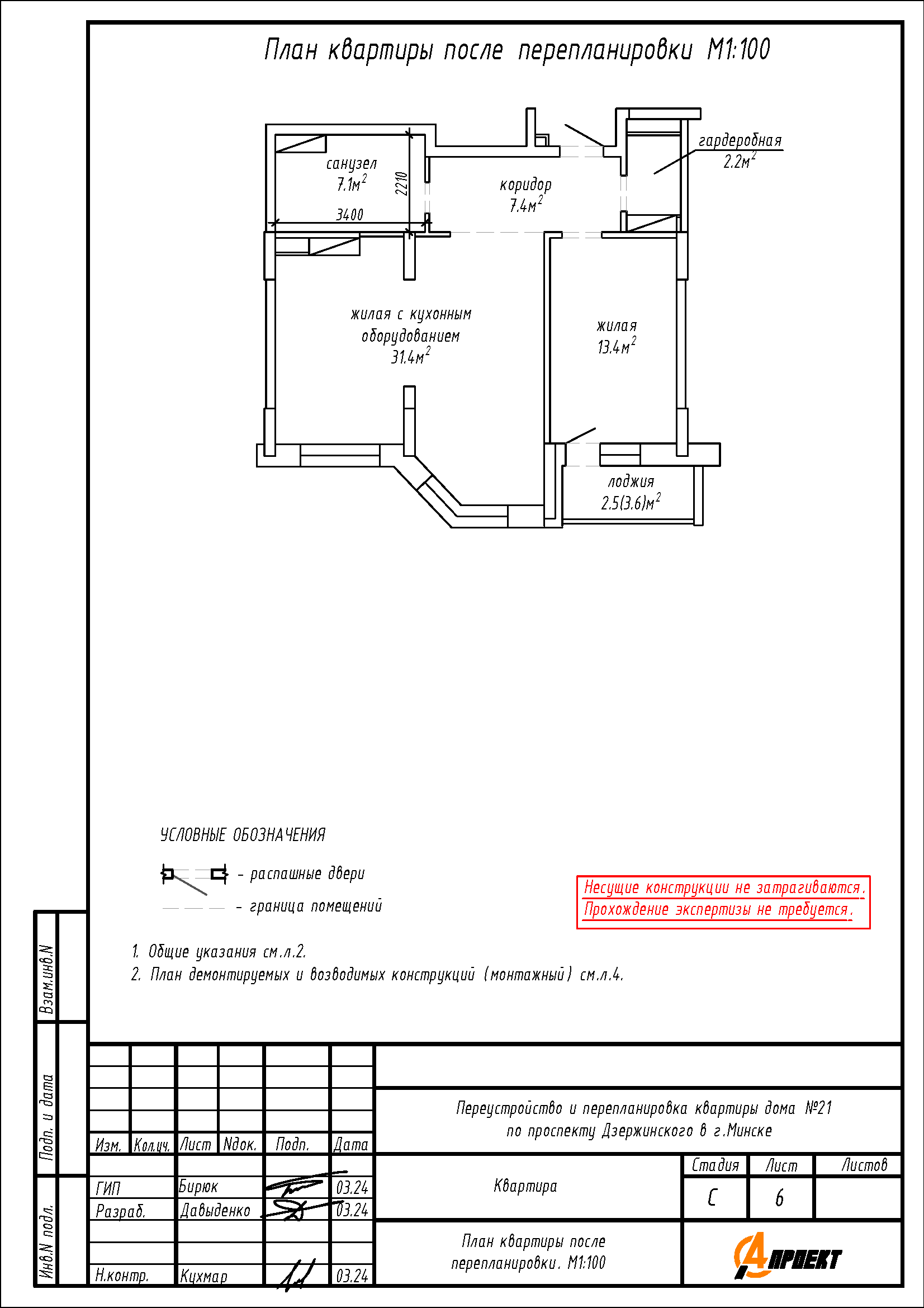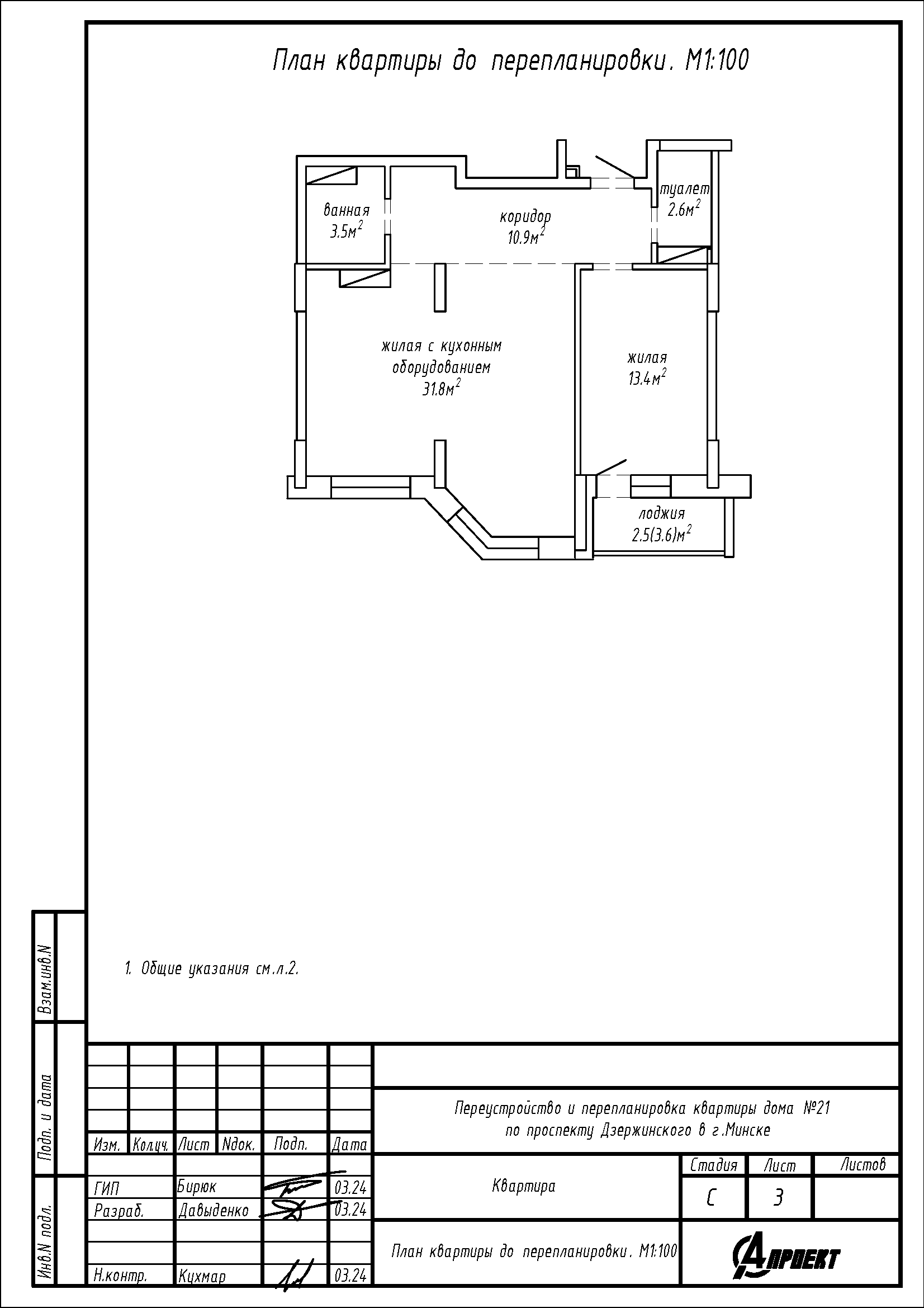 Перепланировка квартиры по пр-ту Дзержинского, 21 в г. Минске