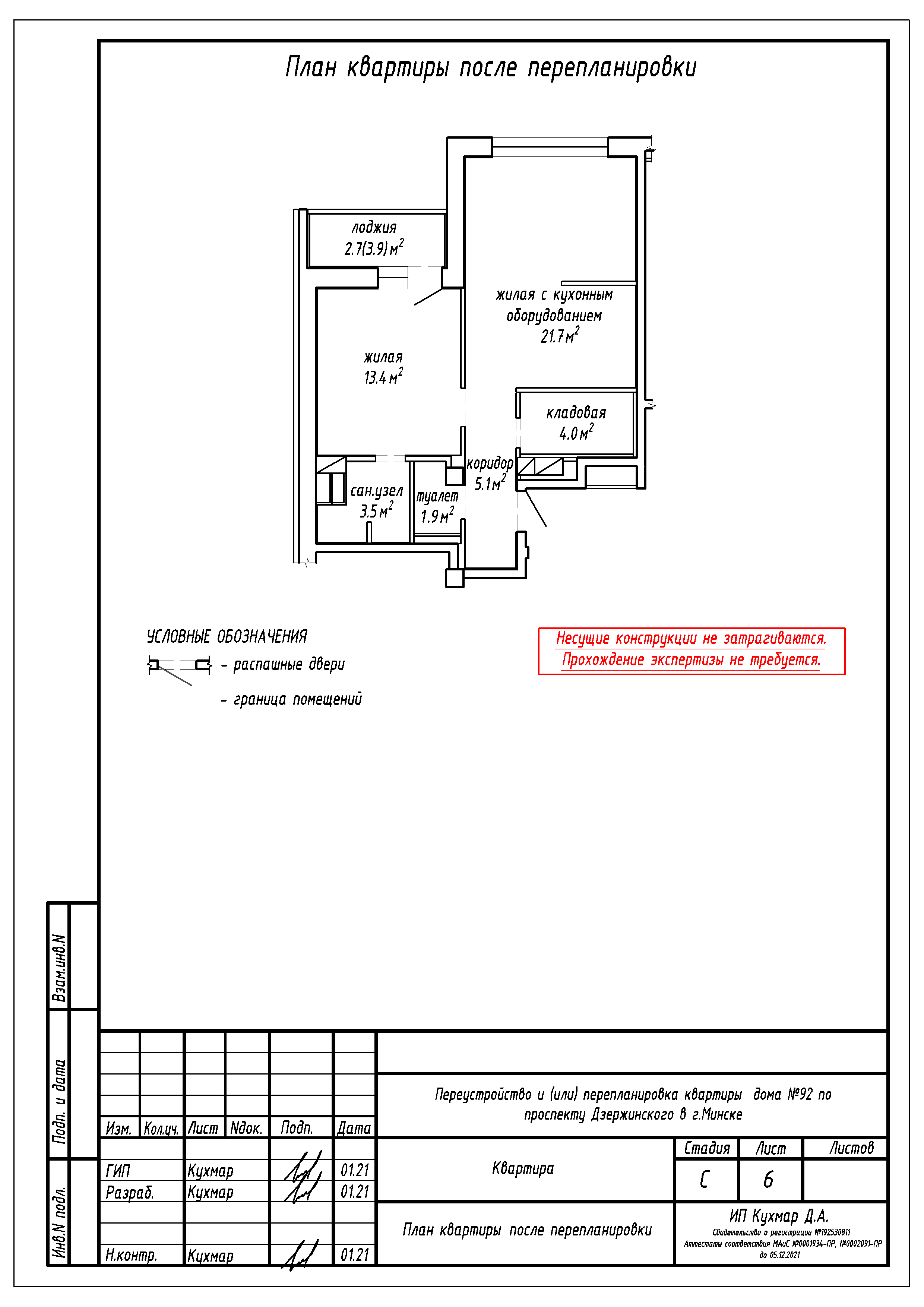 Перепланировка квартиры по пр-ту Дзержинского, 92 в ЖК «Петровщина»
