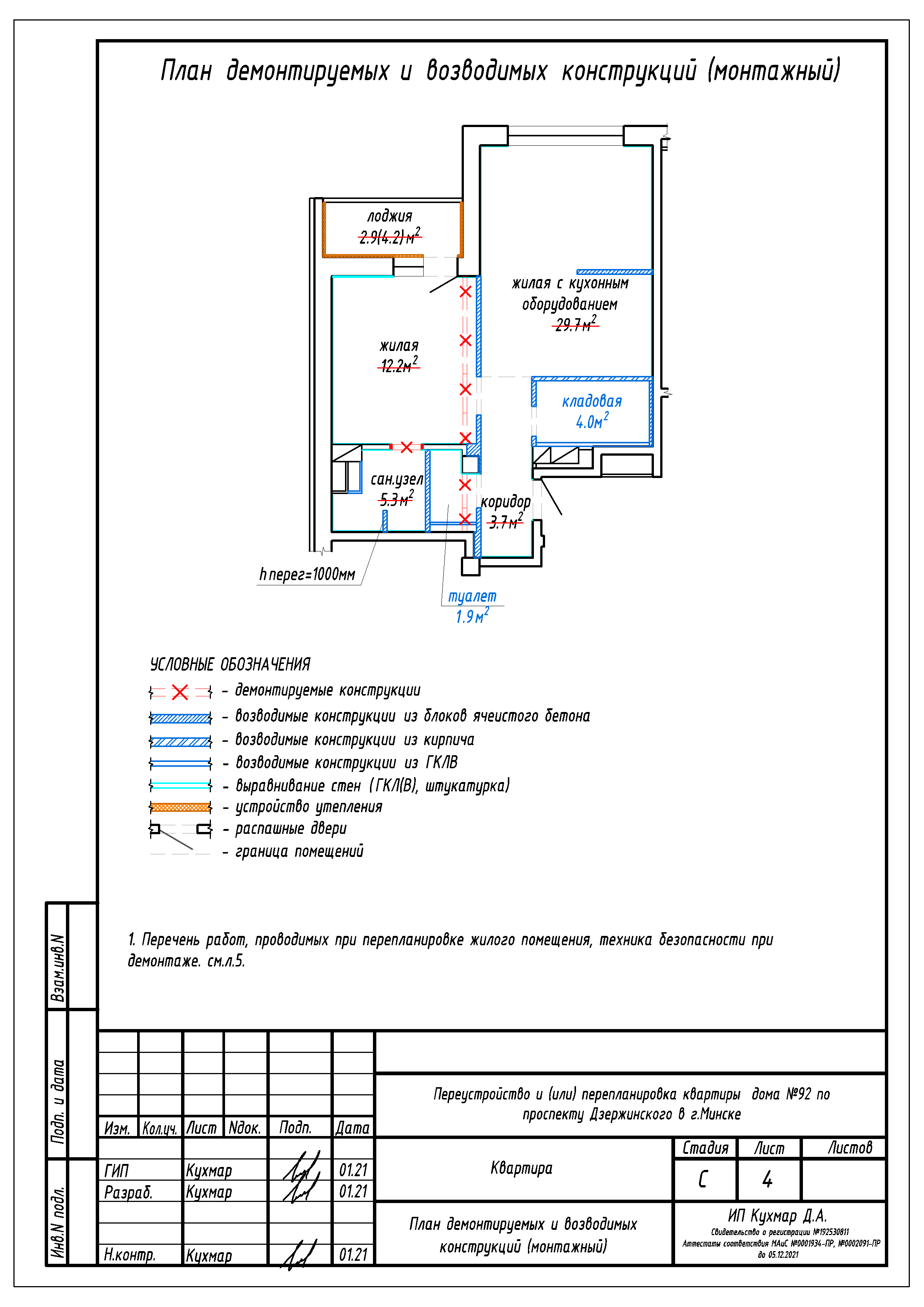 - Устройство кладовой на площади жилой с кухонным оборудованием;