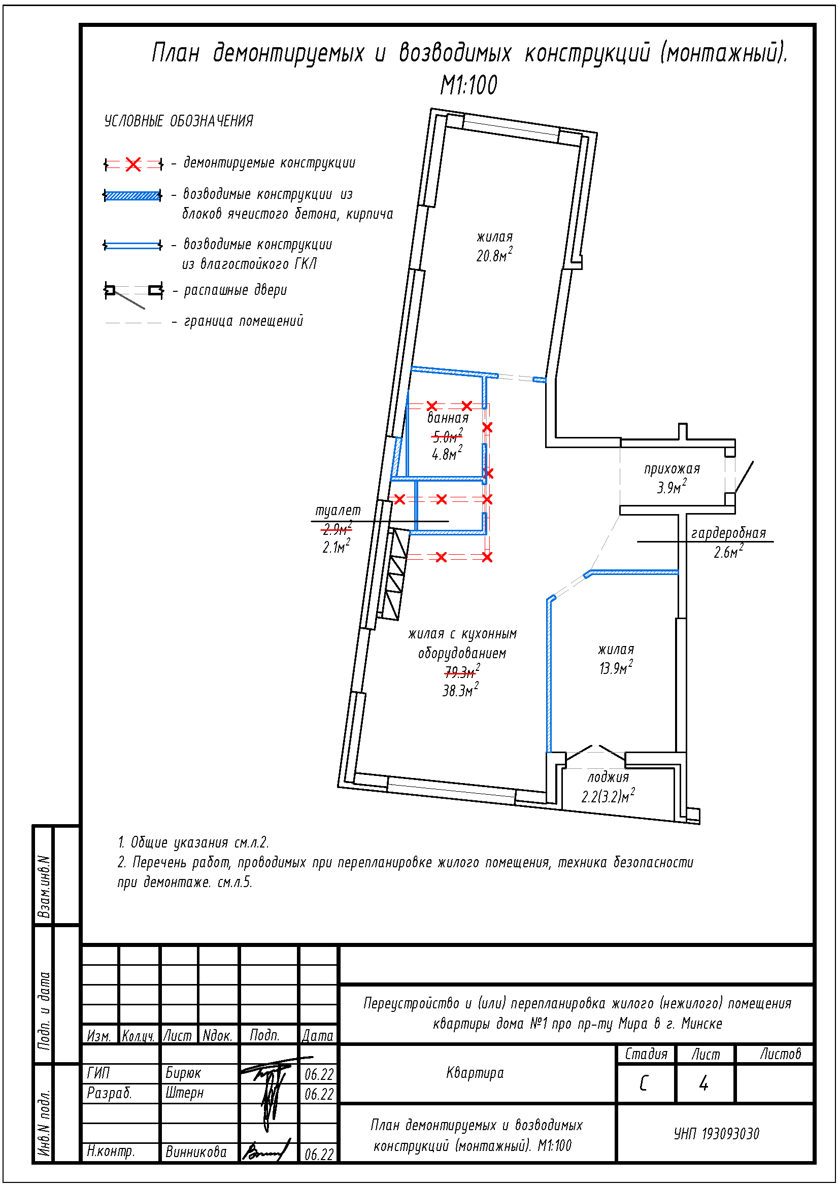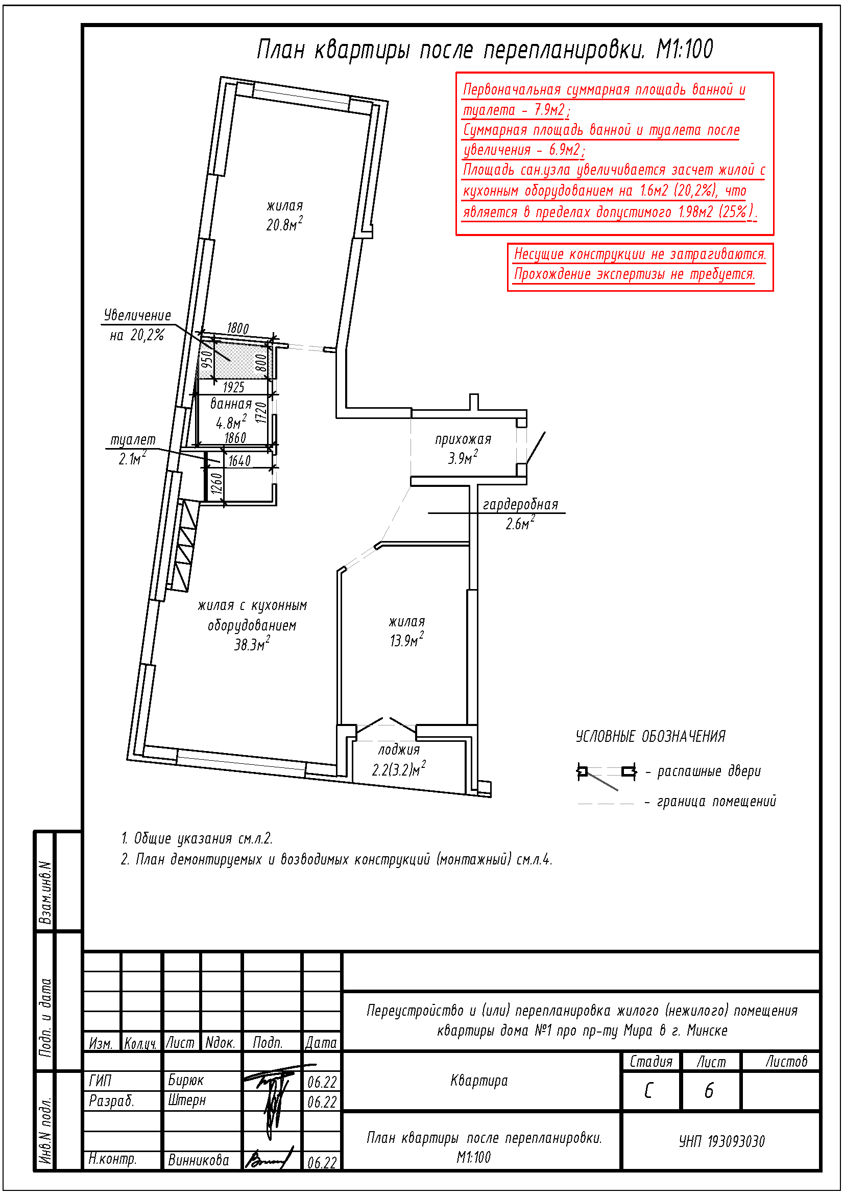 Перепланировка квартиры по проспекту Мира, 1 в ЖК «Минск Мир»