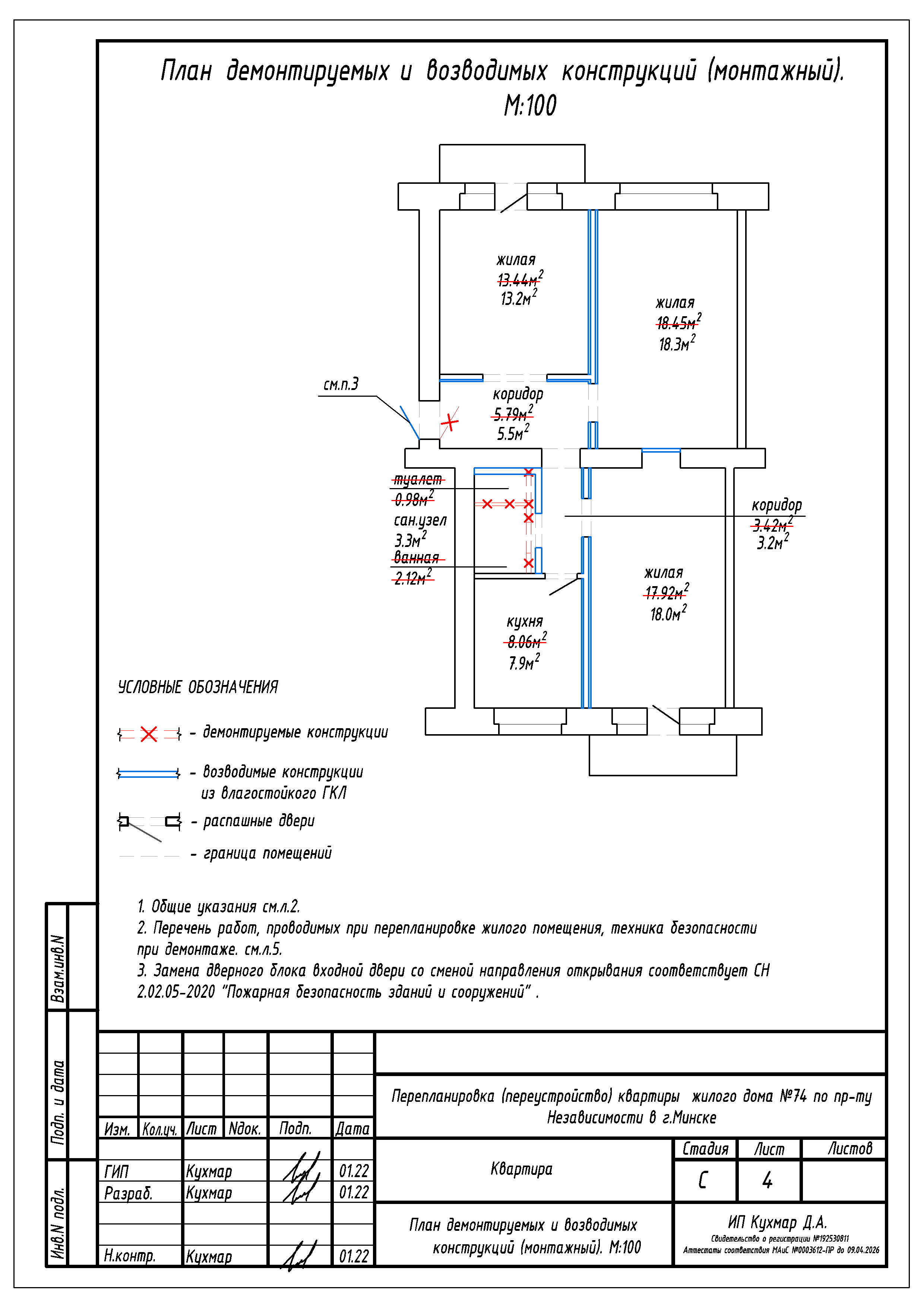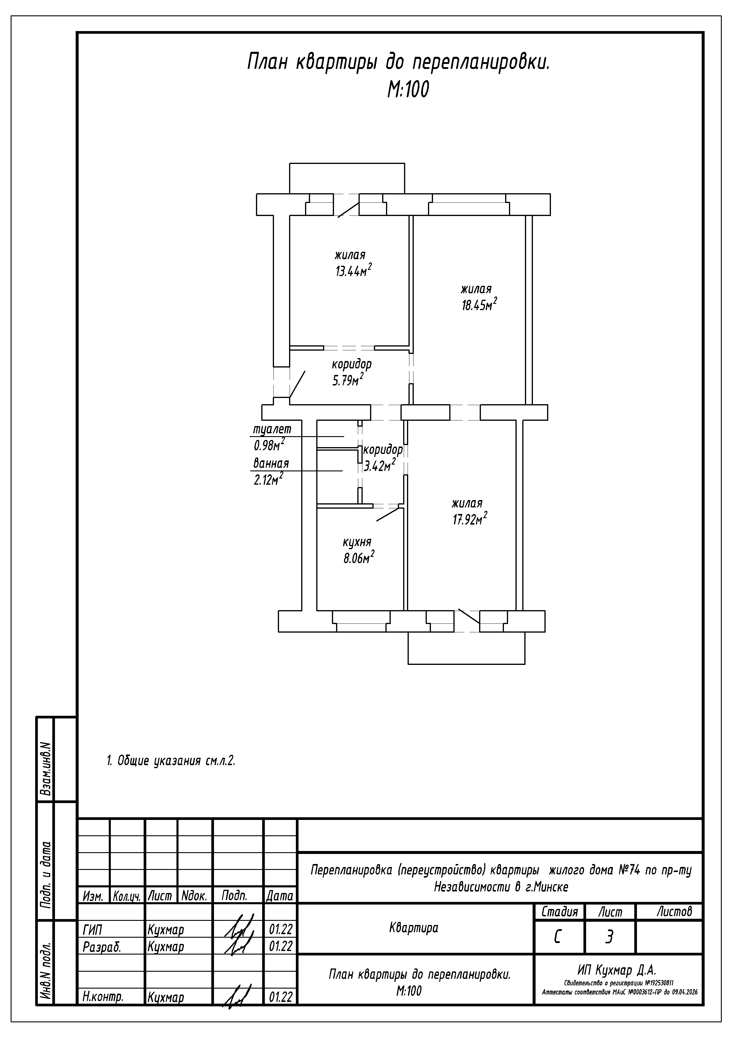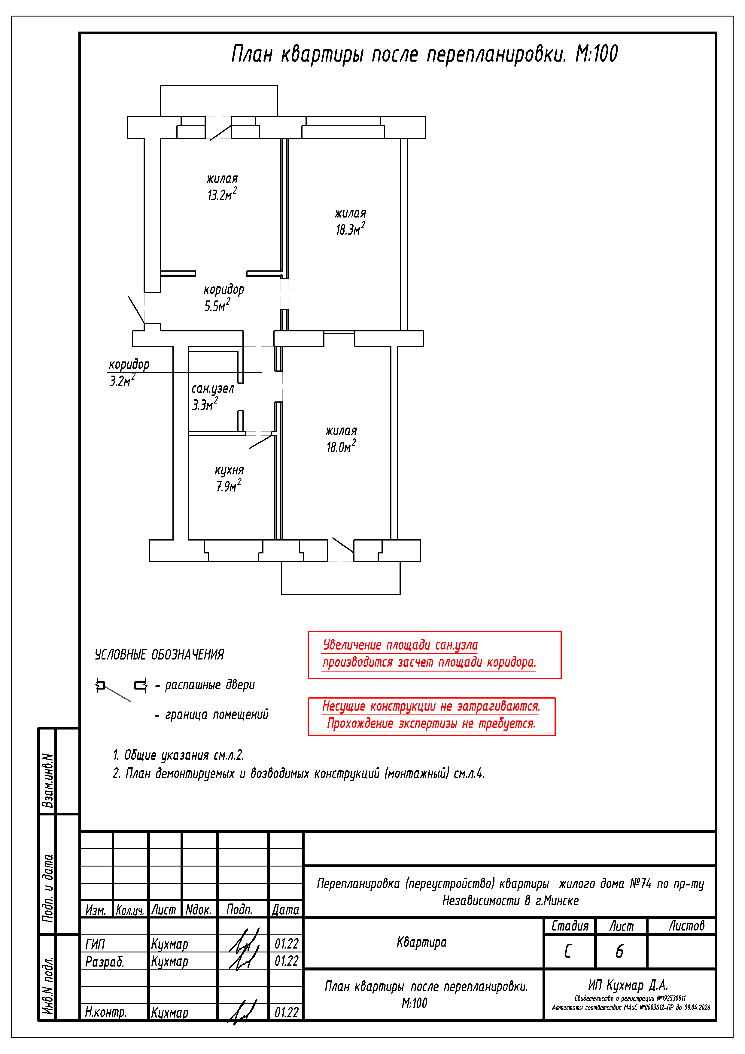 Перепланировка квартиры по пр-ту Независимости, 47 г. Минске