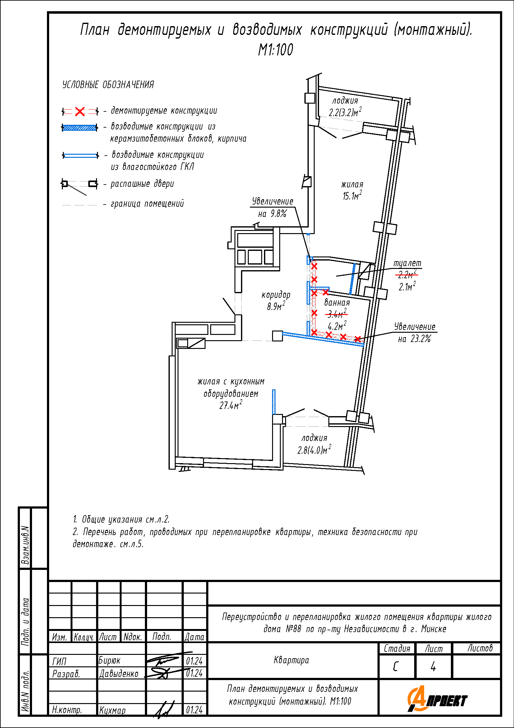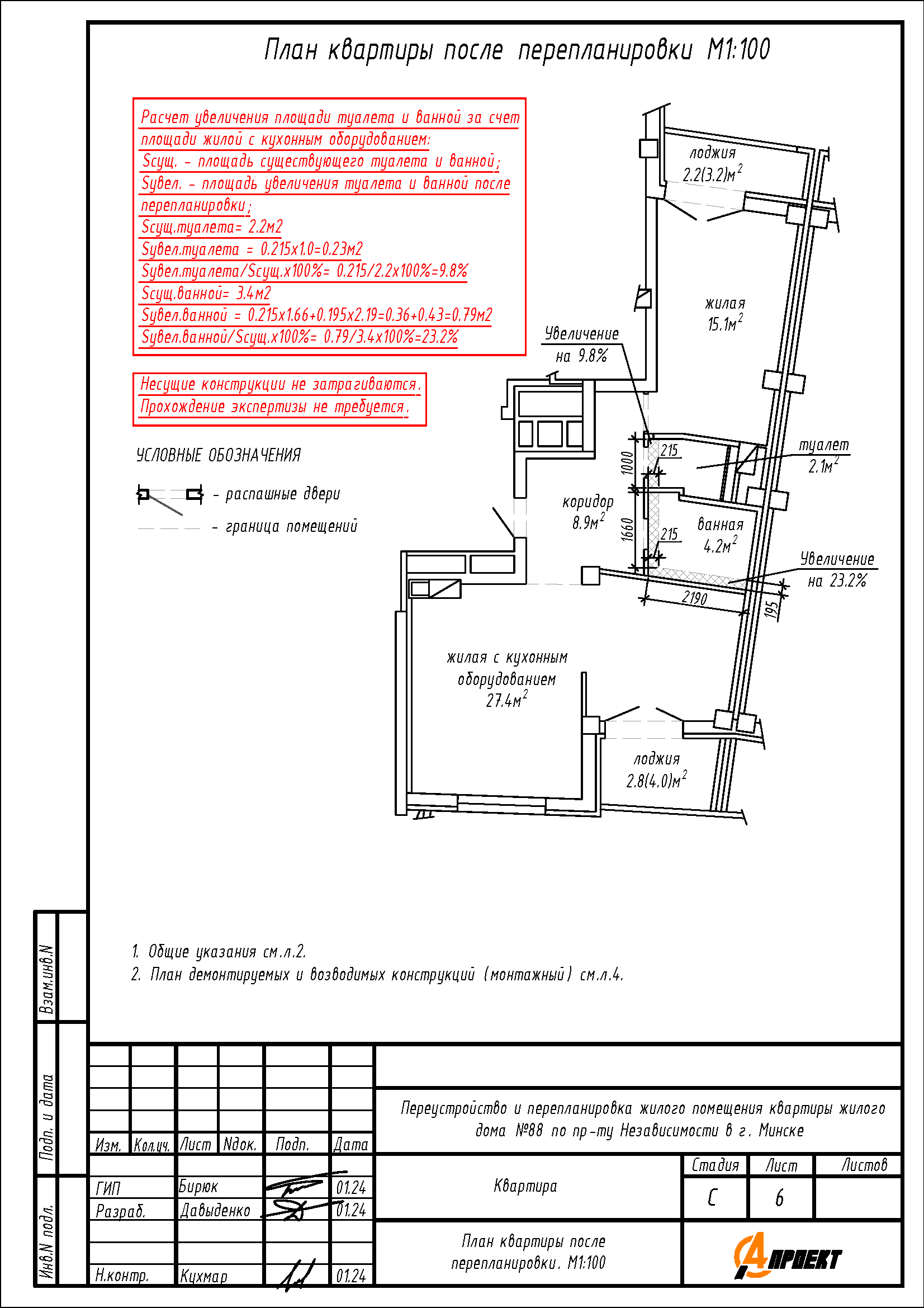 Перепланировка квартиры по пр-ту Независимости, 88 в ЖК «Парк Челюскинцев»
