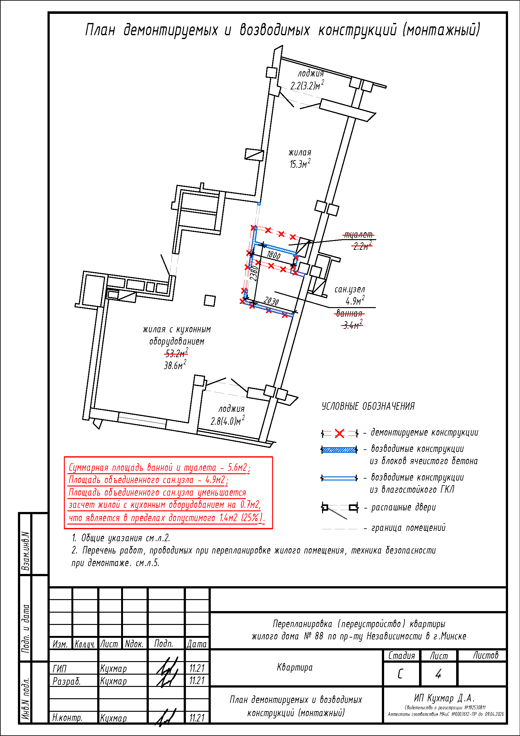 Перепланировка квартиры по пр-ту Независимости, 88 в ЖК «Парк Челюскинцев»