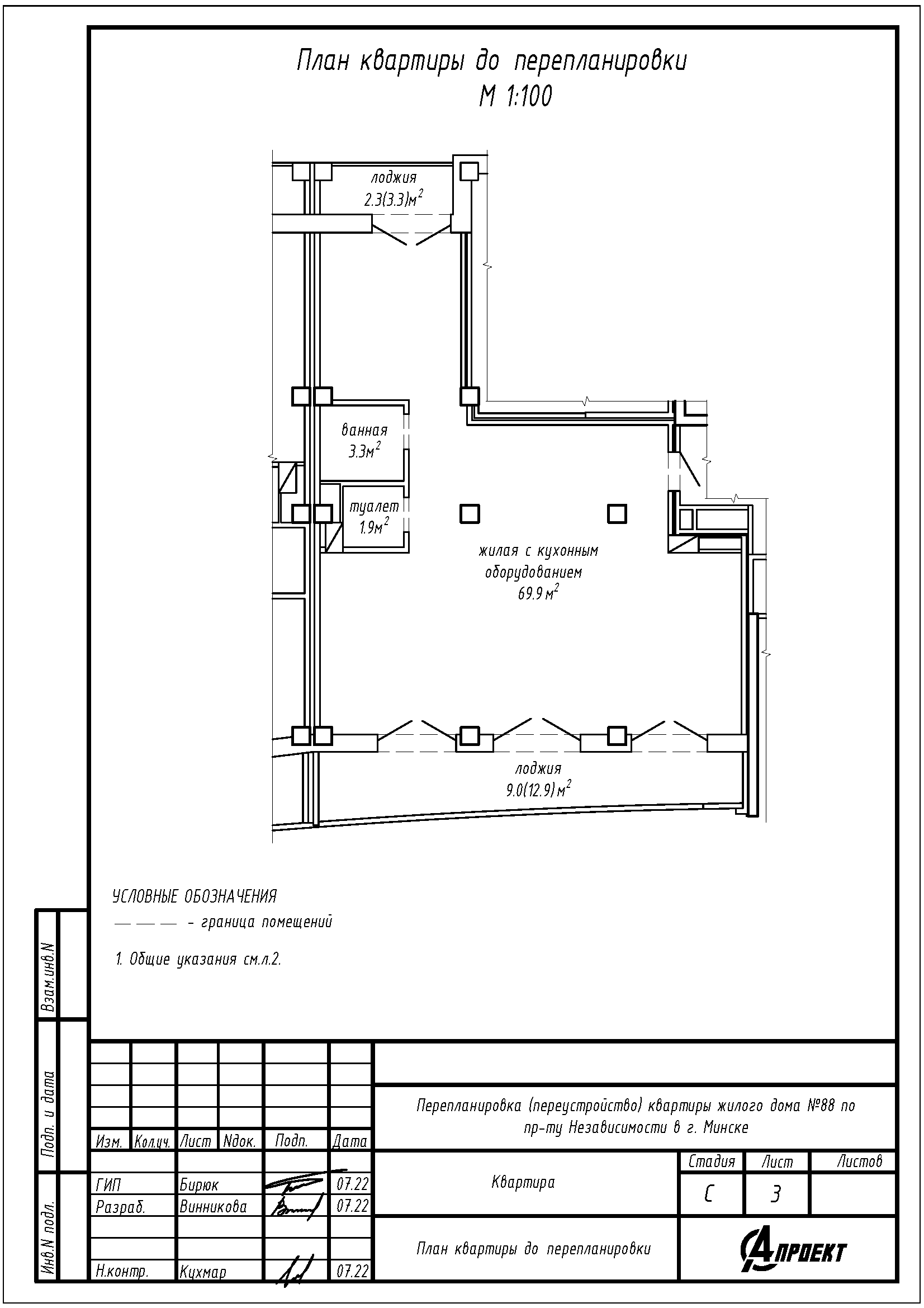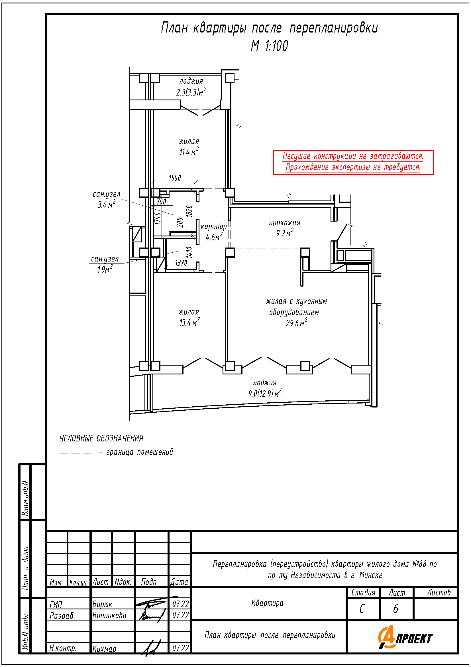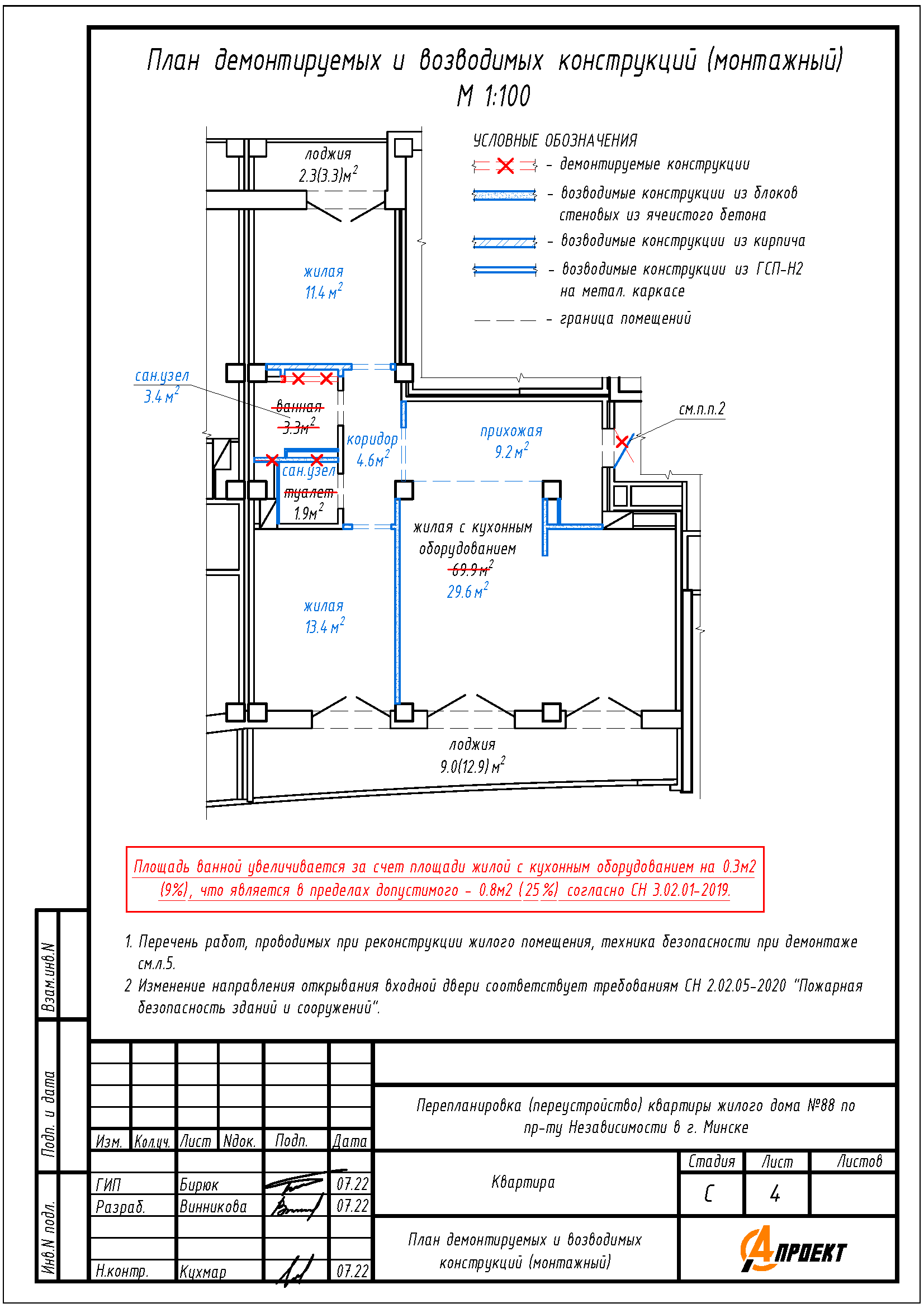 Перепланировка квартиры по пр-ту Независимости, 88 в ЖК «Парк Челюскинцев»