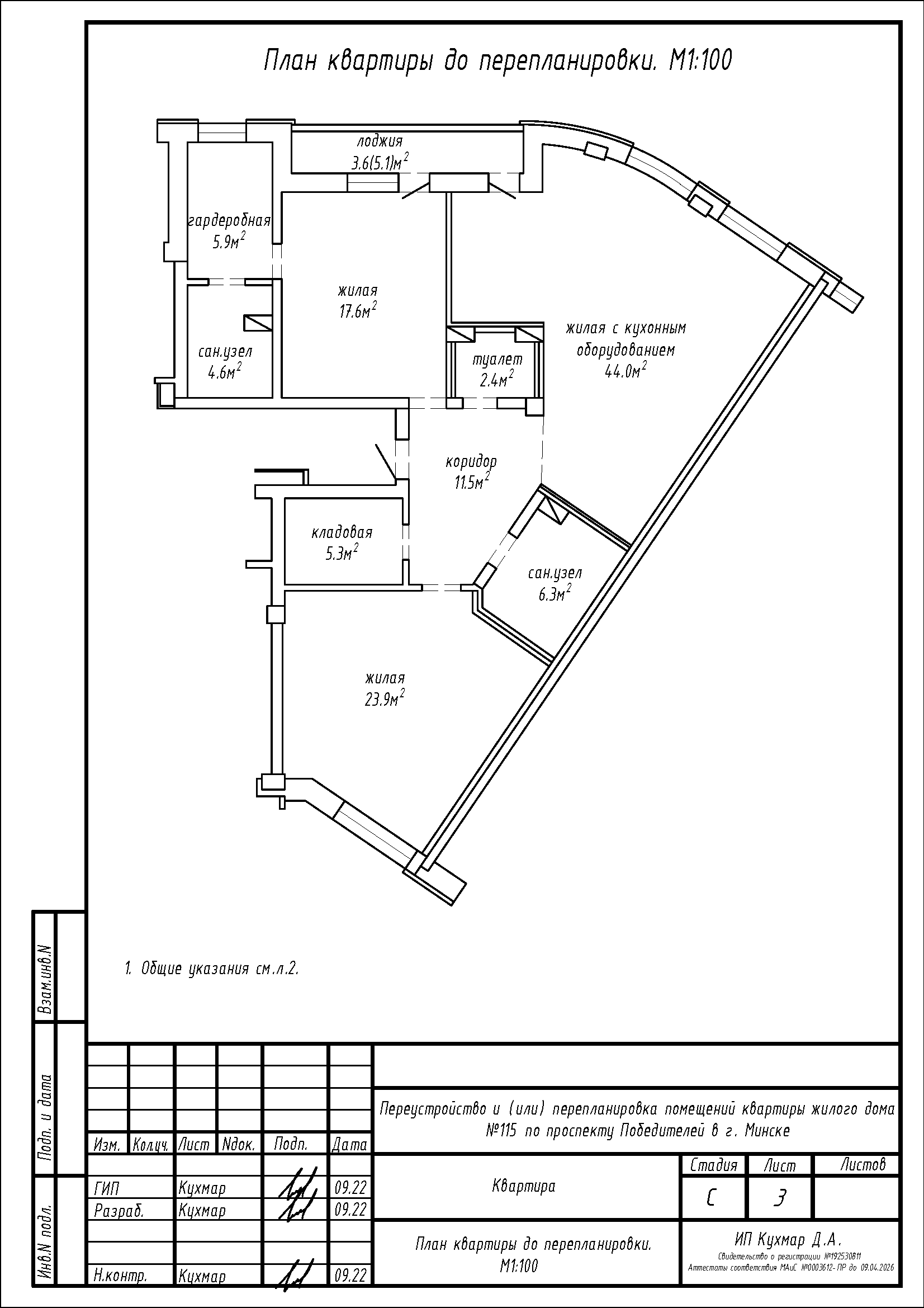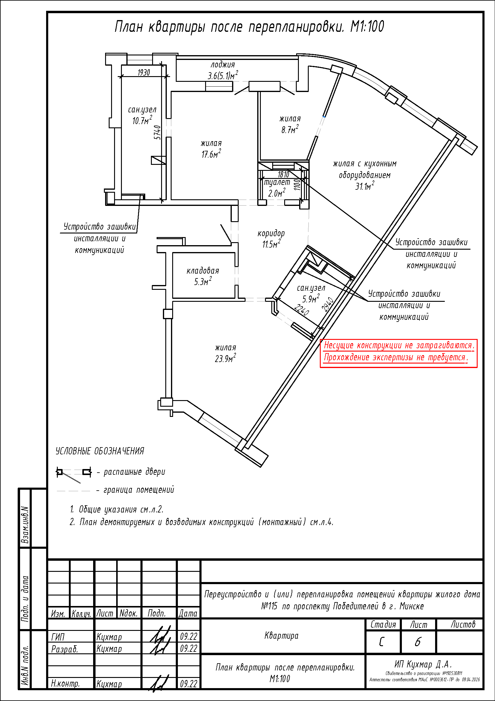 Перепланировка квартиры по пр-ту Победителей, 115 в ЖК «Лазурит»