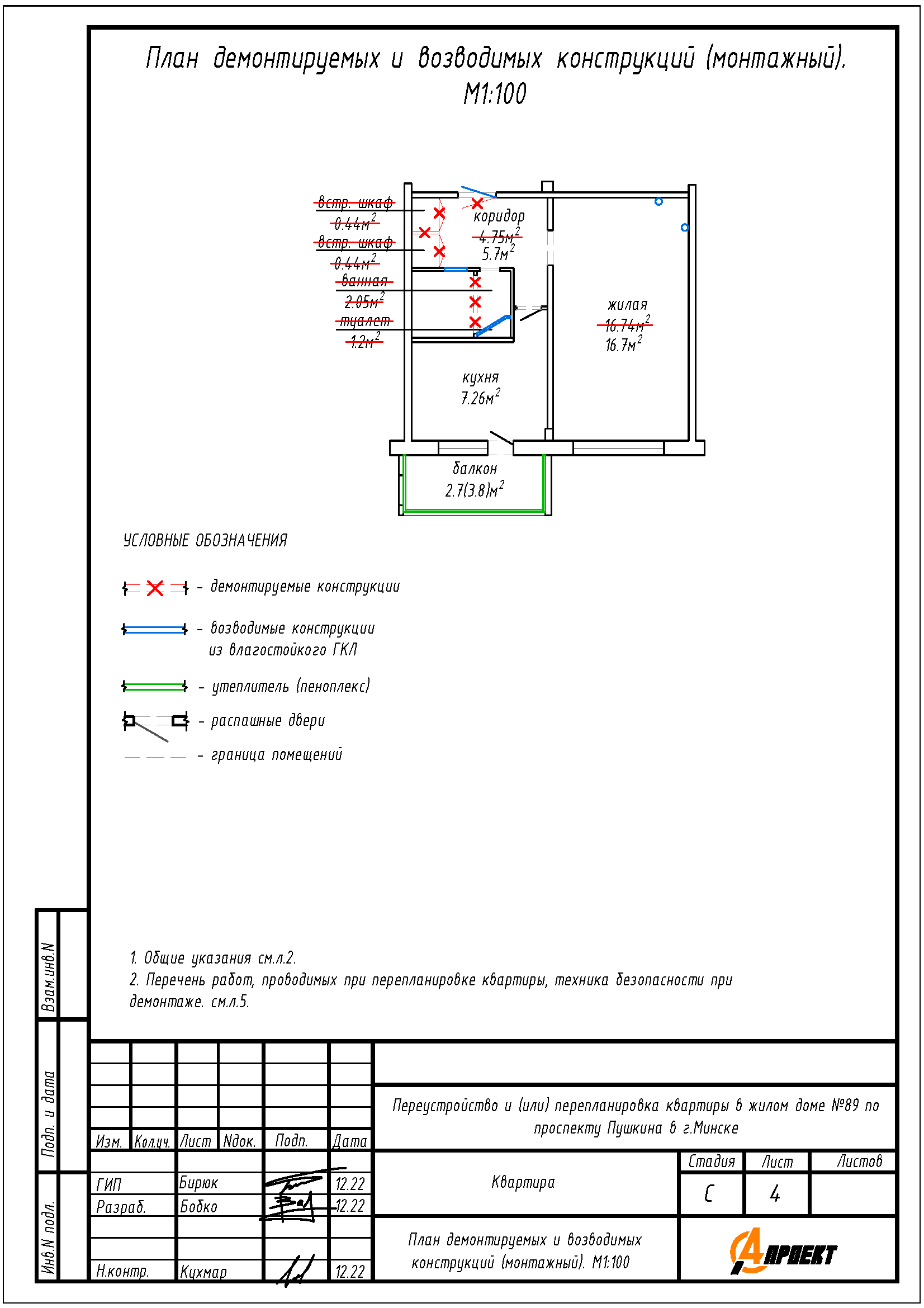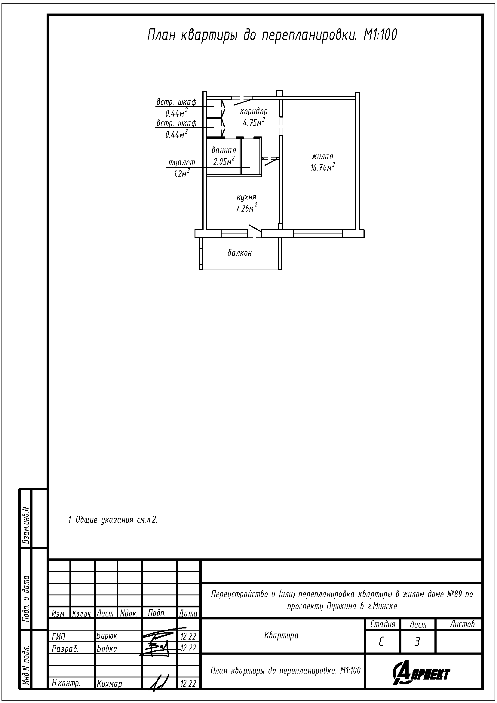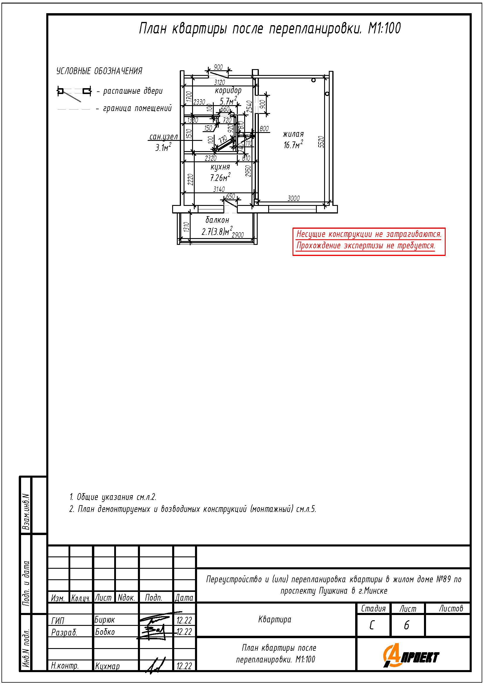 Перепланировка квартиры по пр-ту Пушкина, 89 в г.Минске