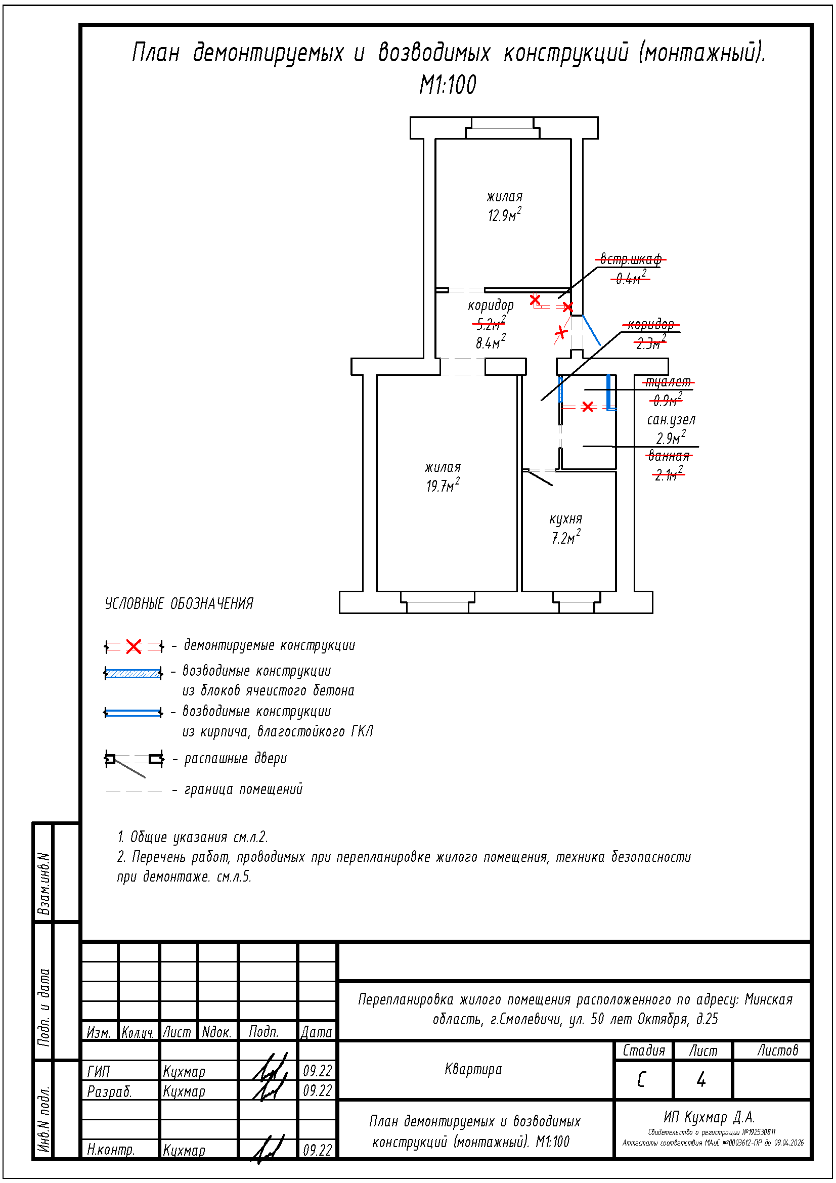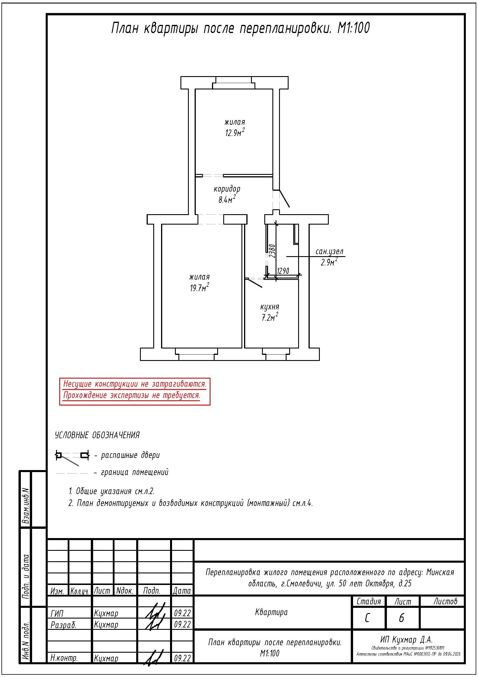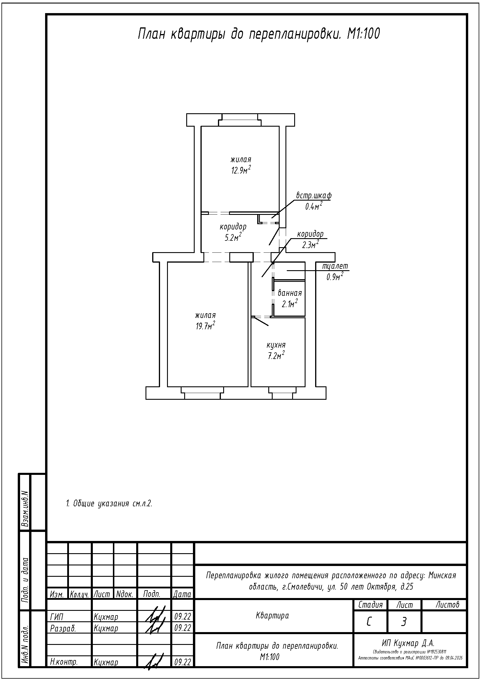 Перепланировка квартиры по ул. 50 лет Октября, 25 в г.Смолевичи