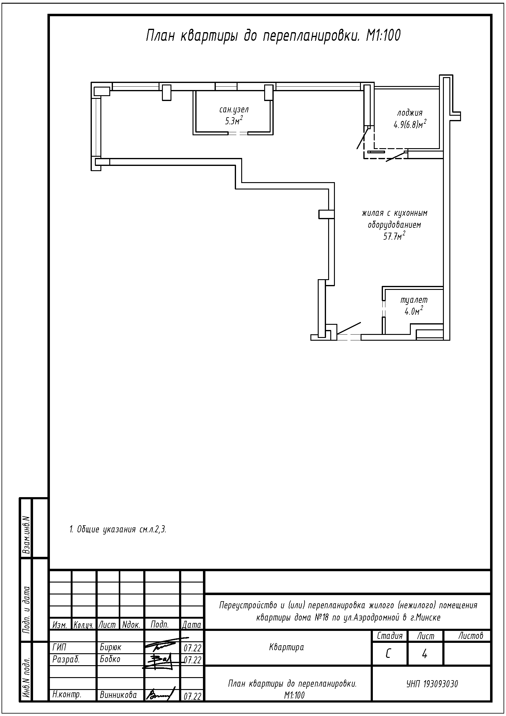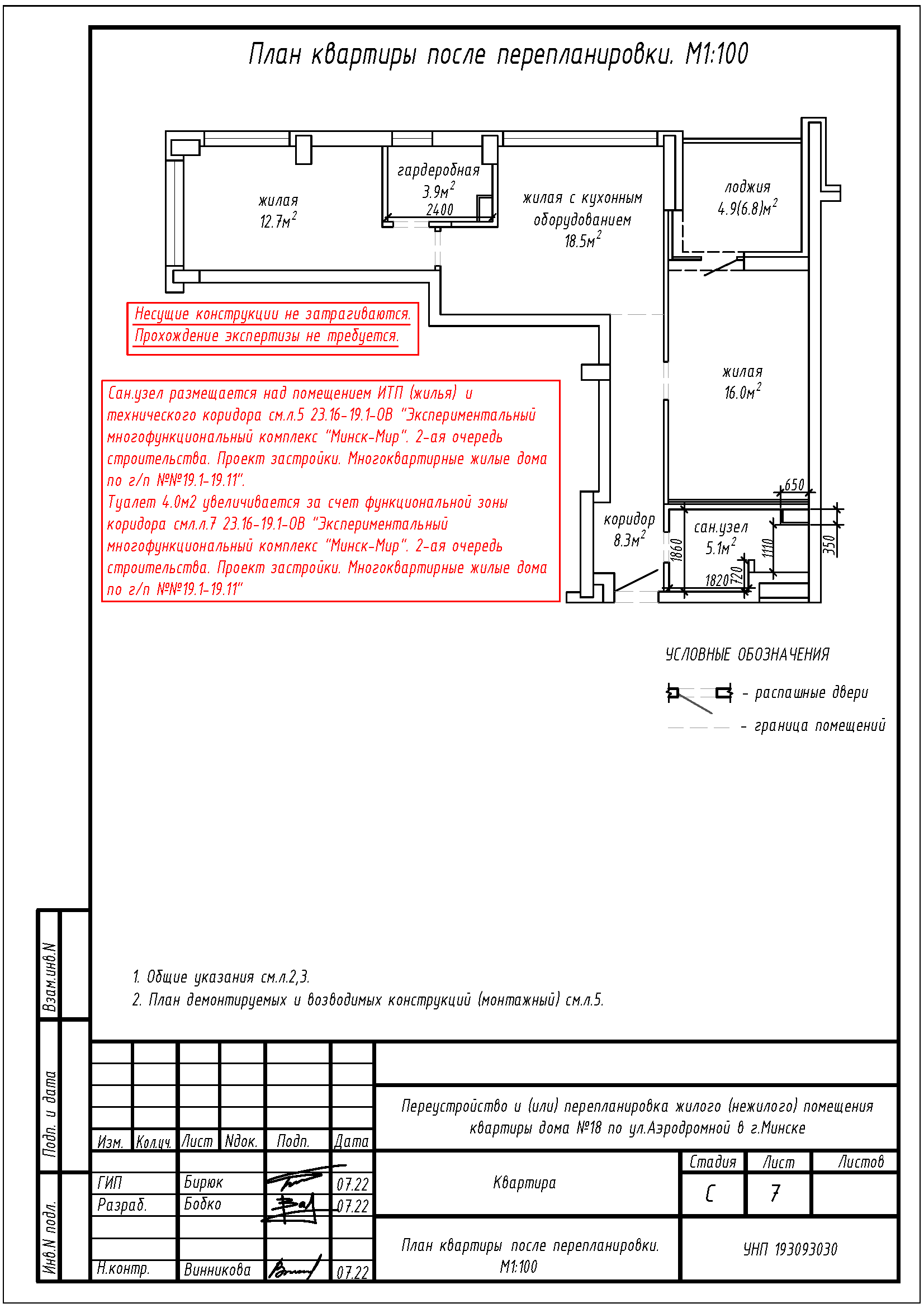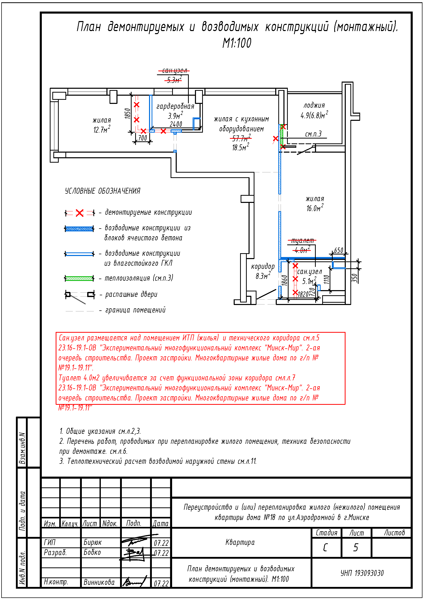 Перепланировка квартиры по ул. Аэродромная, 18 в ЖК «Минск Мир»