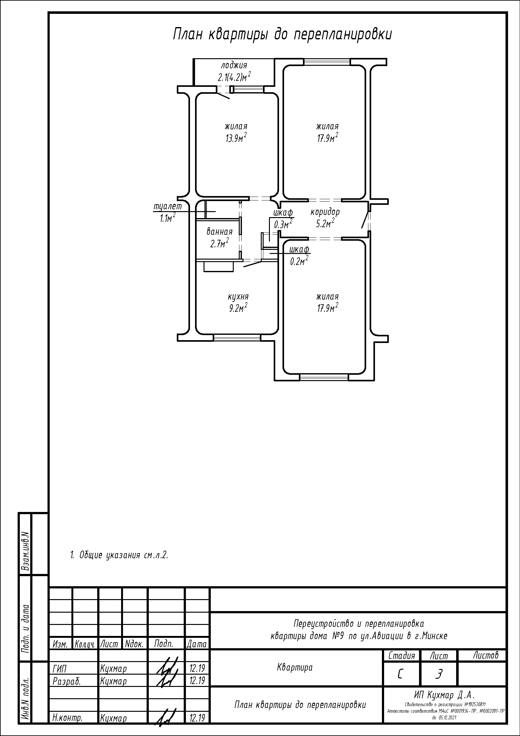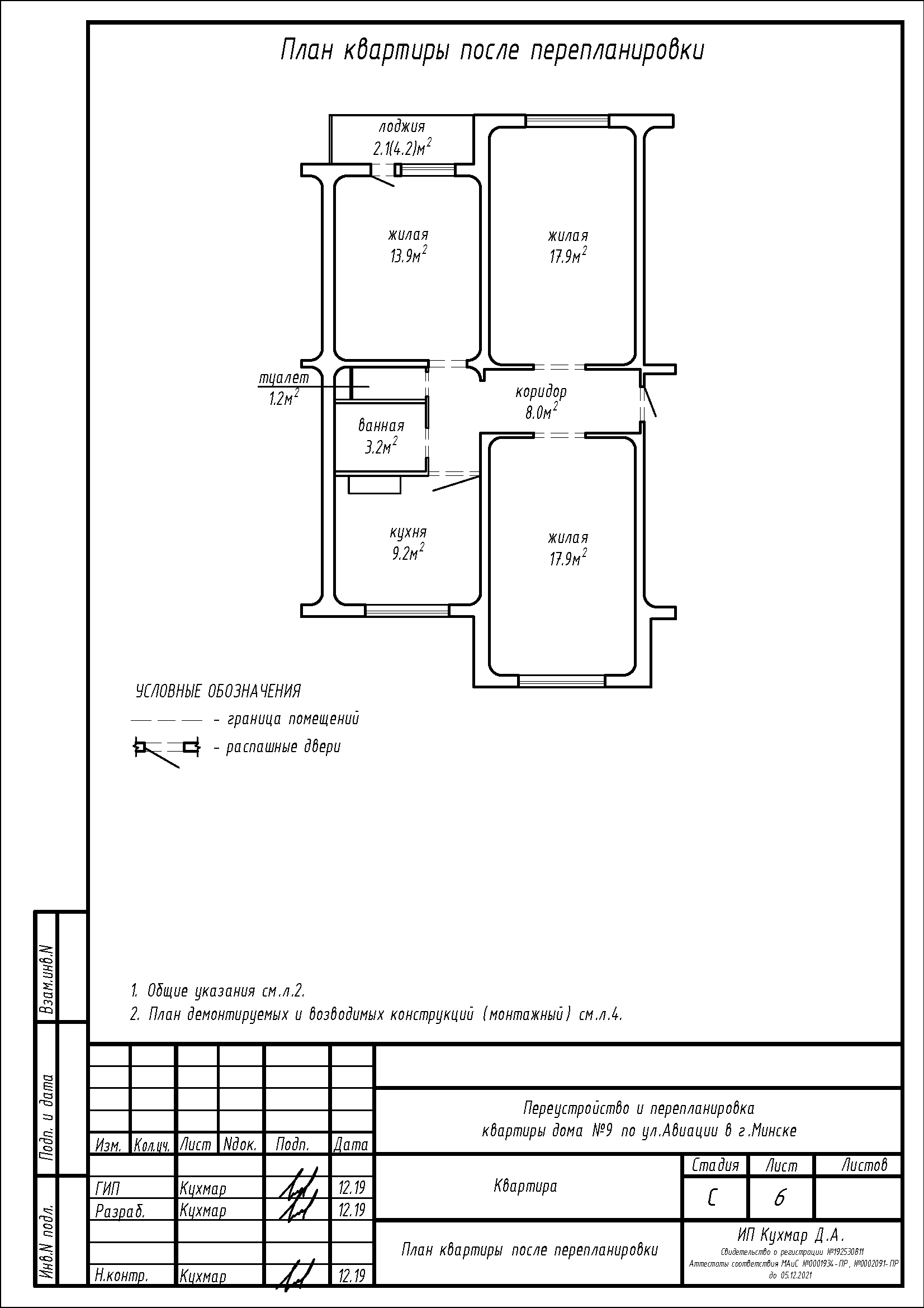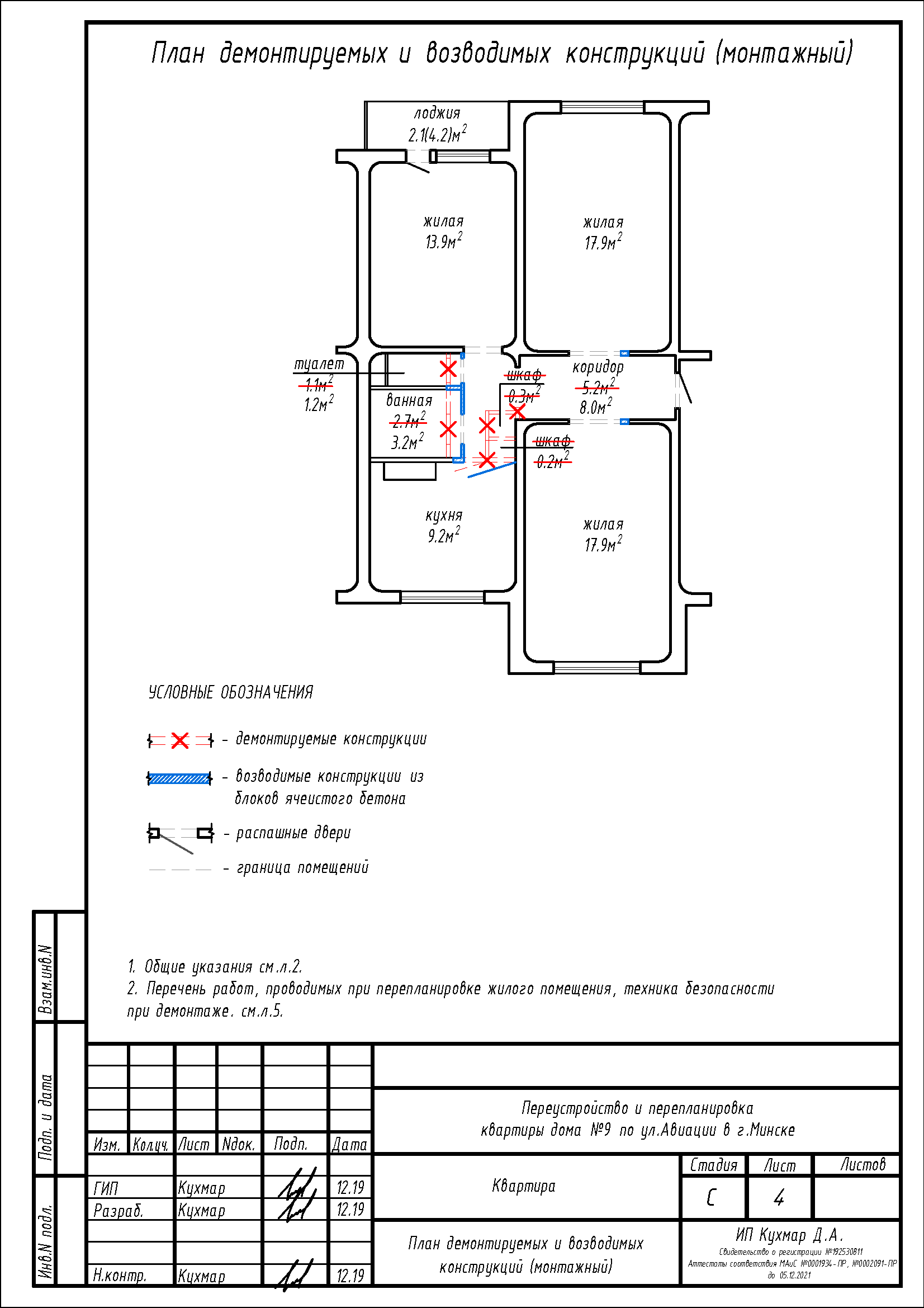 Перепланировка квартиры по ул. Авиации в р-не Сокол, в г. Минске