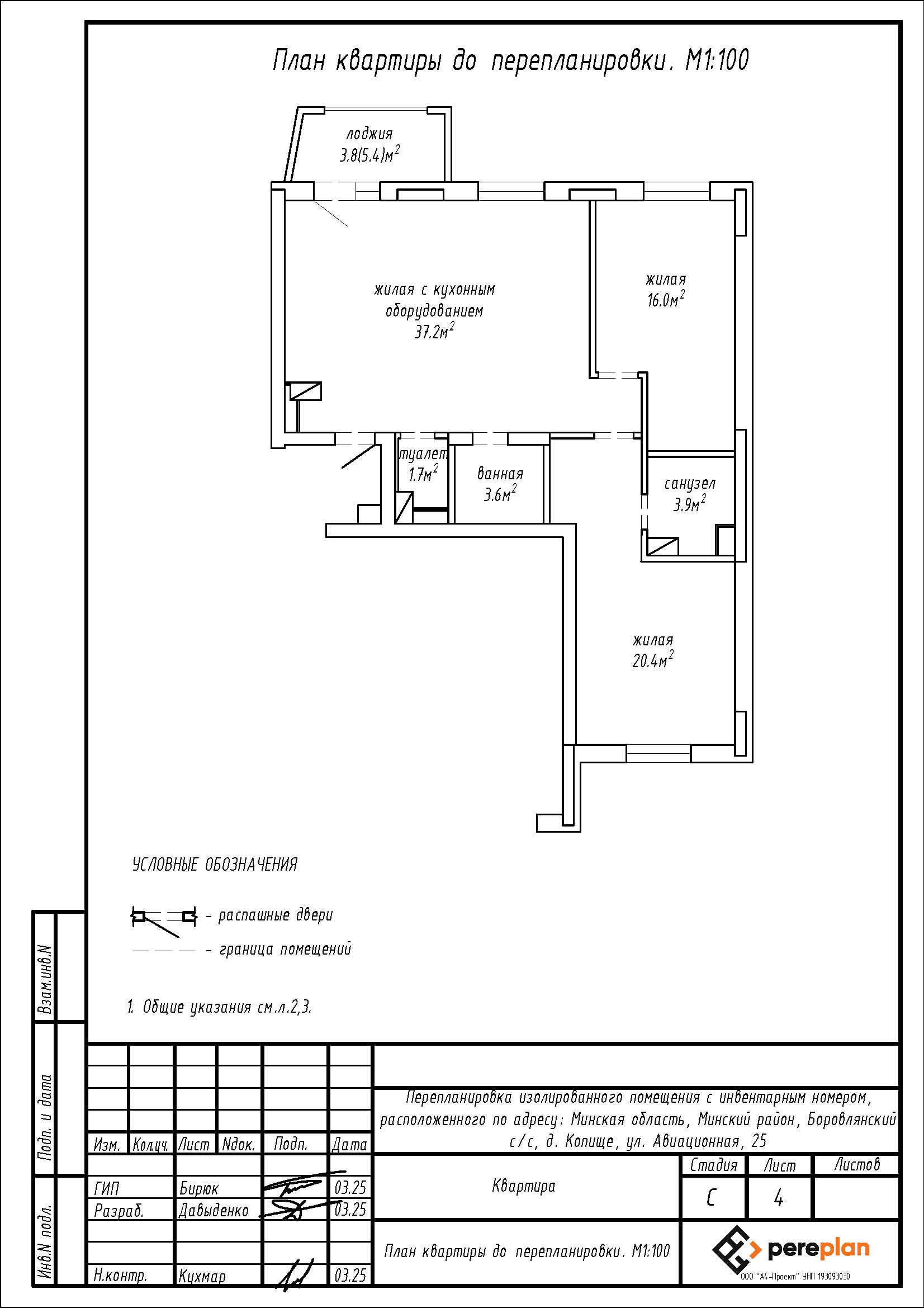 Перепланировка квартиры по ул. Авиационная, 25 в ЖК «Новая Боровая» в д. Копище