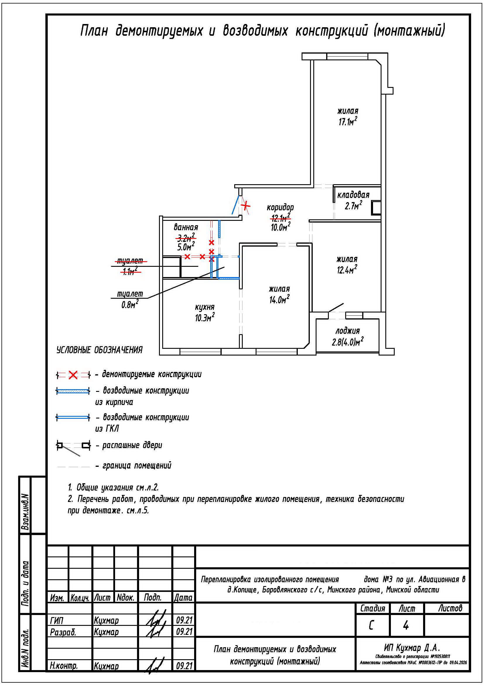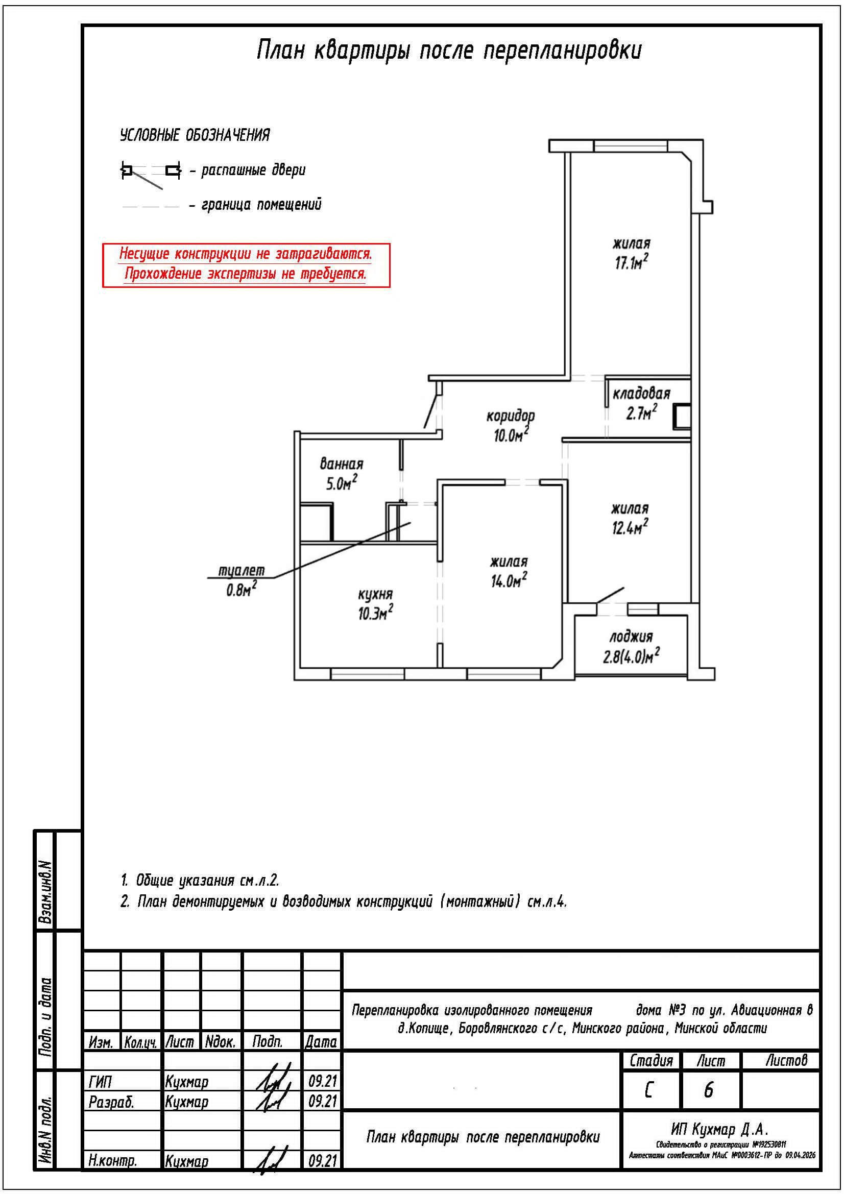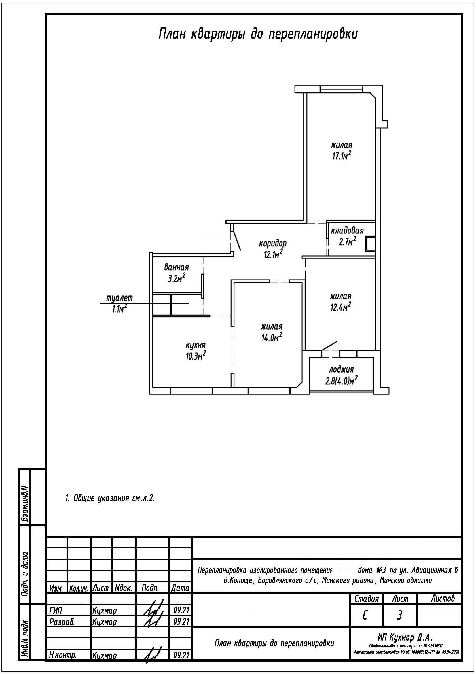 Перепланировка квартиры по ул. Авиационная, 3 в ЖК «Новая Боровая»