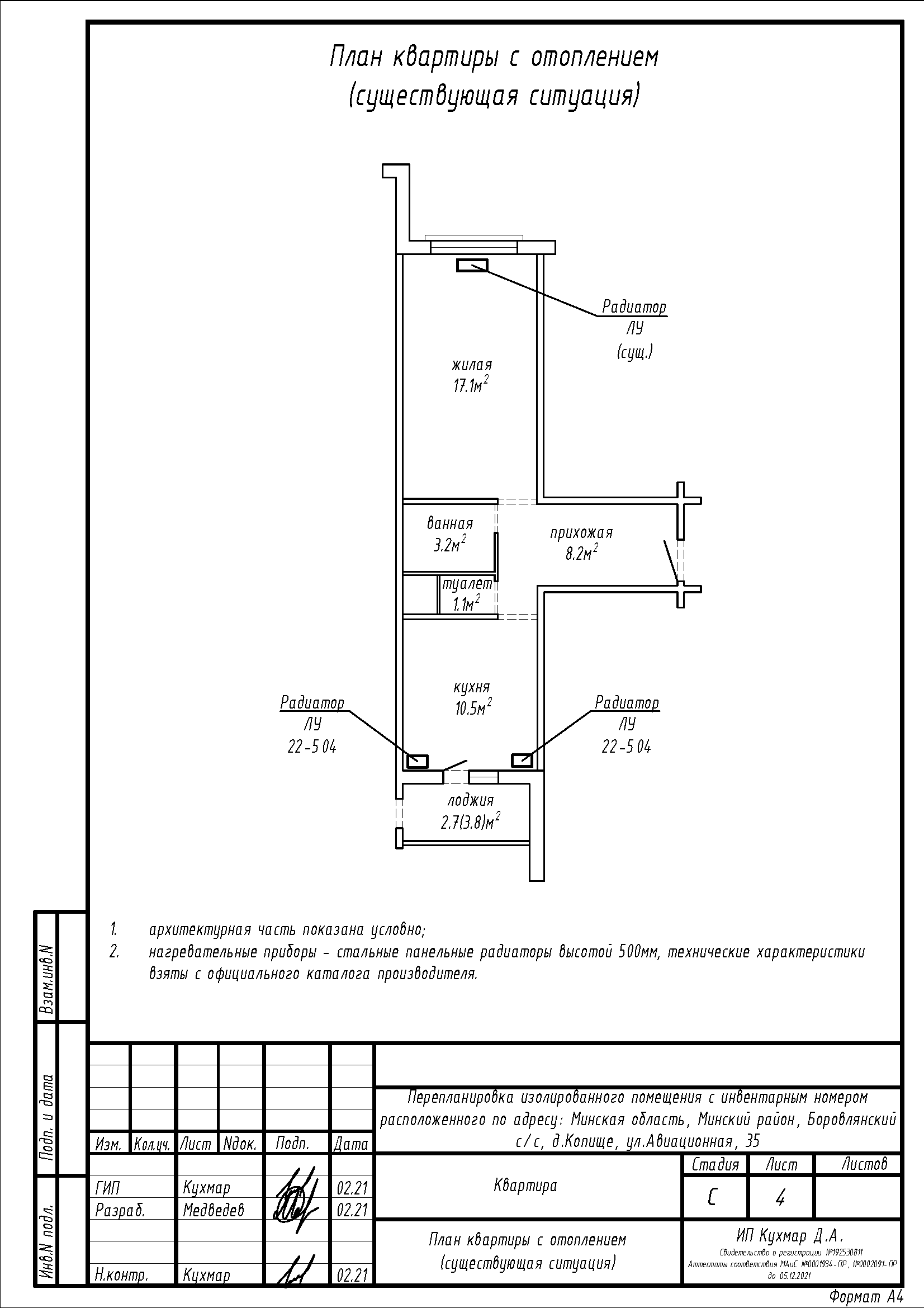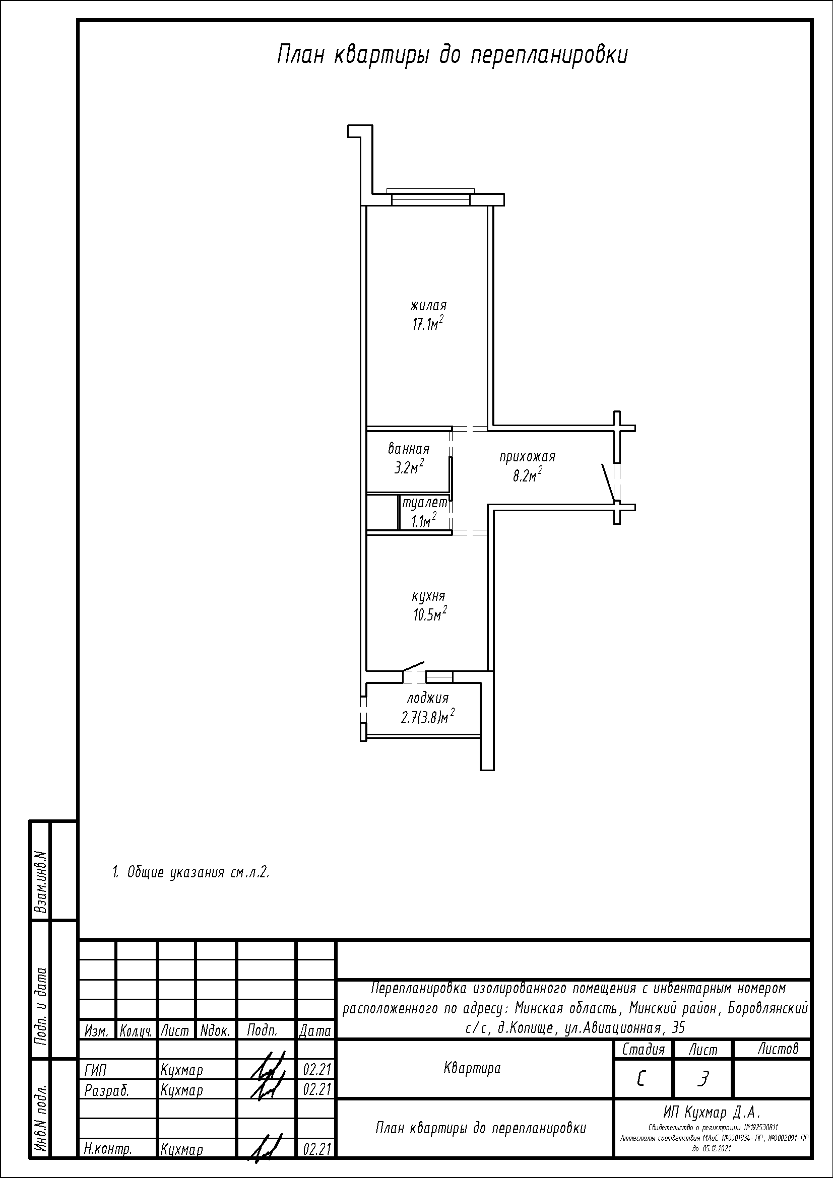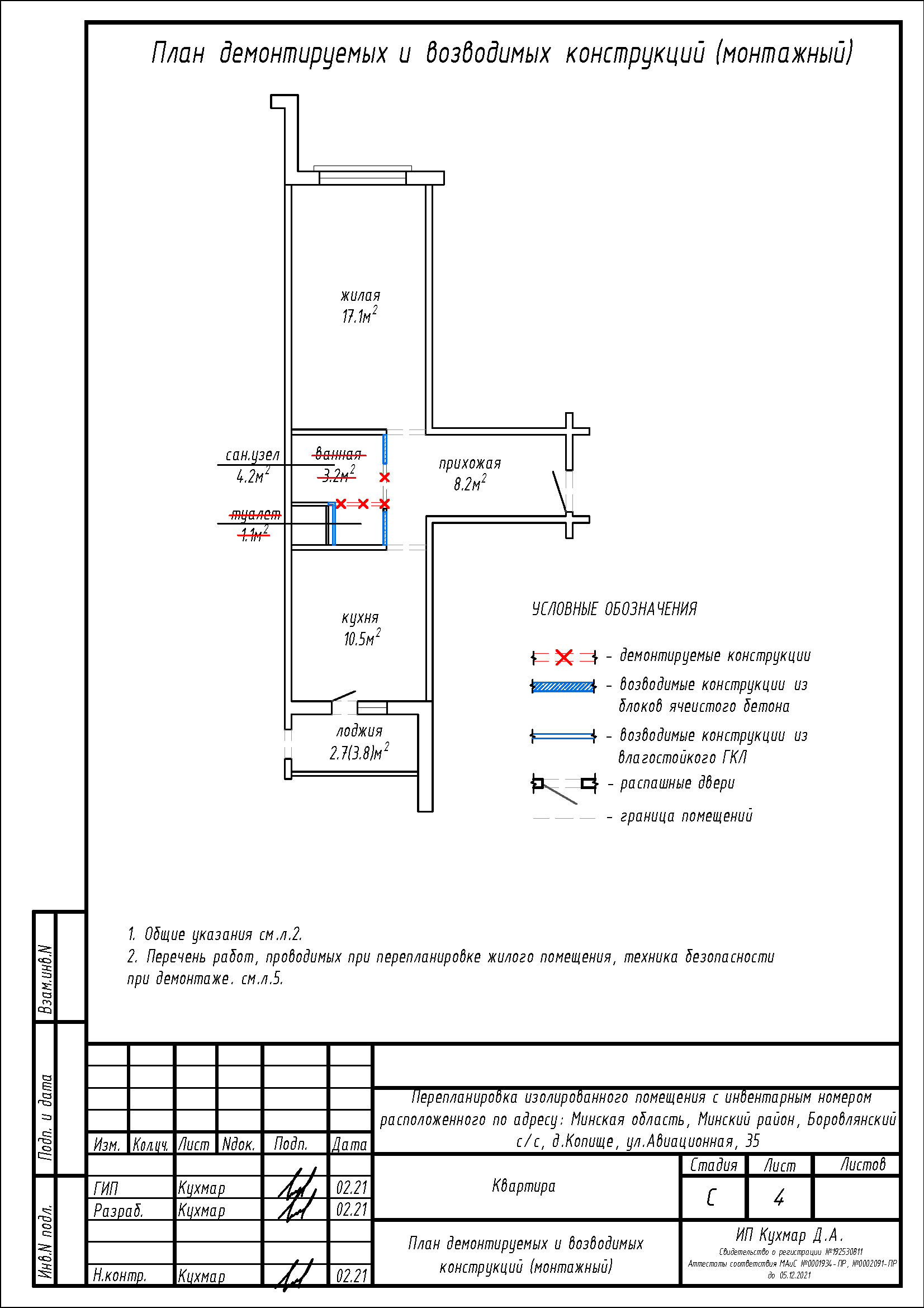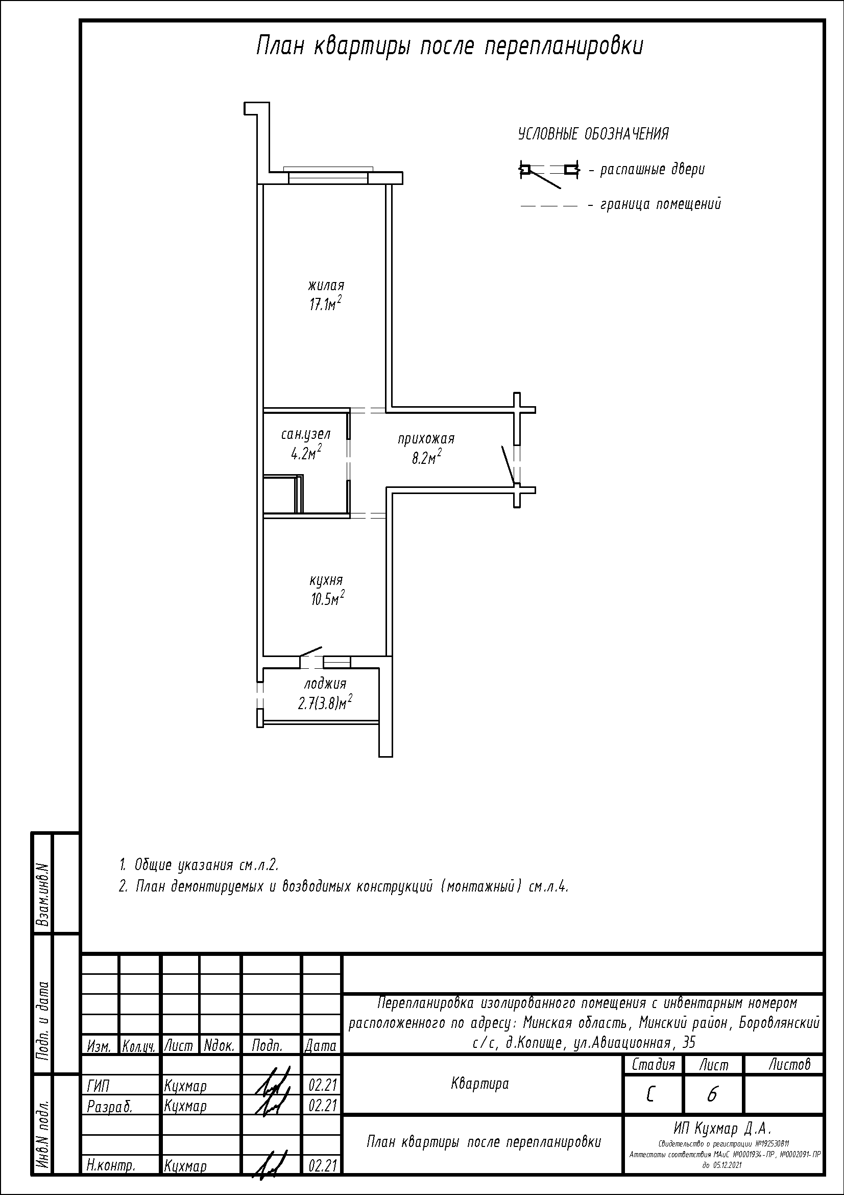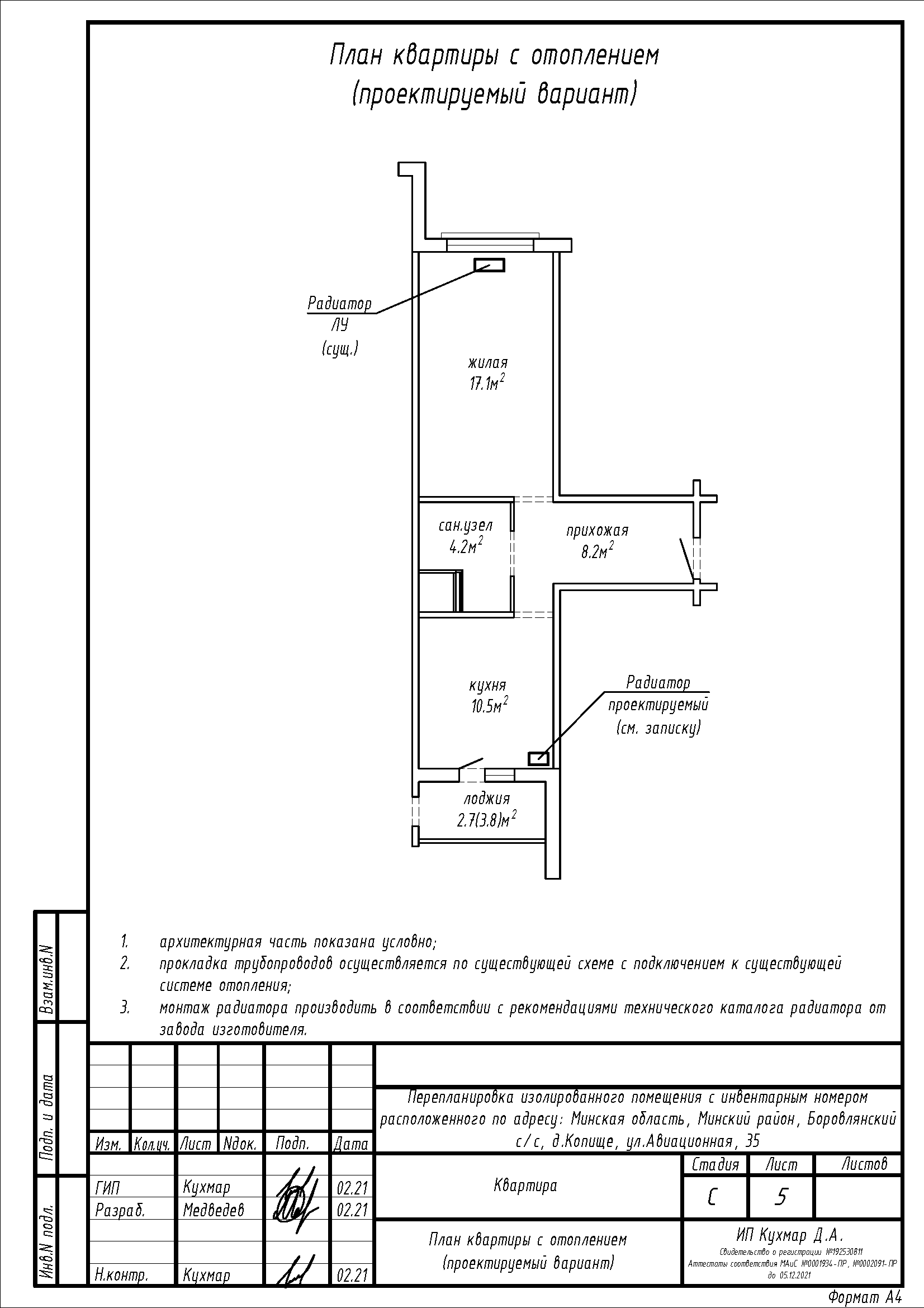Перепланировка квартиры по ул. Авиационная, 35 в ЖК «Новая Боровая»