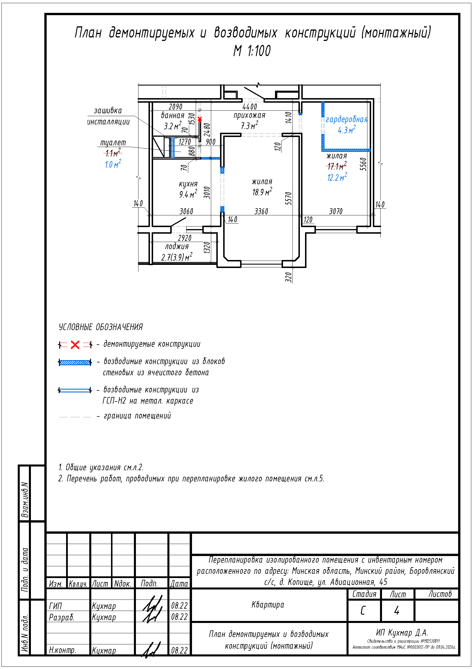 Перепланировка квартиры по ул. Авиационная, 45 в ЖК «Новая Боровая»