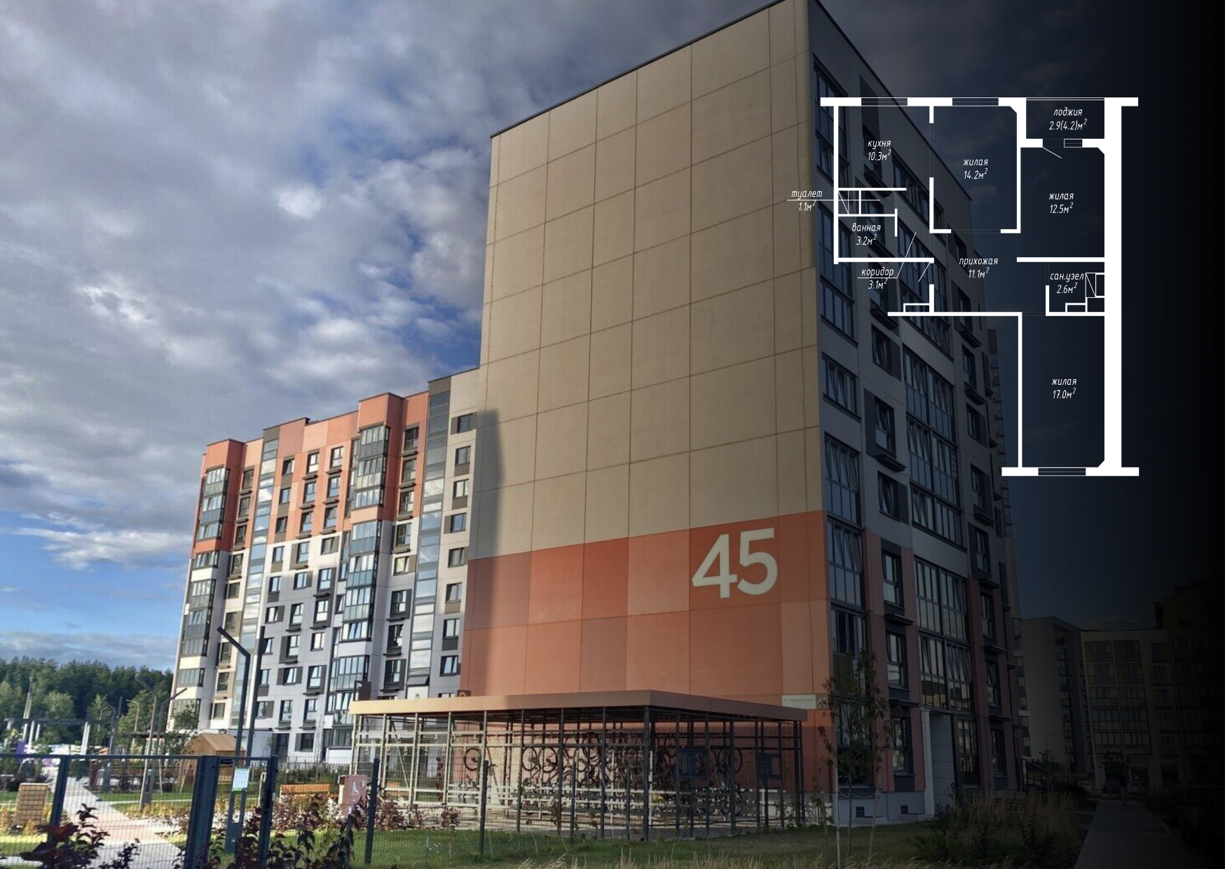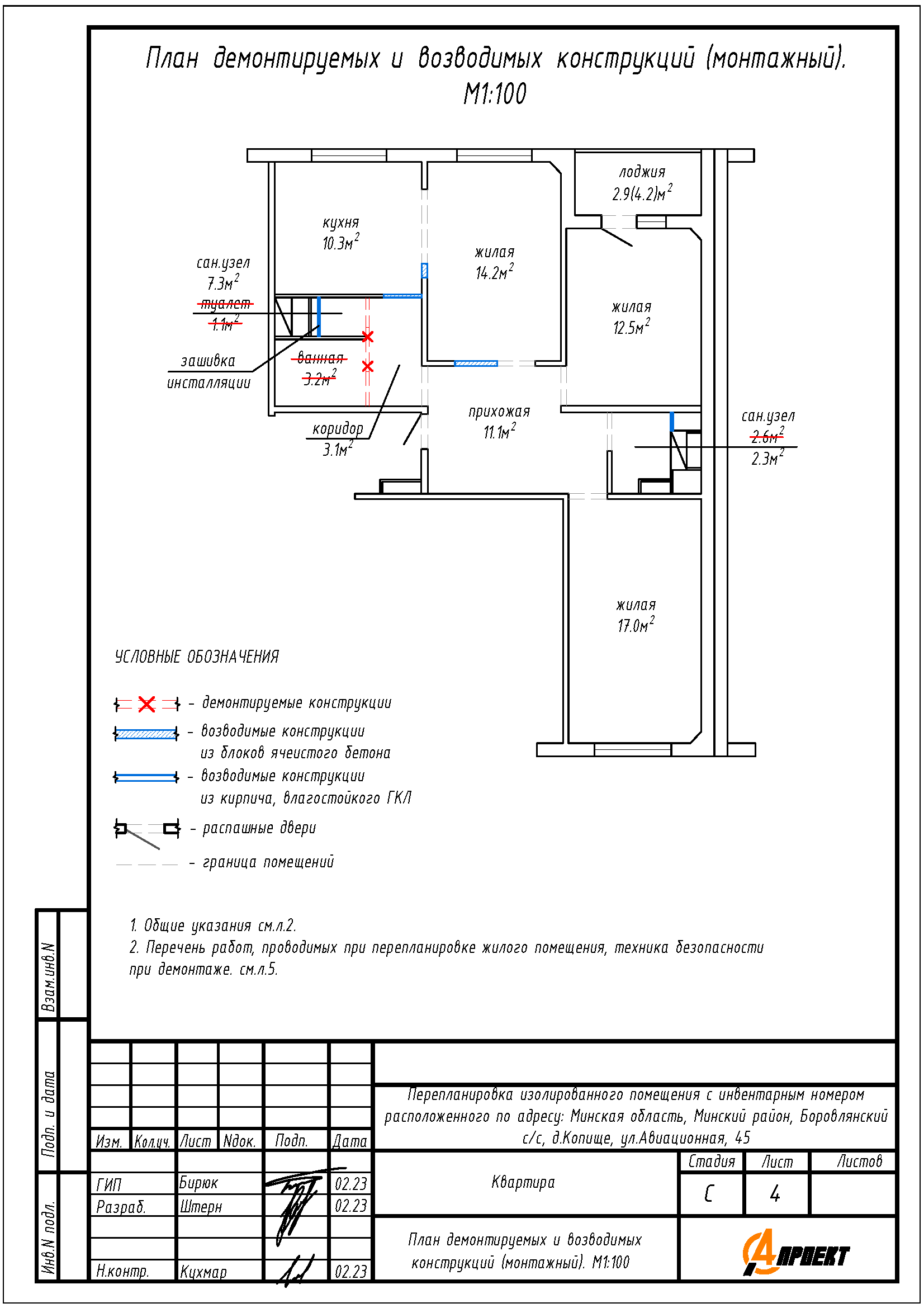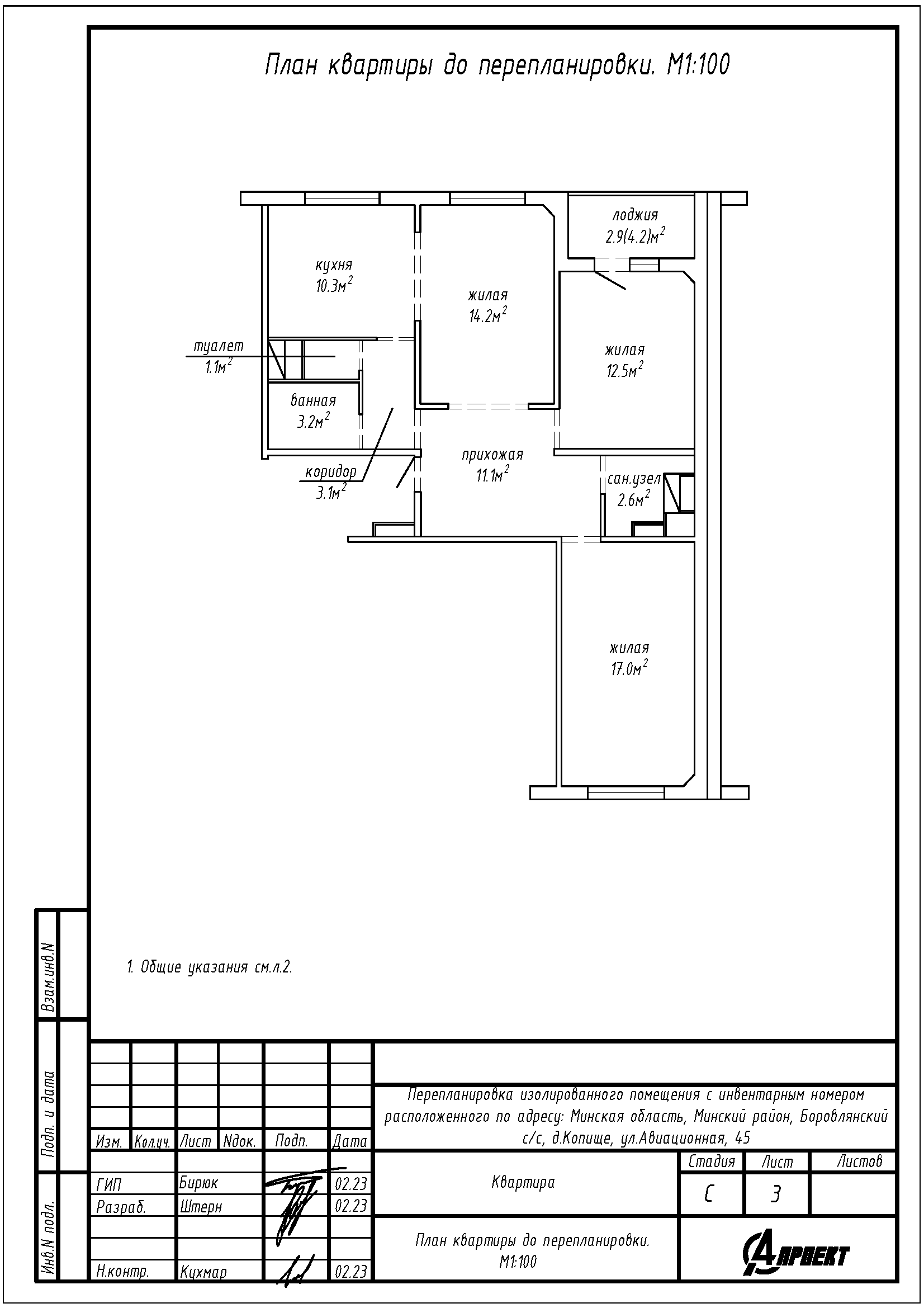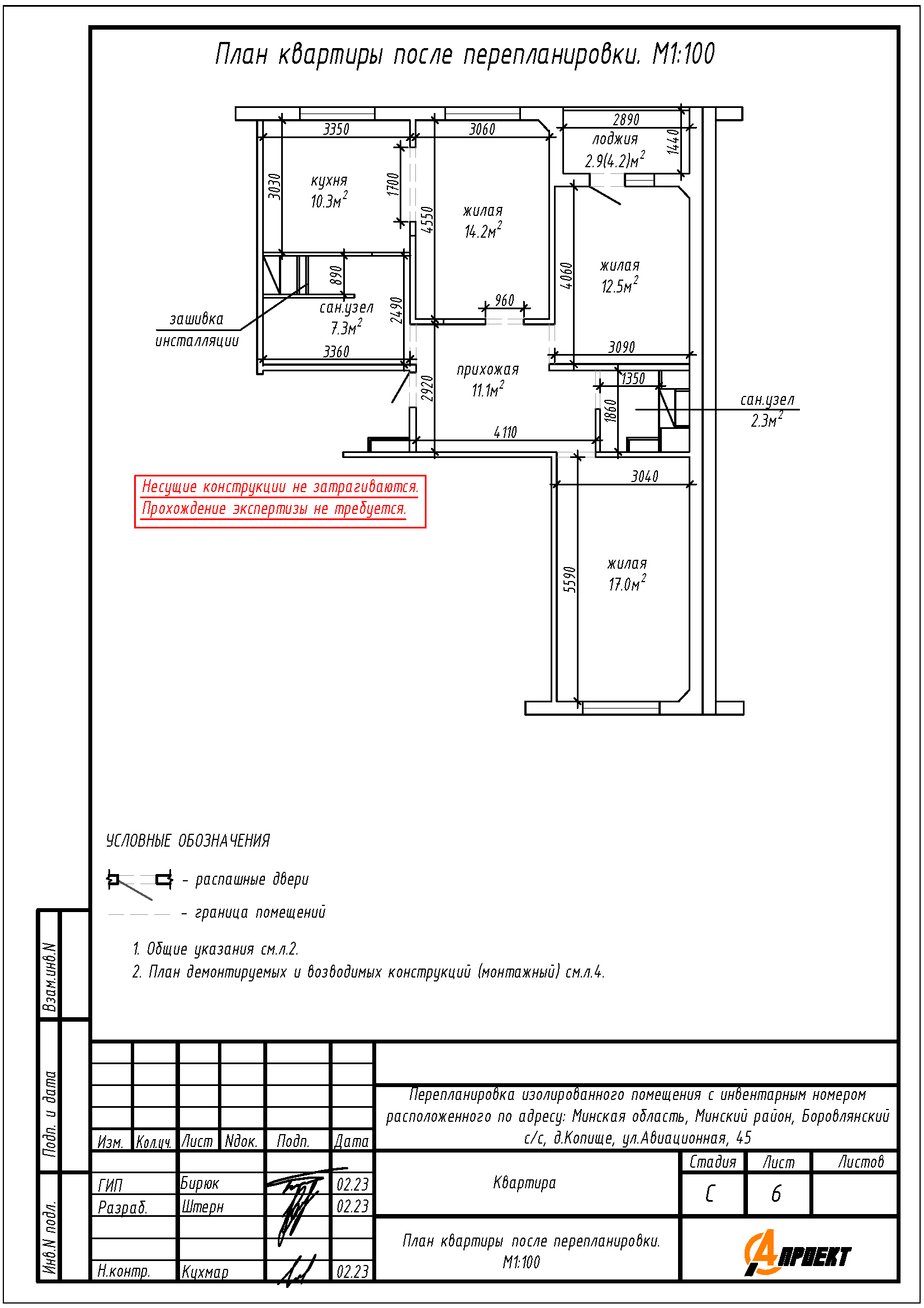 Перепланировка квартиры по ул. Авиационная, 45 в ЖК «Новая Боровая»