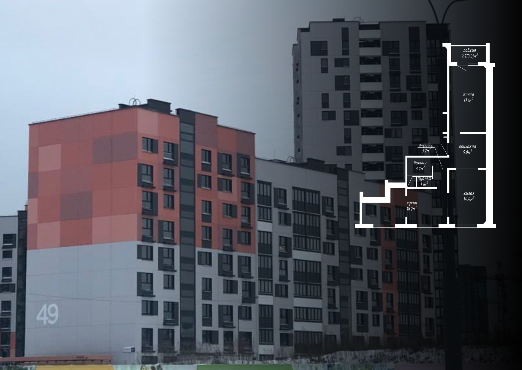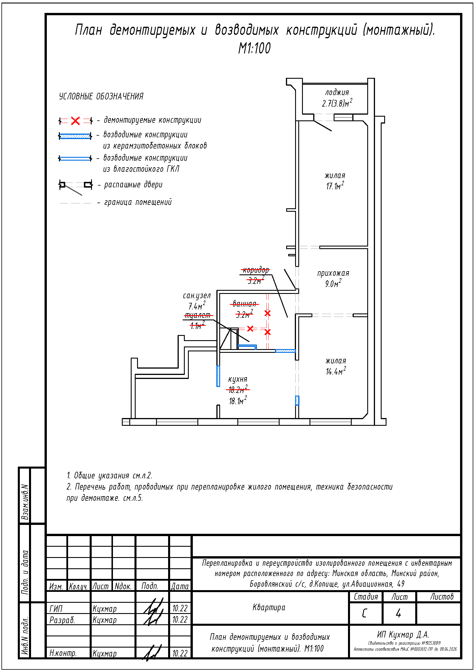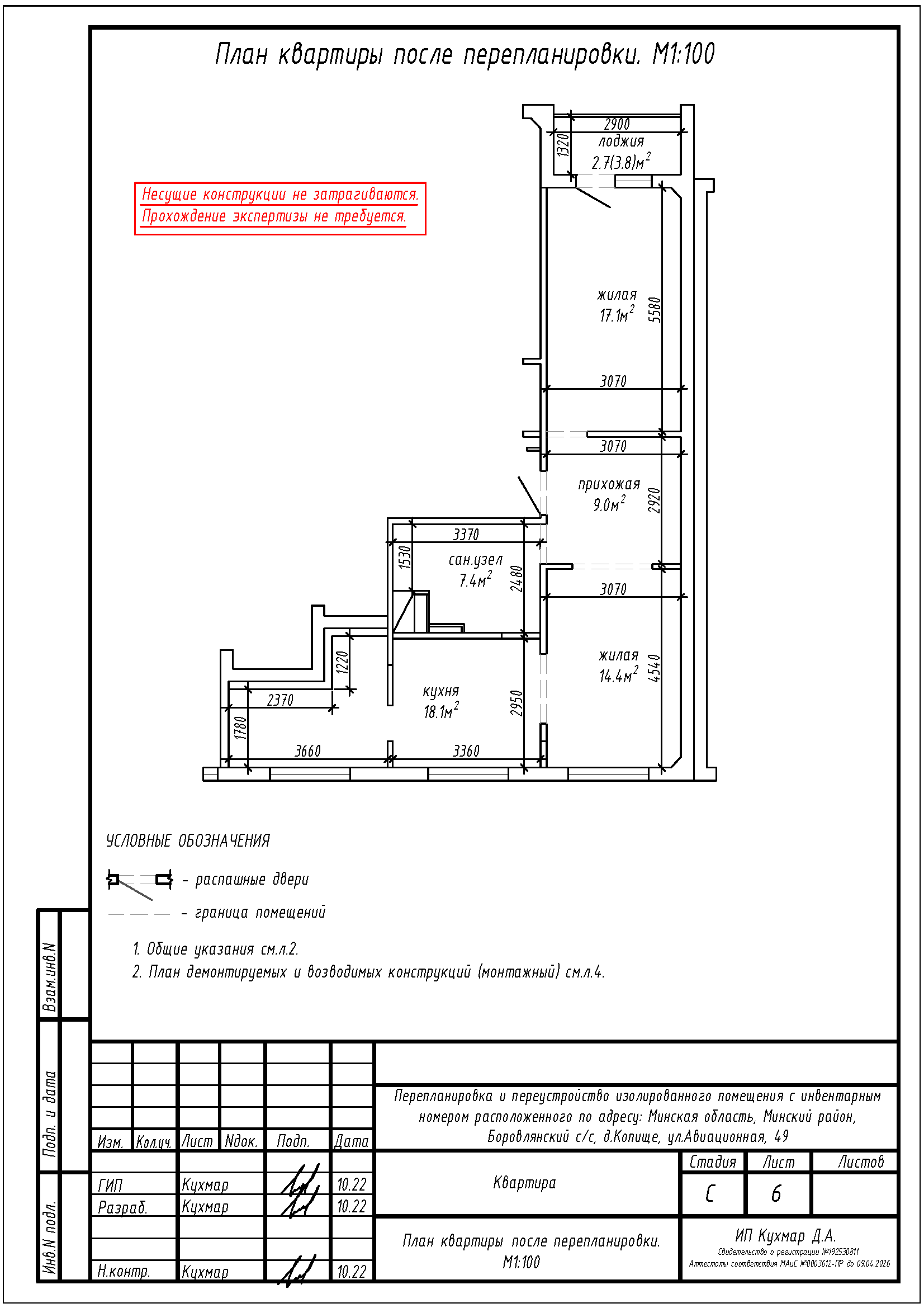Перепланировка квартиры по ул. Авиационная, 49 в ЖК «Новая Боровая»
