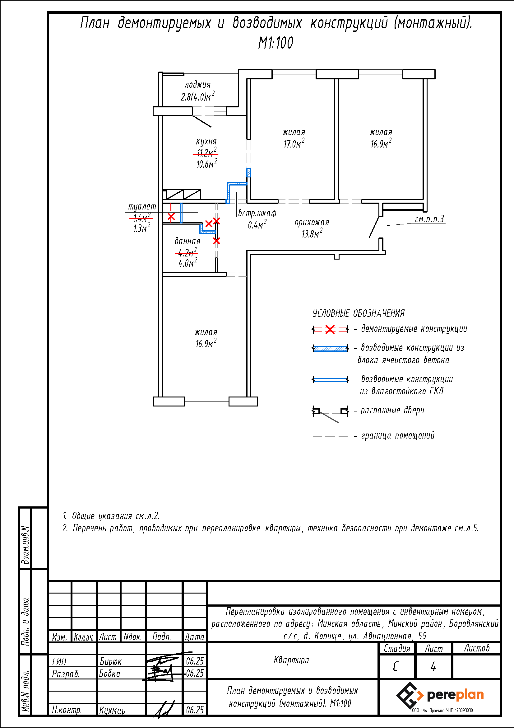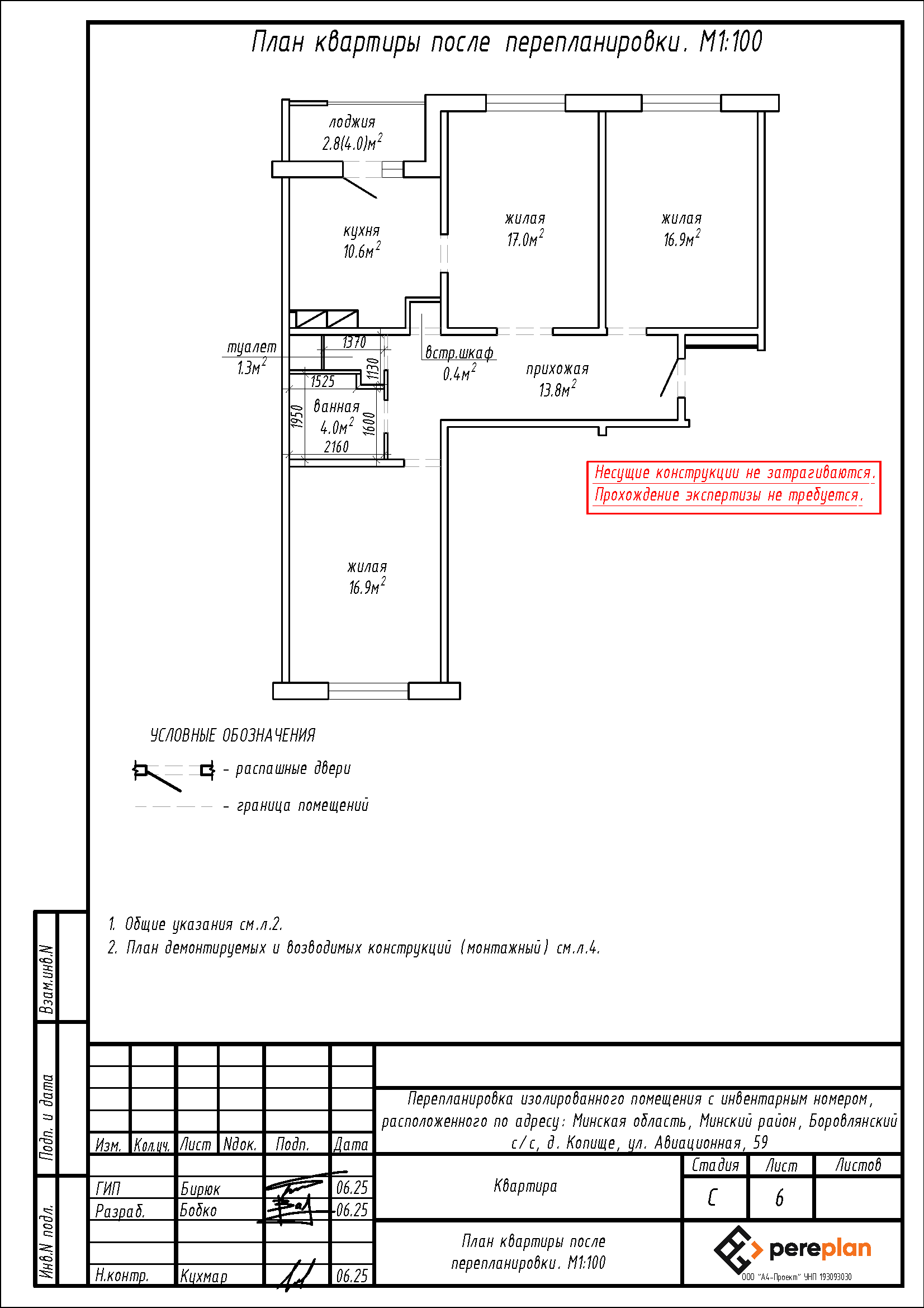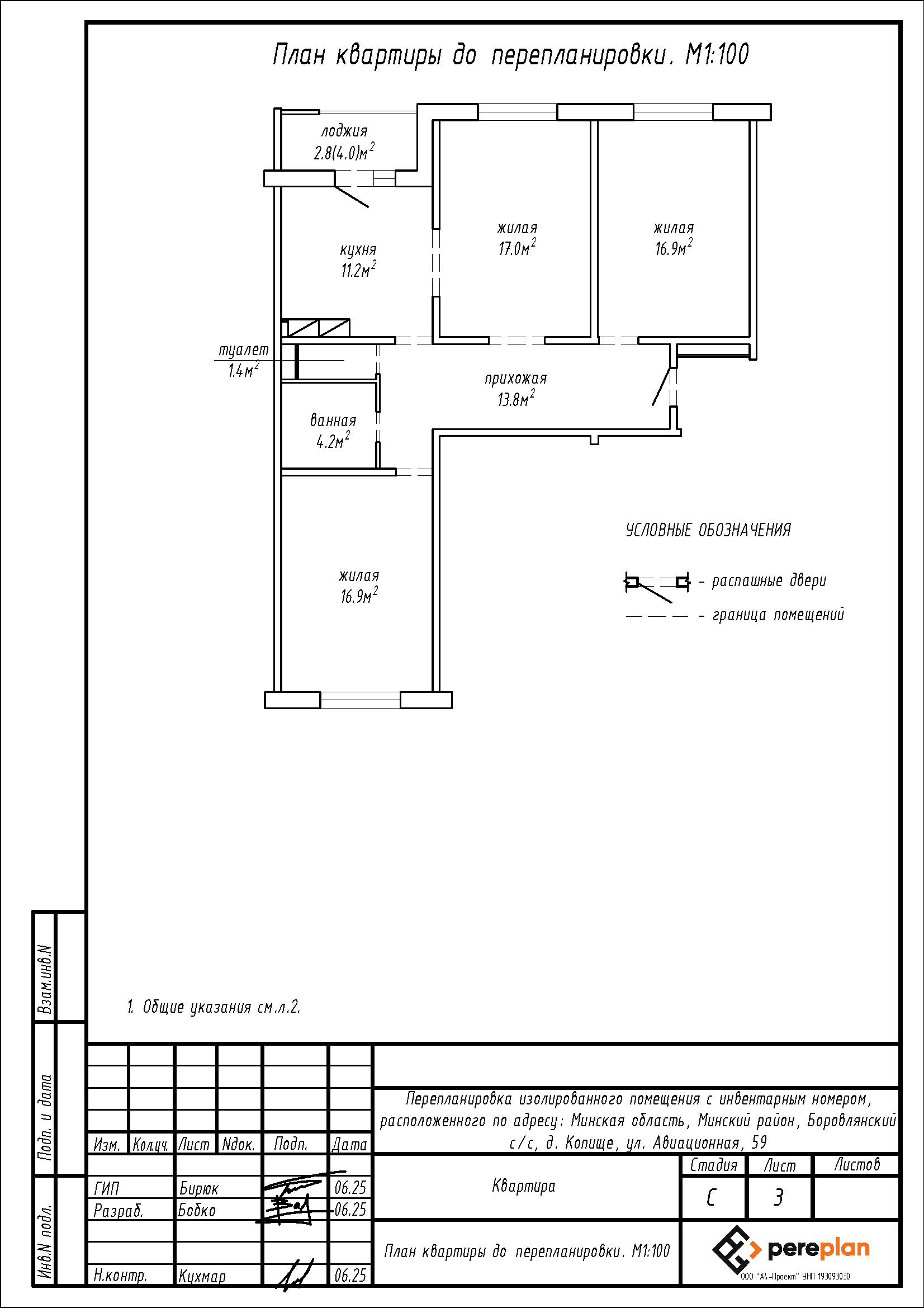 Перепланировка квартиры по ул. Авиационная, 59 в ЖК «Новая Боровая» в д. Копище