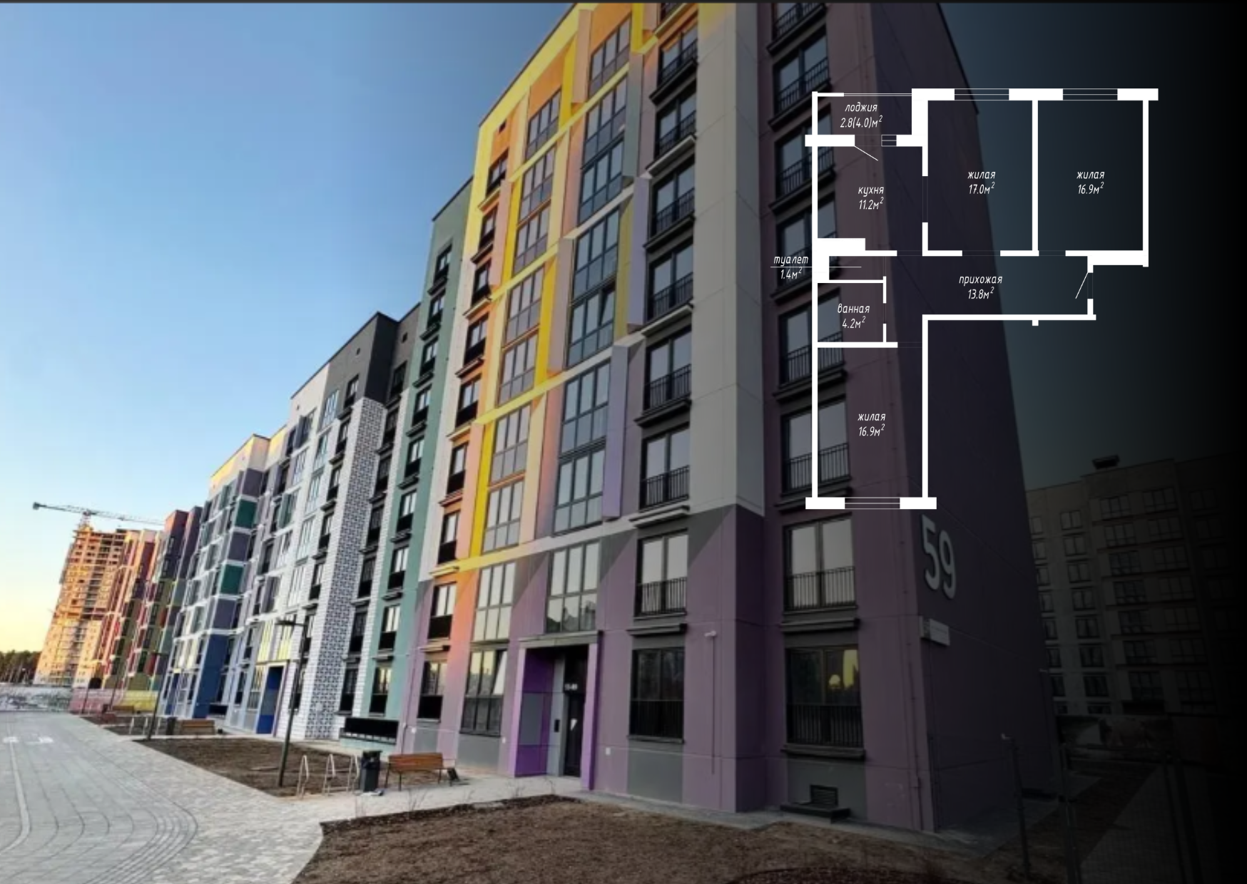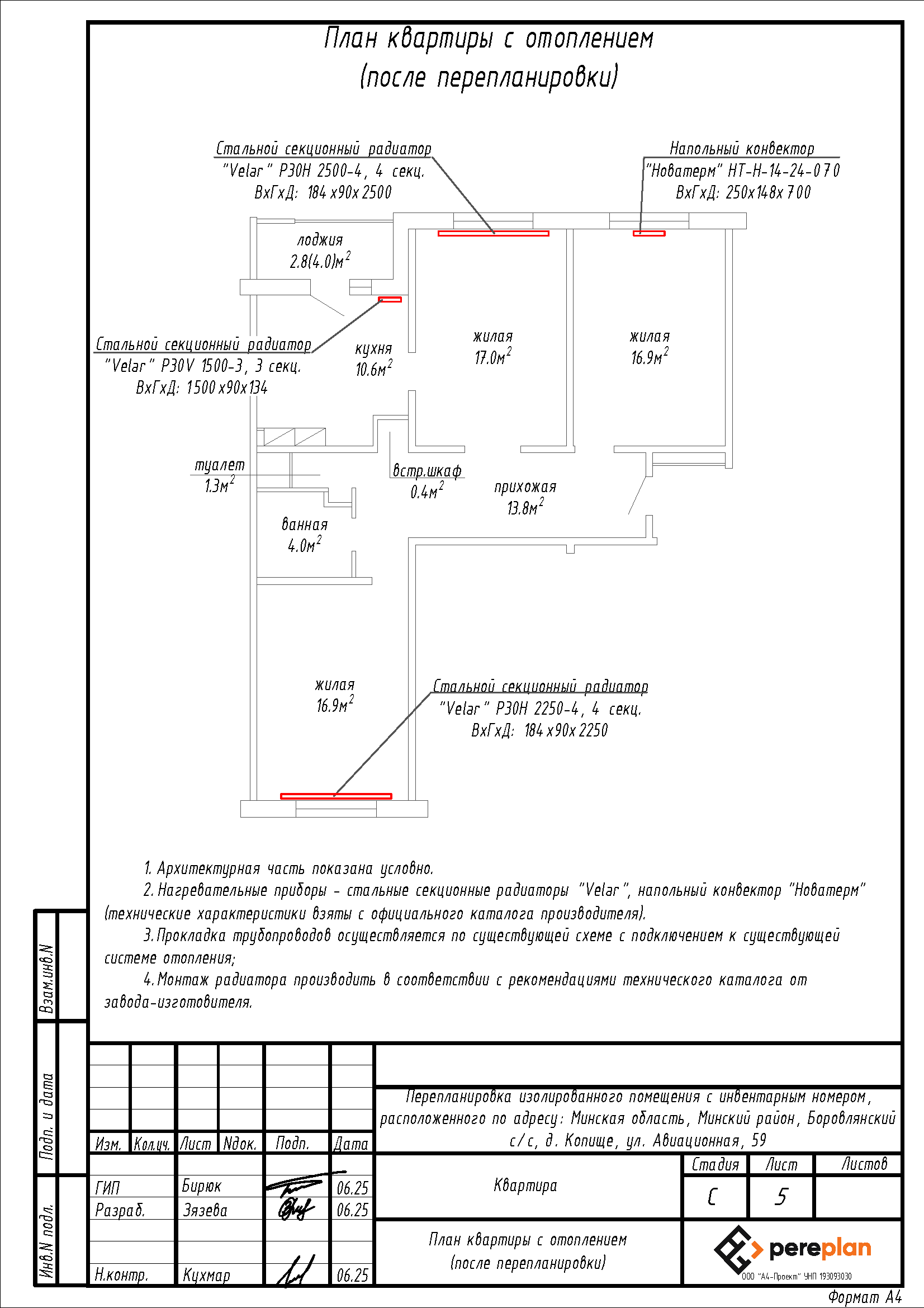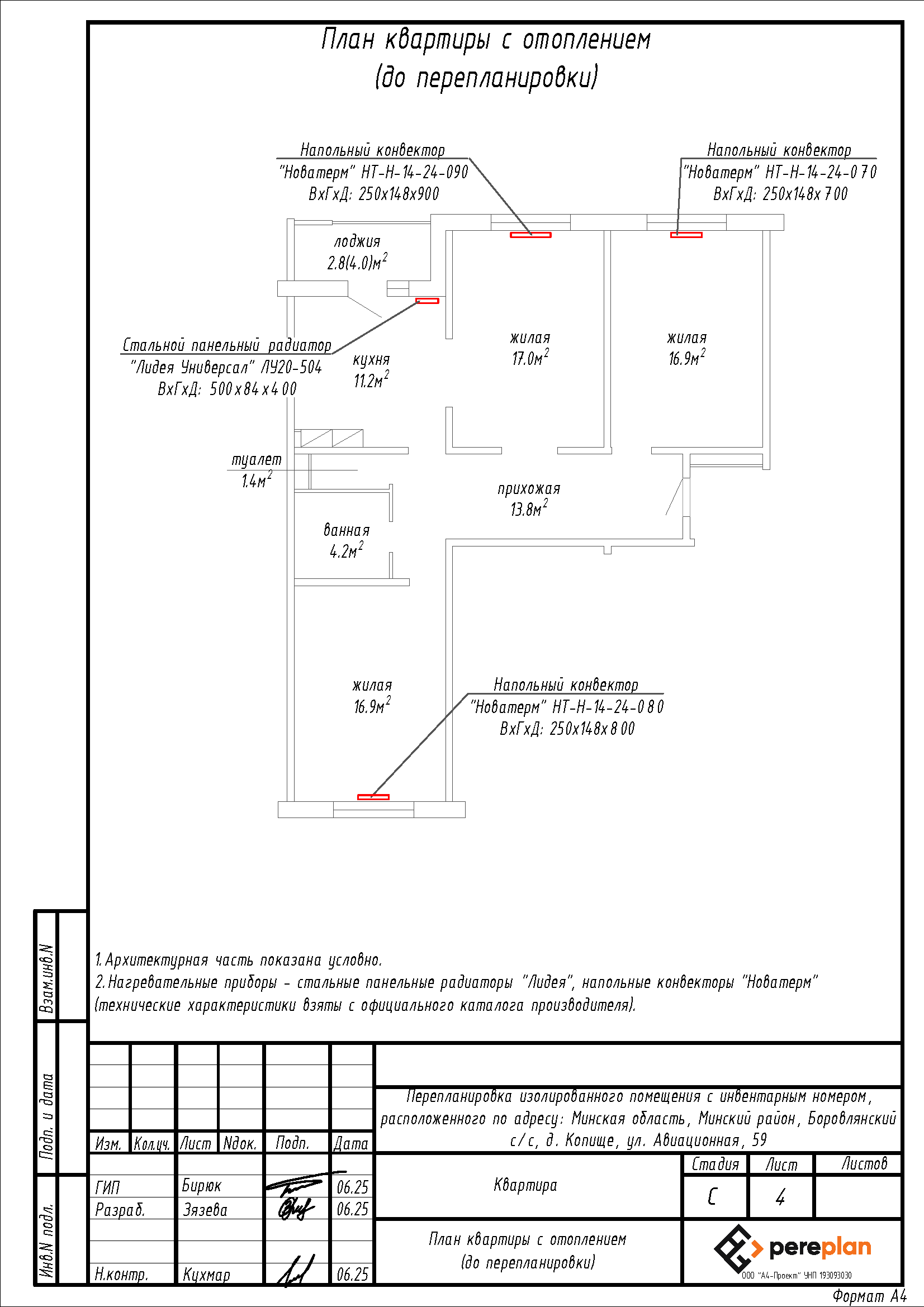 Перепланировка квартиры по ул. Авиационная, 59 в ЖК «Новая Боровая» в д. Копище