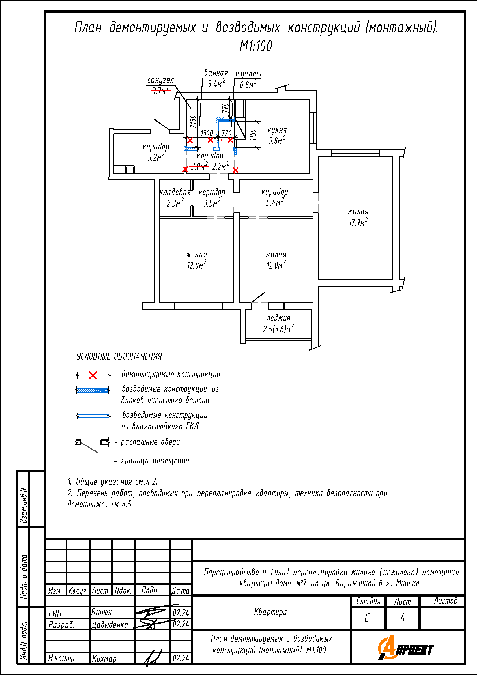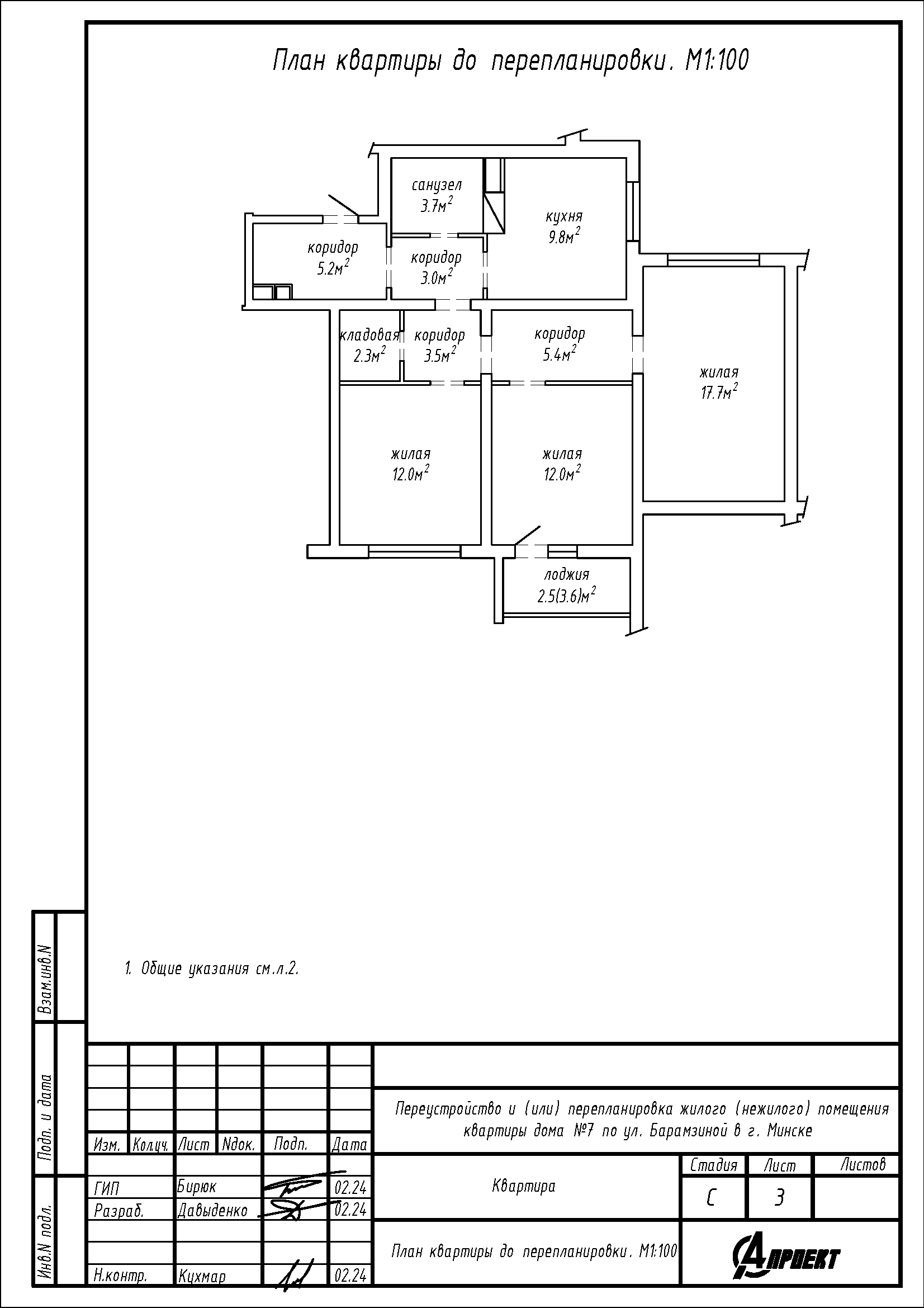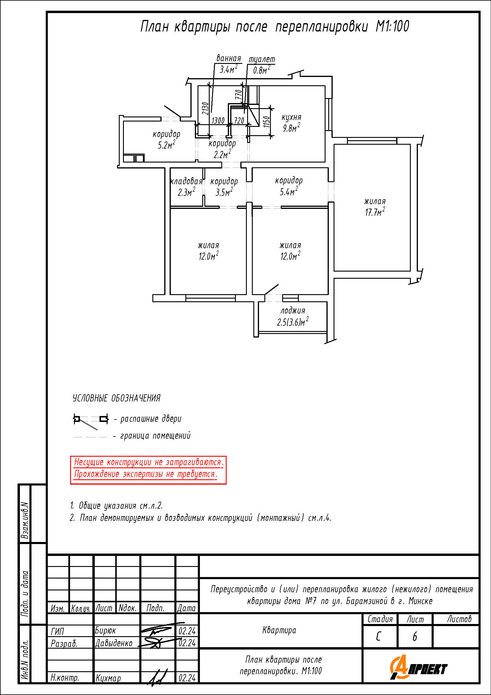 Перепланировка квартиры по улице Барамзиной, 7 в г. Минске